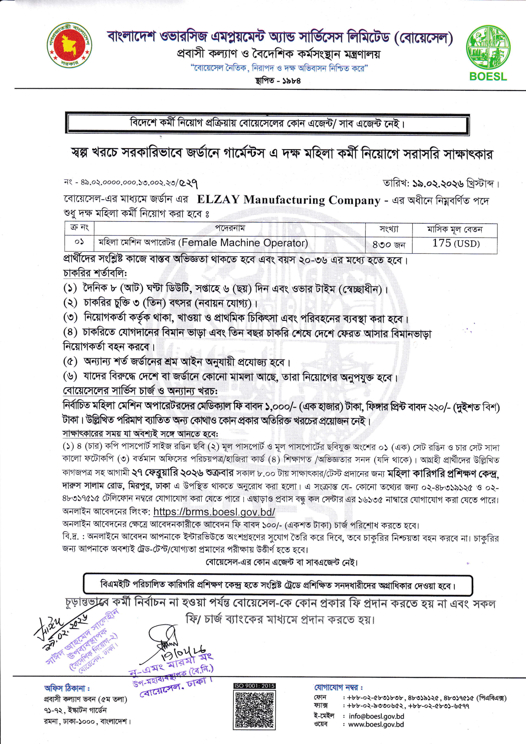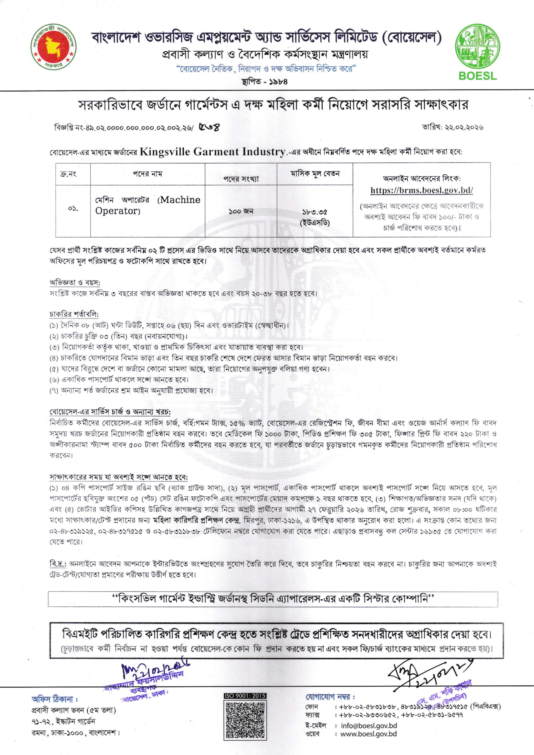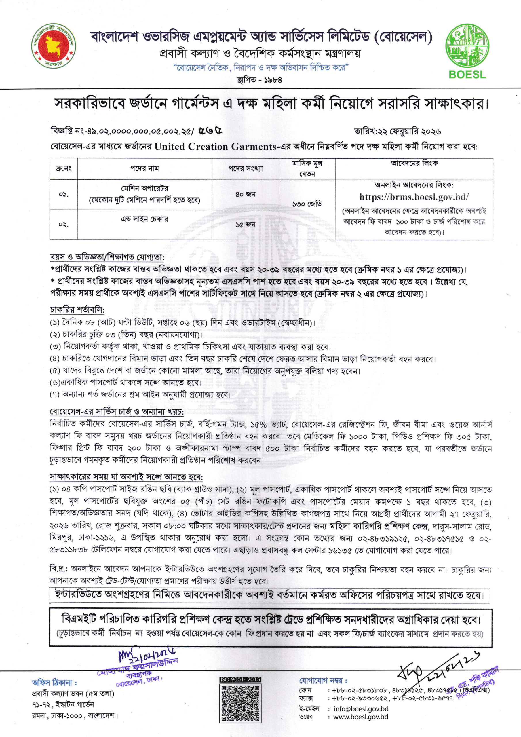 Jordan has become a prime destination for Bangladeshi workers due to its high demand for skilled labor in the textile and apparel industries. The latest BOESL Job Circular offers direct employment opportunities with some of the world’s leading manufacturing companies.