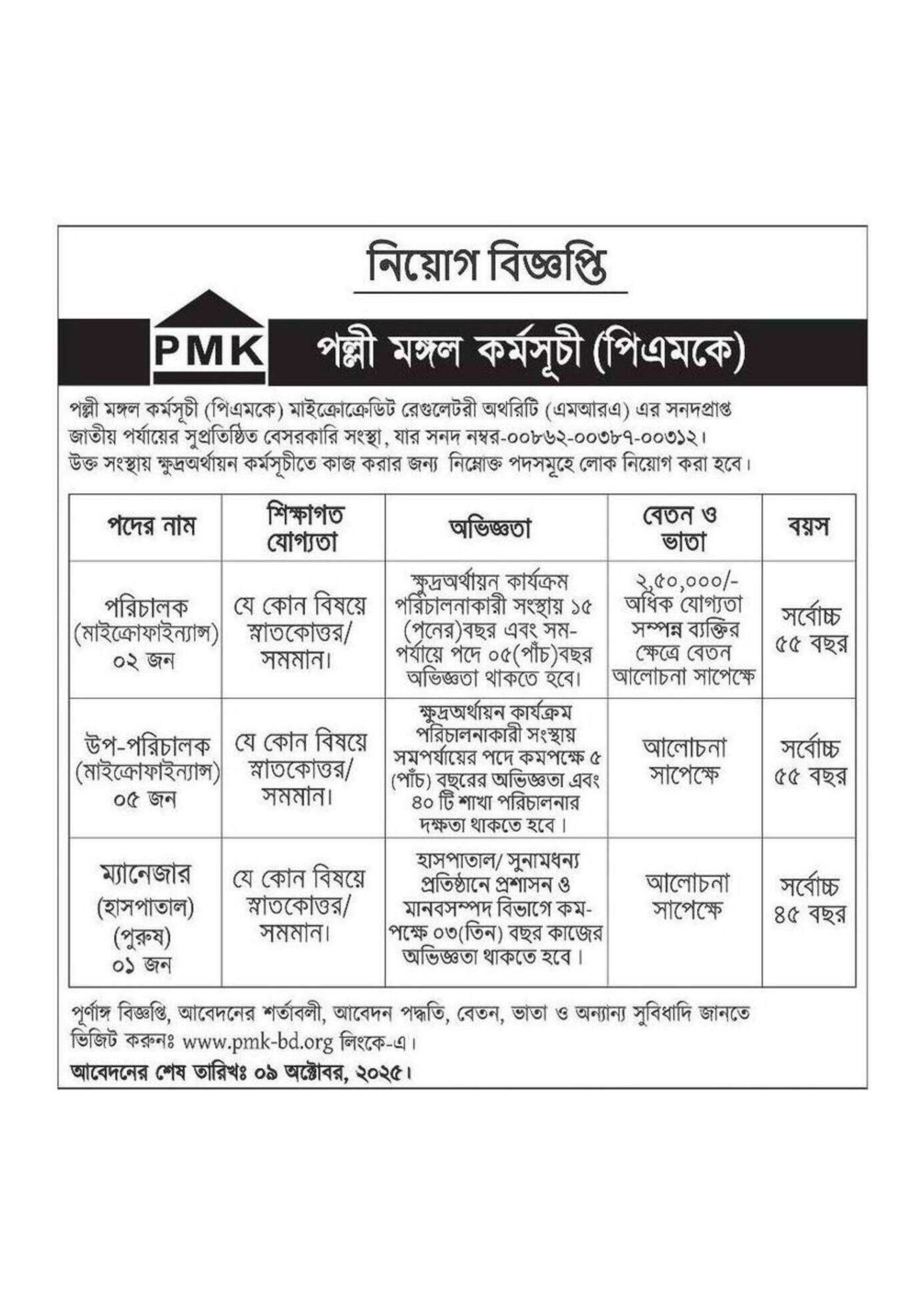 আবেদনের শেষ তারিখ: ০৯ অক্টোবর, ২০২৫।