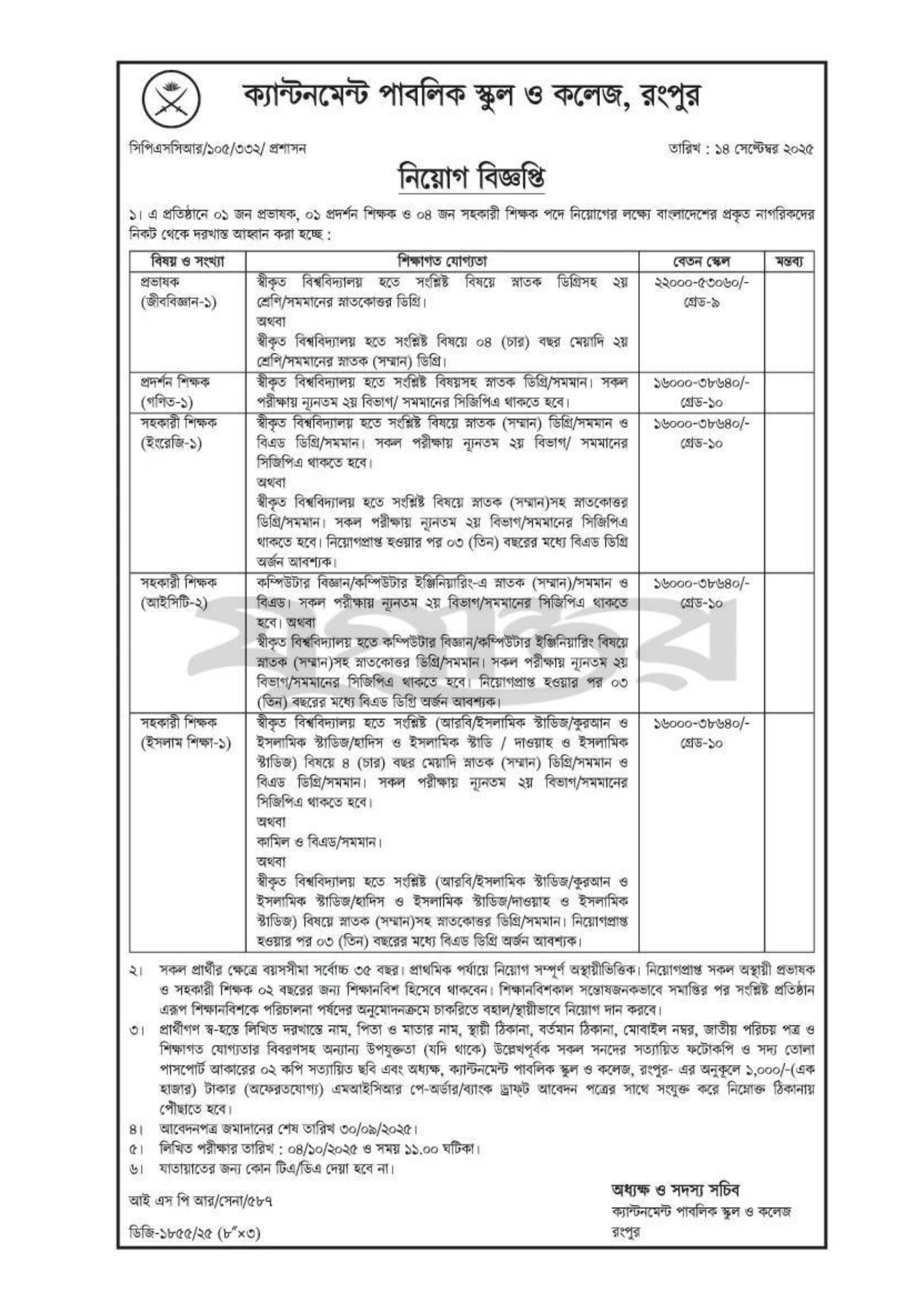 লিখিত পরীক্ষার তারিখ: ০৪ অক্টোবর ২০২৫