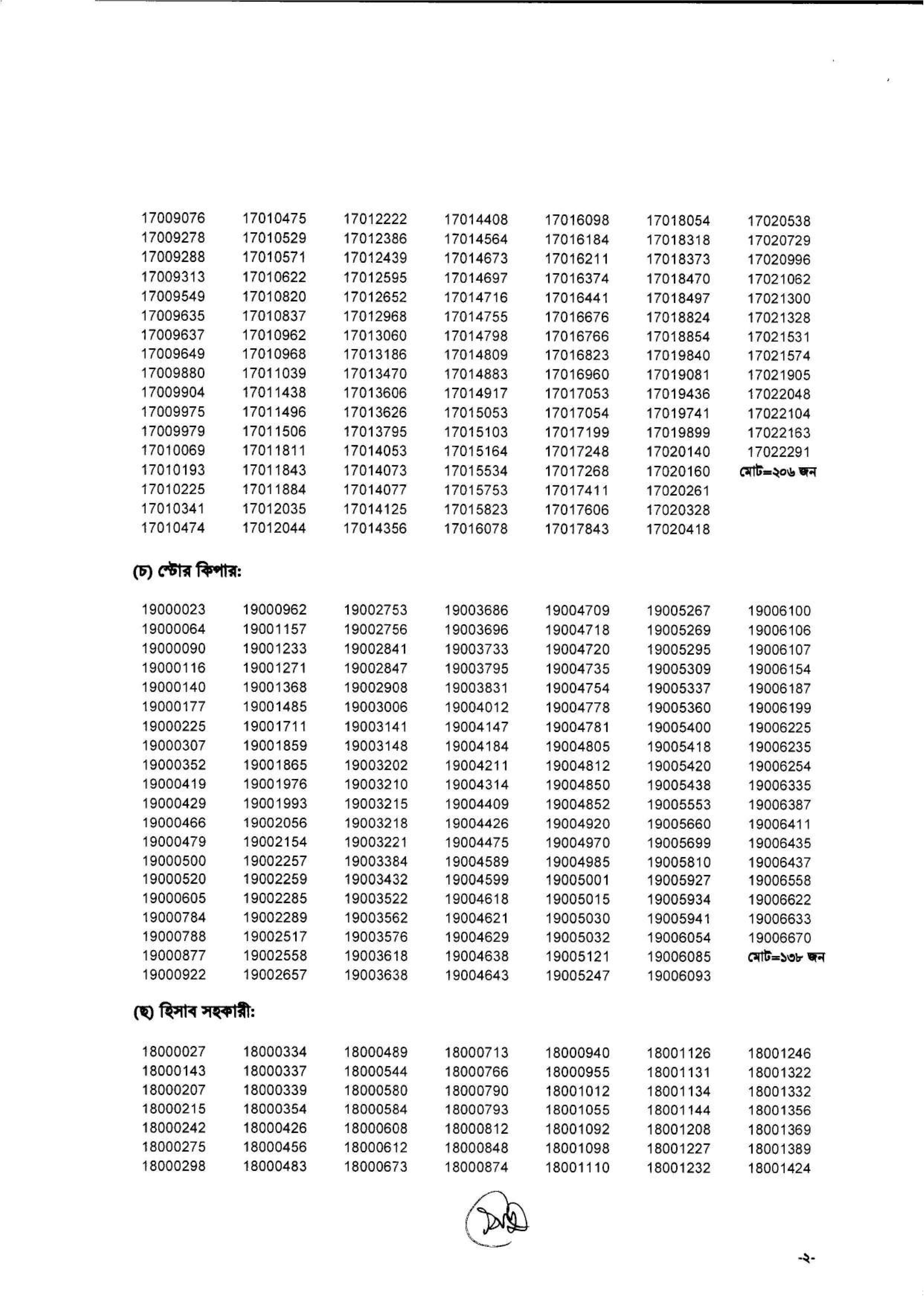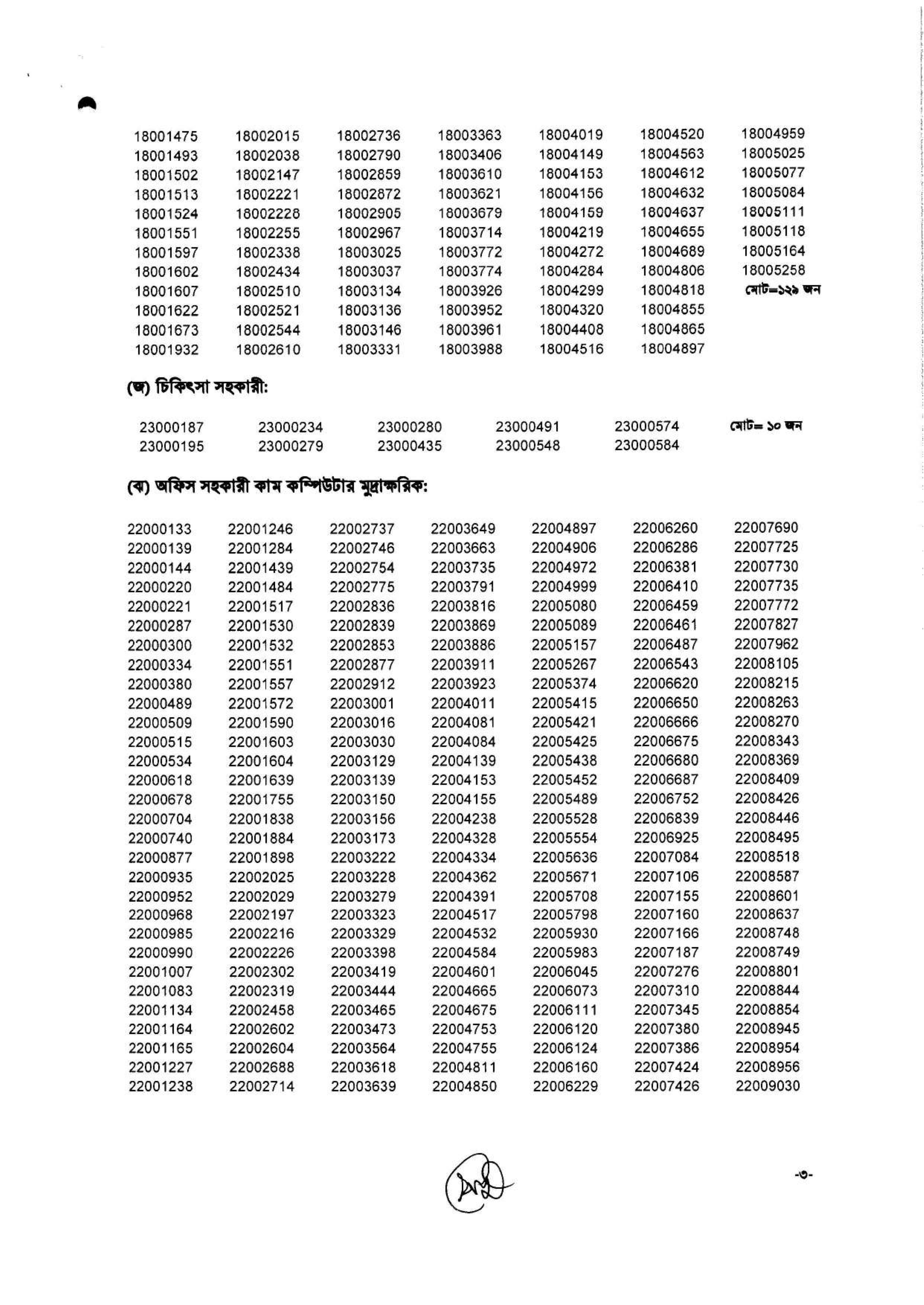 লিখিত পরীক্ষায় উত্তীর্ণ হয়ে ব্যবহারিক/মৌখিক পরীক্ষার জন্য নির্বাচিত পদসমূহ ও পদসংখ্যা নিম্নরূপ: