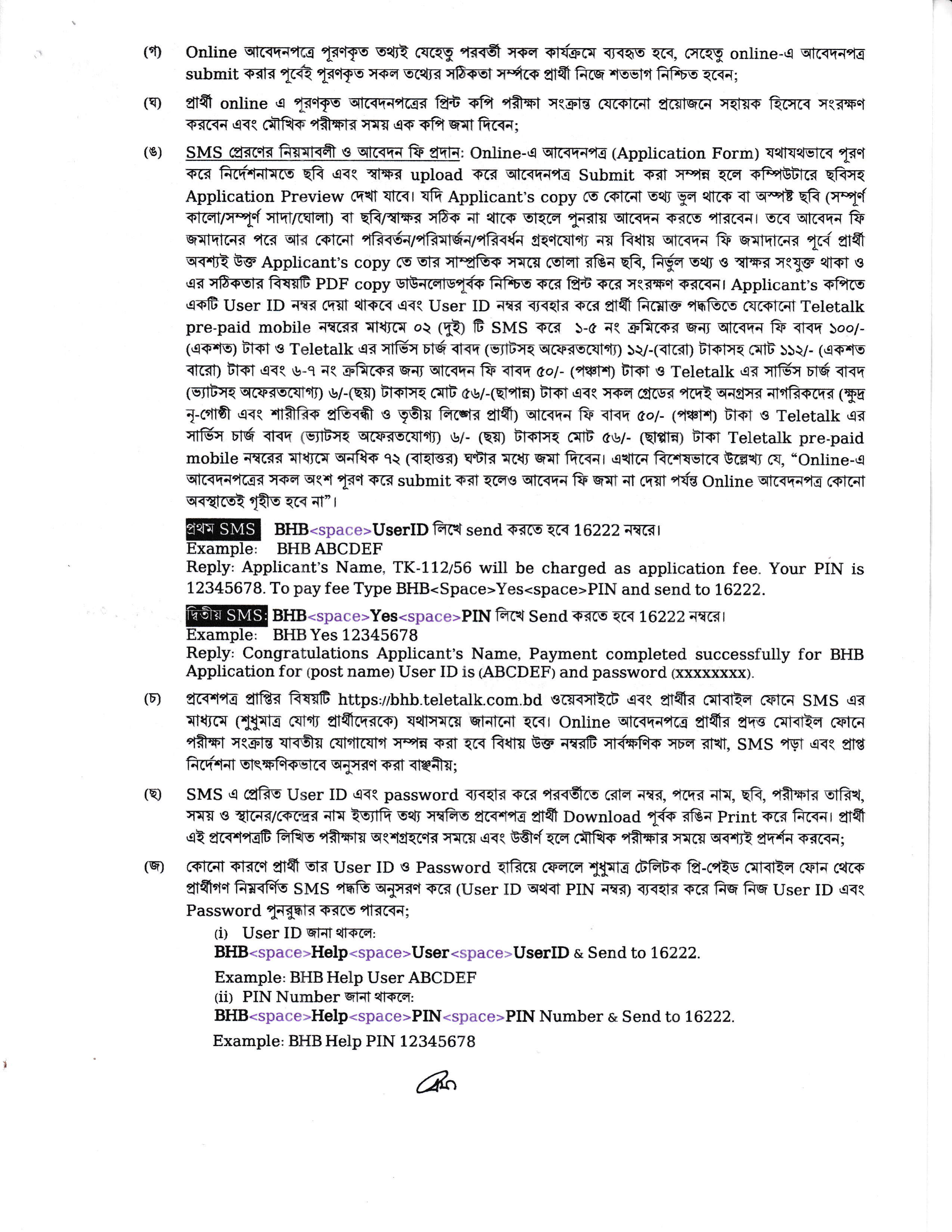 - আবেদন প্রক্রিয়া: আবেদন সম্পূর্ণভাবে অনলাইনে করতে হবে। http://bhb.teletalk.com.bd এই ওয়েবসাইটে প্রবেশ করে আবেদন ফরম পূরণ করতে হবে।