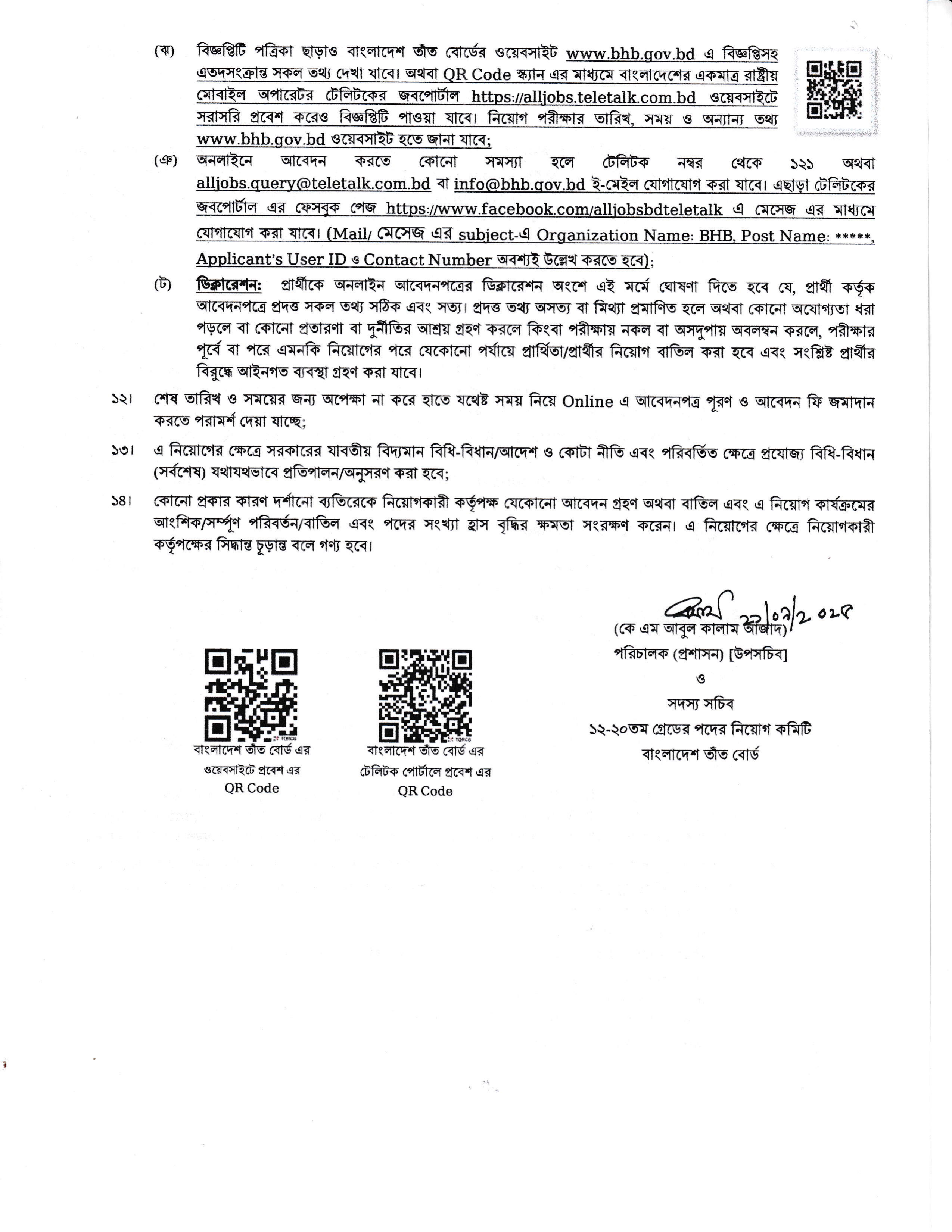 এই নিয়োগ বিজ্ঞপ্তি সম্পর্কে আরও বিস্তারিত জানতে বা কোনো পরিবর্তন সম্পর্কে অবগত থাকতে নিয়মিত বাংলাদেশ তাঁত বোর্ডের অফিসিয়াল ওয়েবসাইট (www.bhb.gov.bd) ভিজিট করার জন্য অনুরোধ করা হলো।