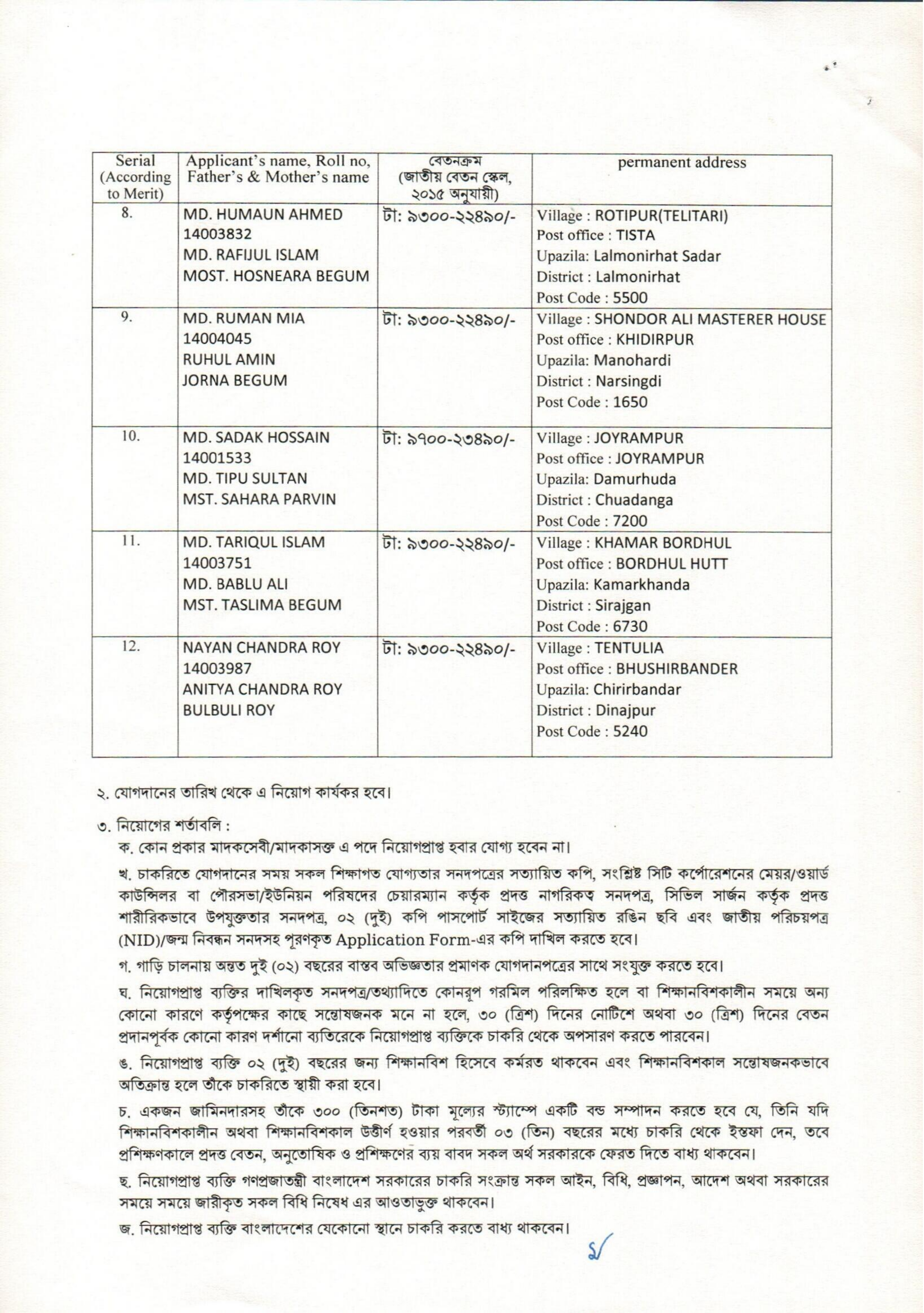 শিক্ষানবিশকাল: নিয়োগপ্রাপ্ত ব্যক্তিগণ ০২ (দুই) বছরের জন্য শিক্ষানবিশ হিসেবে কর্মরত থাকবেন এবং শিক্ষানবিশকাল সন্তোষজনকভাবে অতিক্রান্ত হলে চাকরিতে স্থায়ী করা হবে।