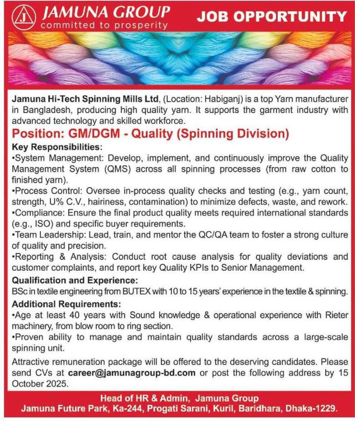 জিএম/ডিজিএম - কোয়ালিটি (স্পিনিং ডিভিশন)