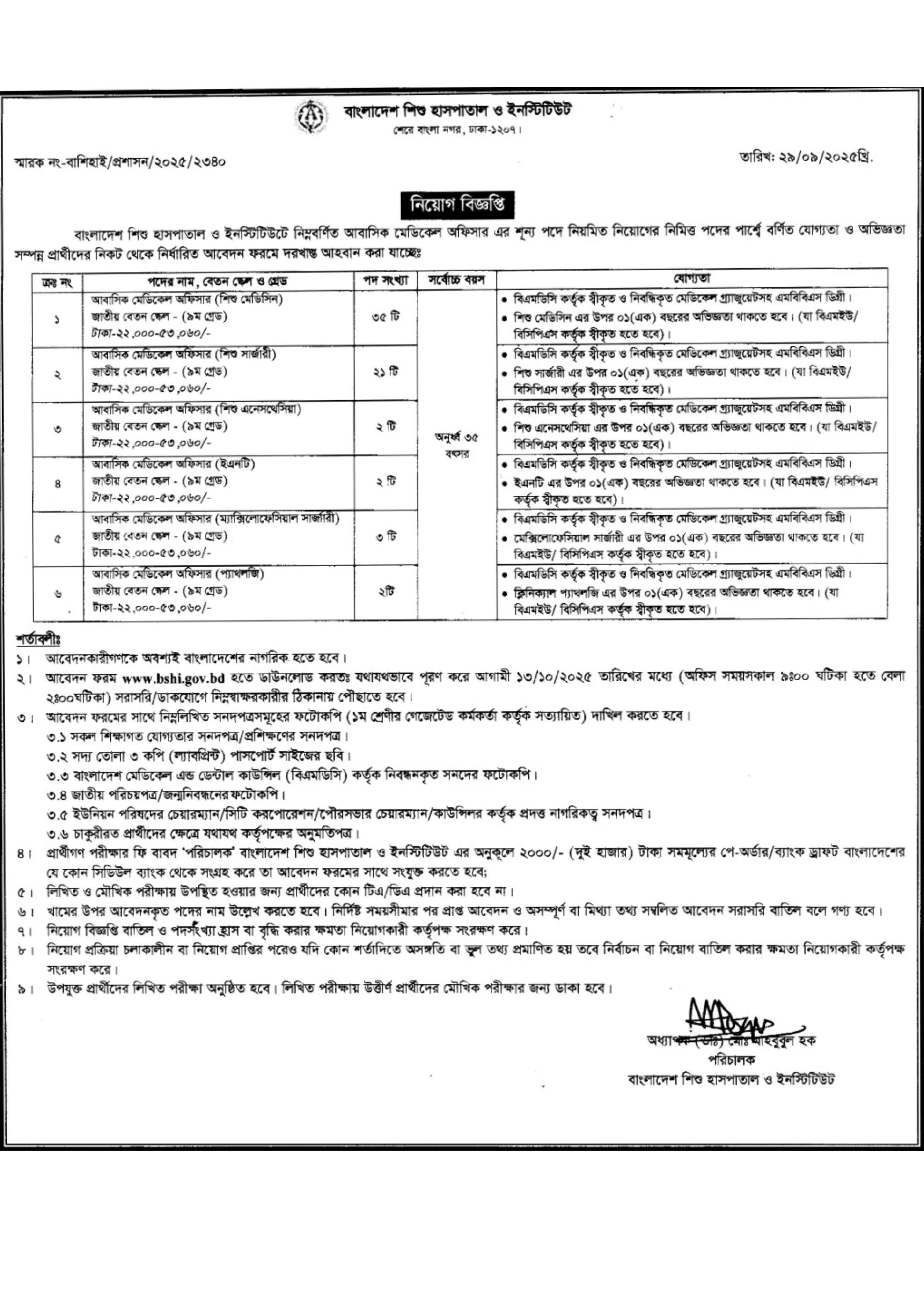 বাংলাদেশ শিশু হাসপাতাল ও ইনস্টিটিউটে আবাসিক মেডিকেল অফিসার পদে নিয়োগের জন্য একটি বিজ্ঞপ্তি প্রকাশিত হয়েছে। এই নিয়োগের মাধ্যমে বিভিন্ন শূন্য পদে যোগ্য প্রার্থীদের বাছাই করা হবে।