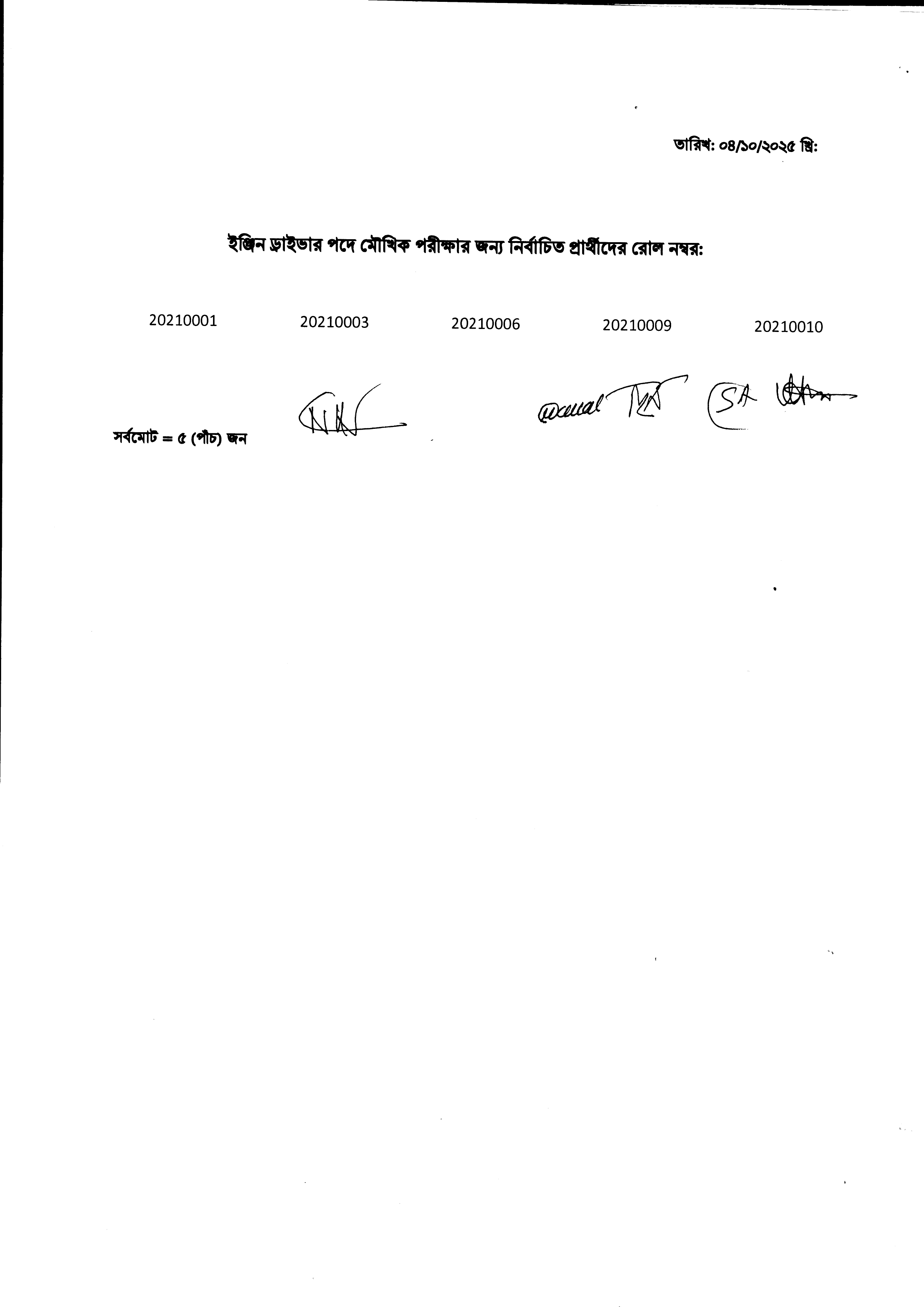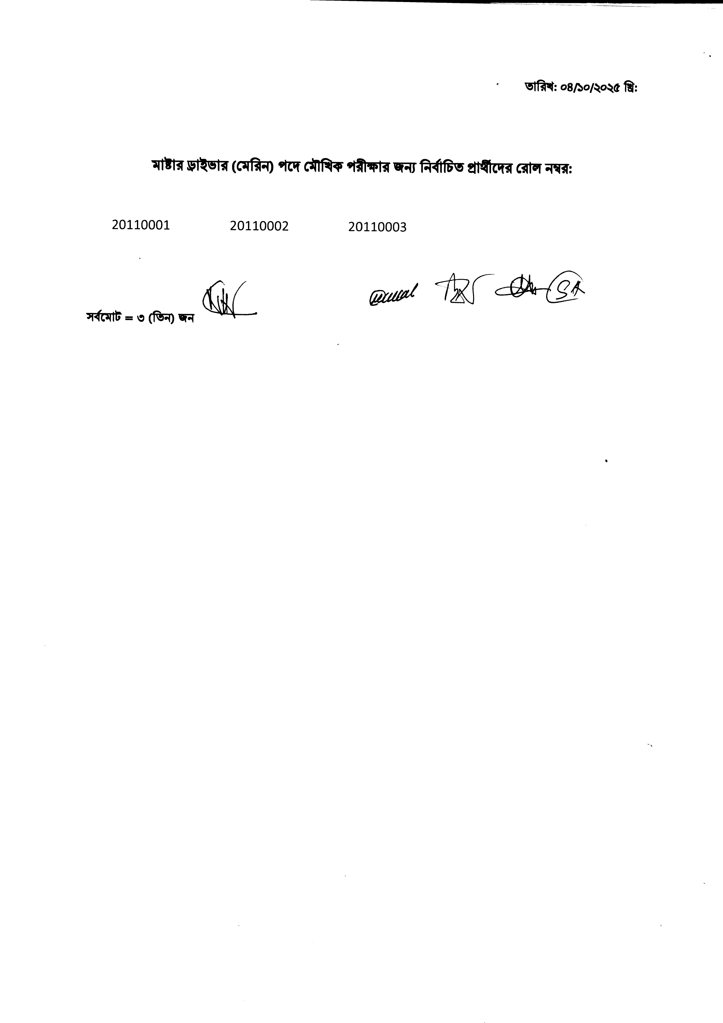 মাষ্টার ড্রাইভার (মেরিন) পদে নির্বাচিত প্রার্থীদের তালিকা বিজ্ঞপ্তিতে দেখুন।