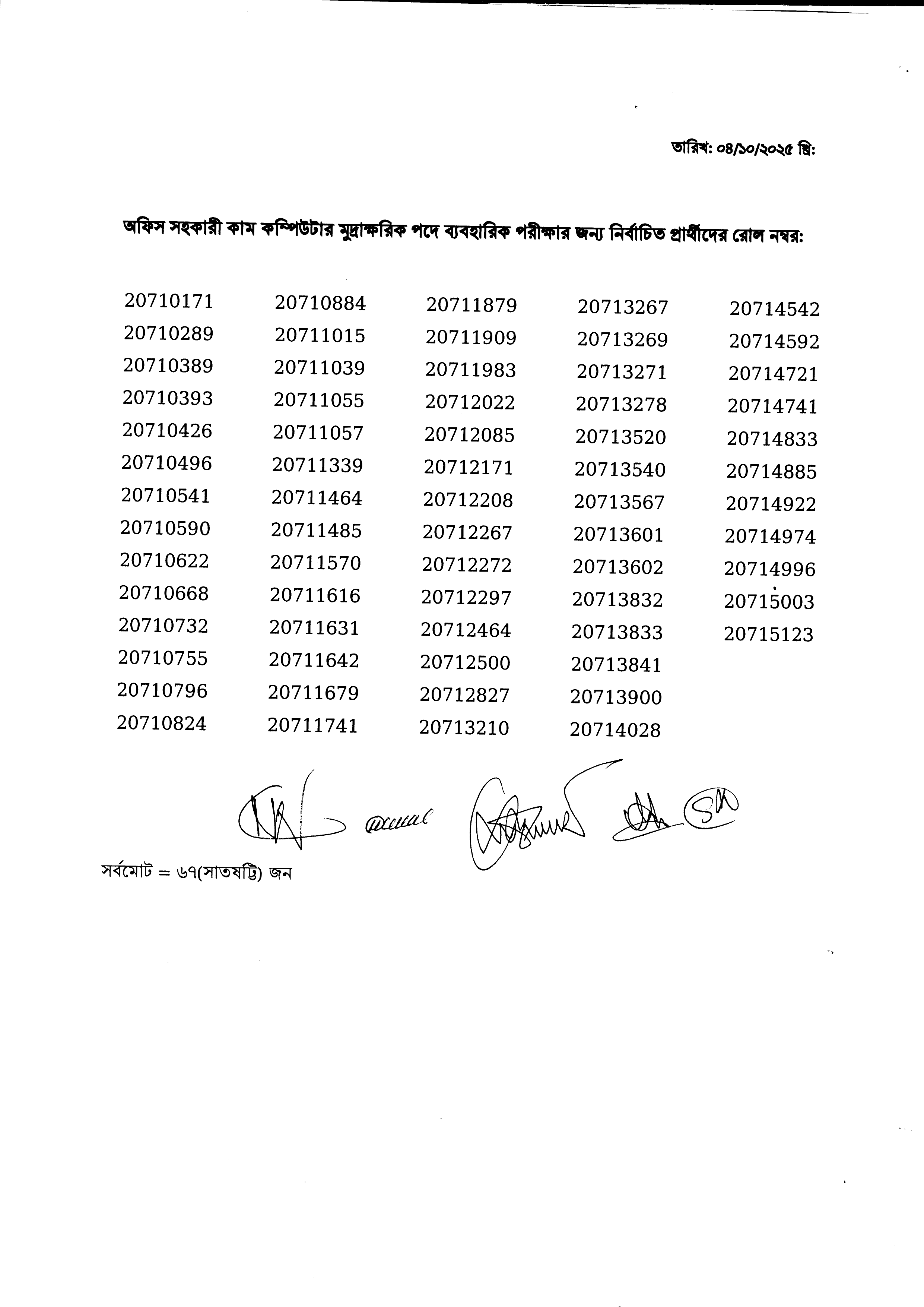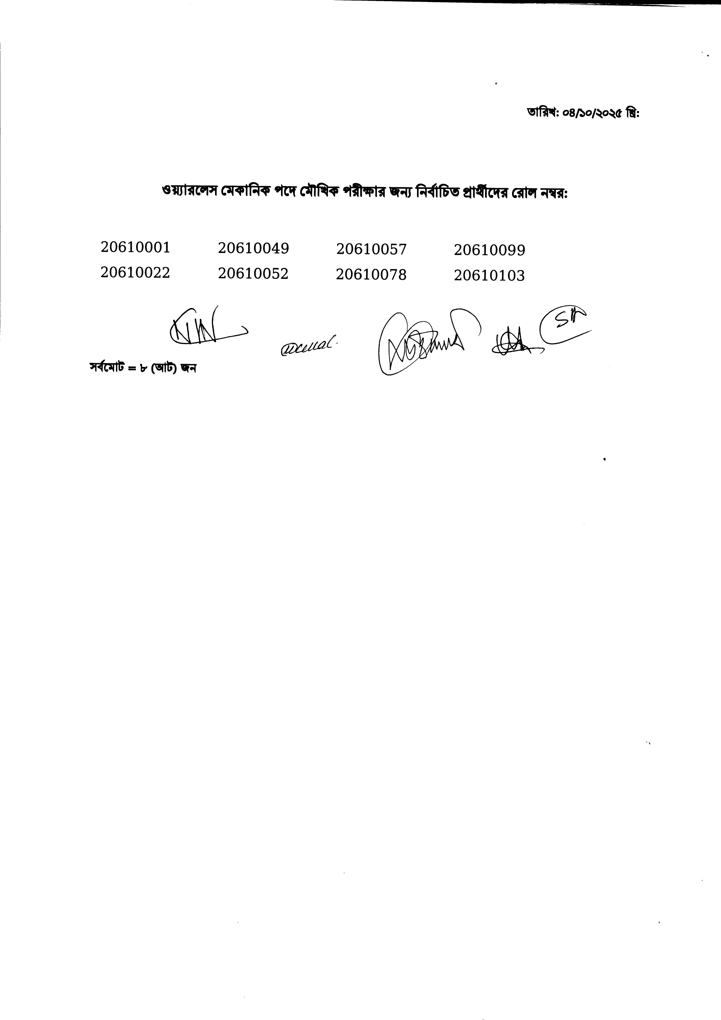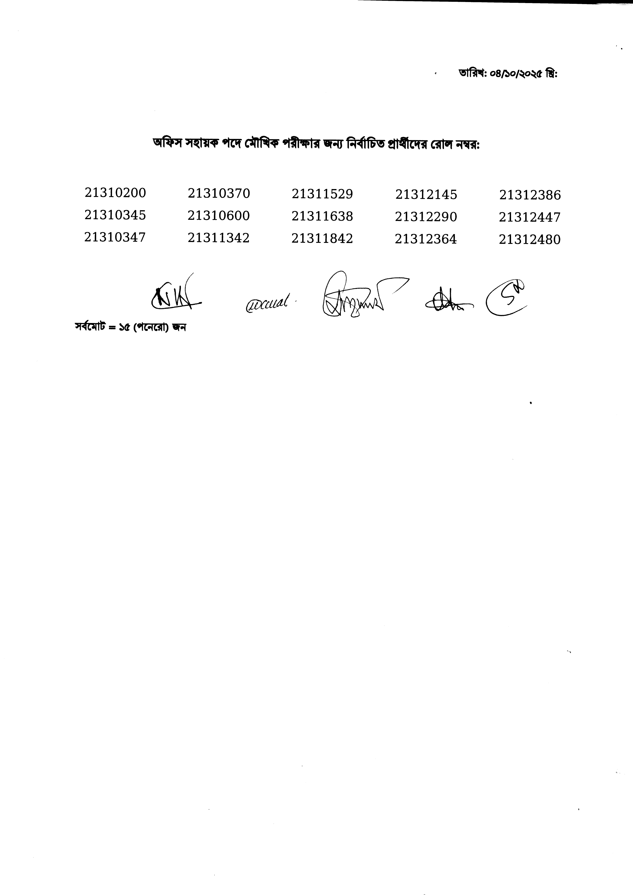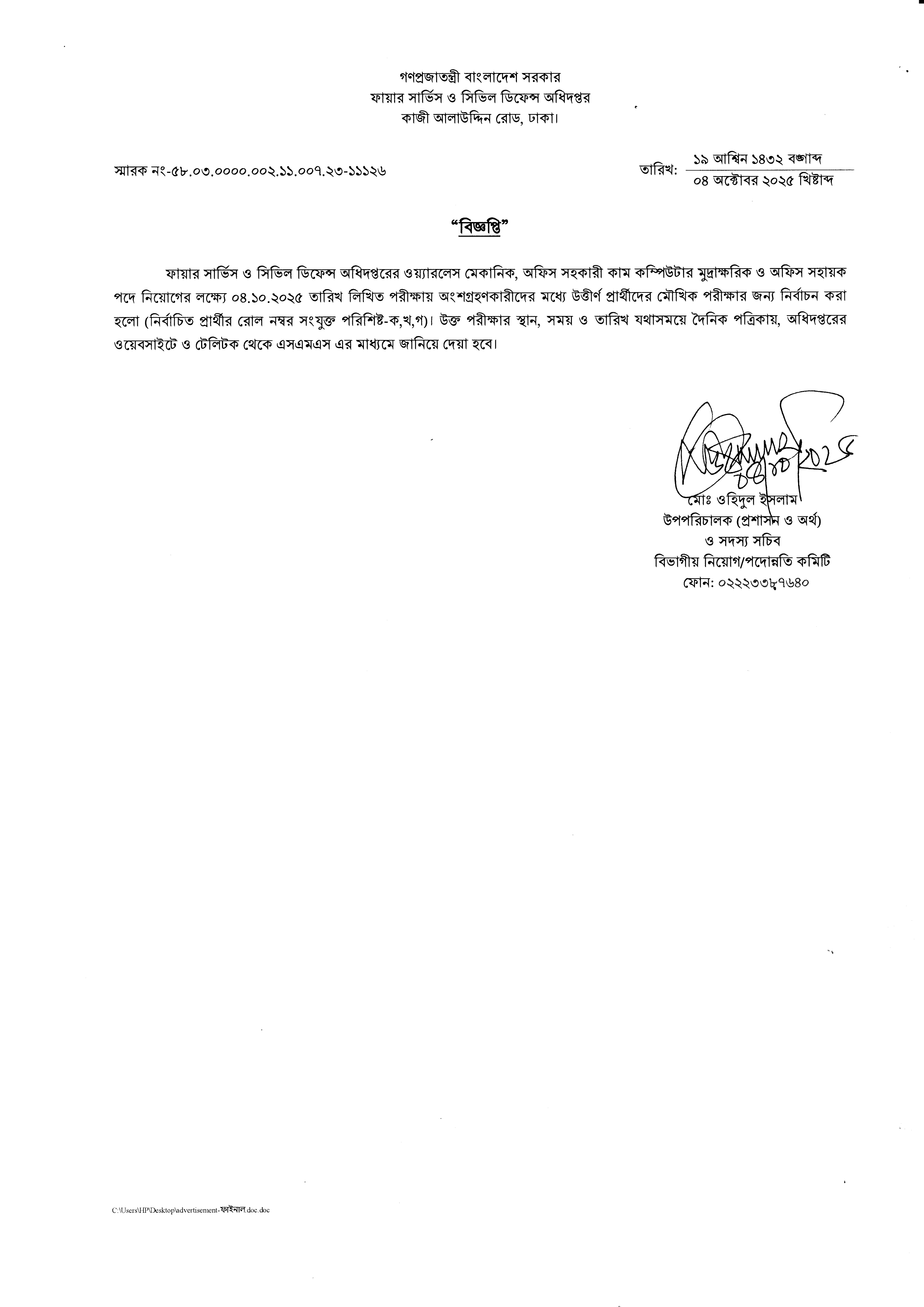 ফায়ার সার্ভিস ও সিভিল ডিফেন্স অধিদপ্তরের ওয়্যারলেস মেকানিক, অফিস সহকারী কাম কম্পিউটার মুদ্রাক্ষরিক ও অফিস সহায়ক পদের লিখিত পরীক্ষায় উত্তীর্ণ প্রার্থীদের মৌখিক ও ব্যবহারিক পরীক্ষার জন্য নির্বাচন করা হয়েছে।