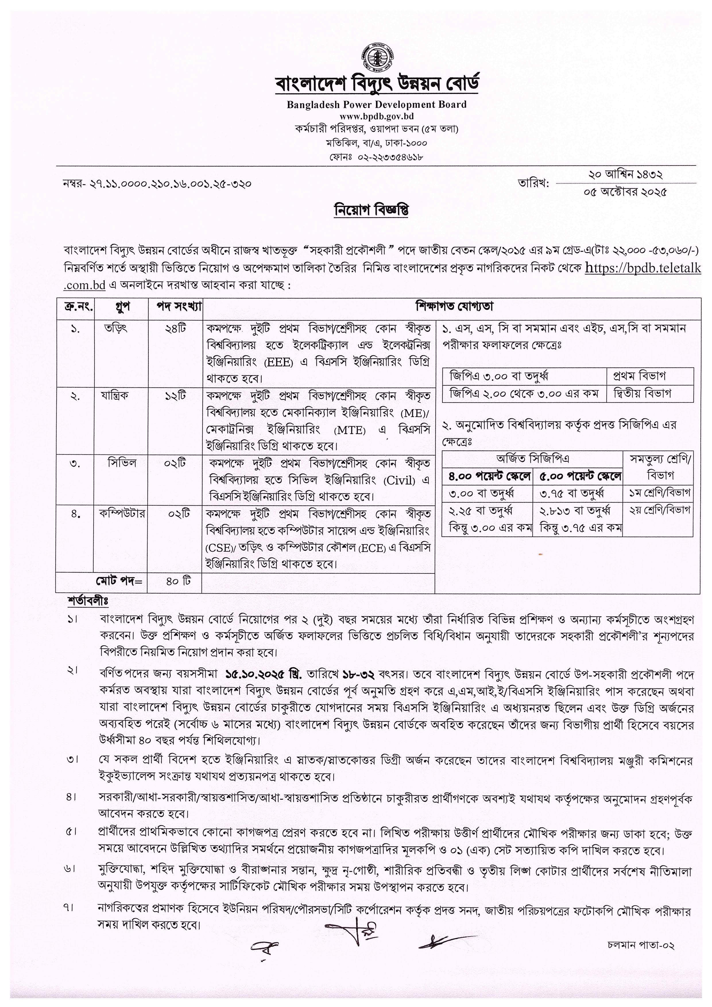 আগ্রহী প্রার্থীরা http://bpdb.teletalk.com.bd ওয়েবসাইটের মাধ্যমে অনলাইনে আবেদন করতে পারবেন।