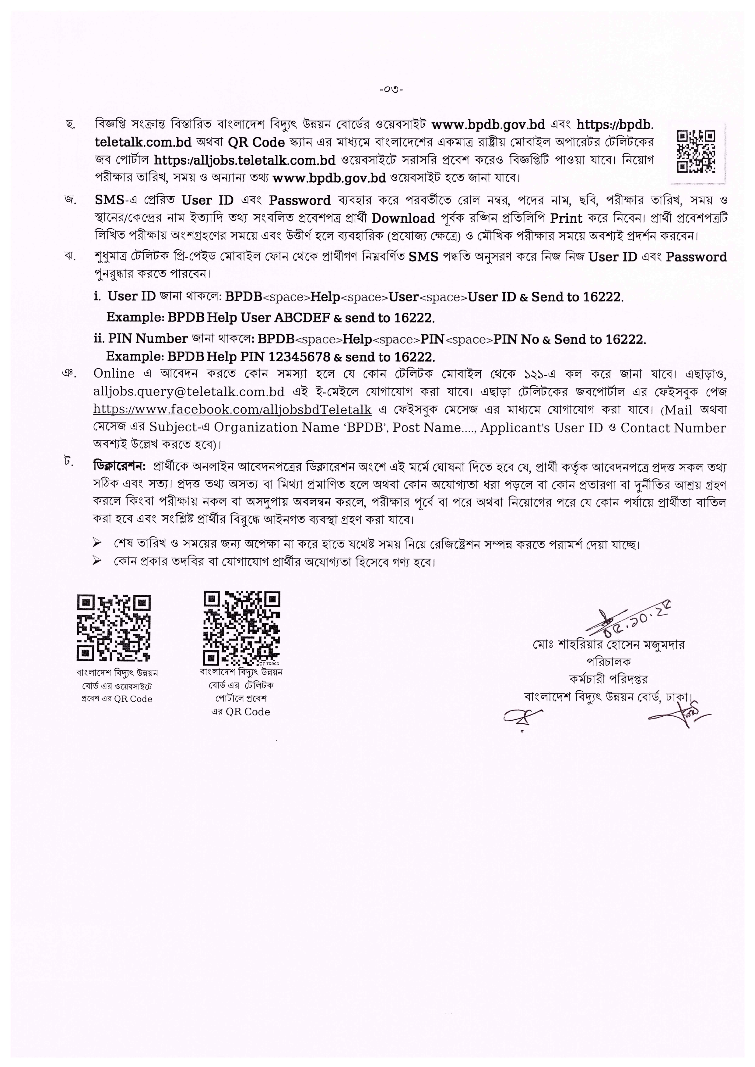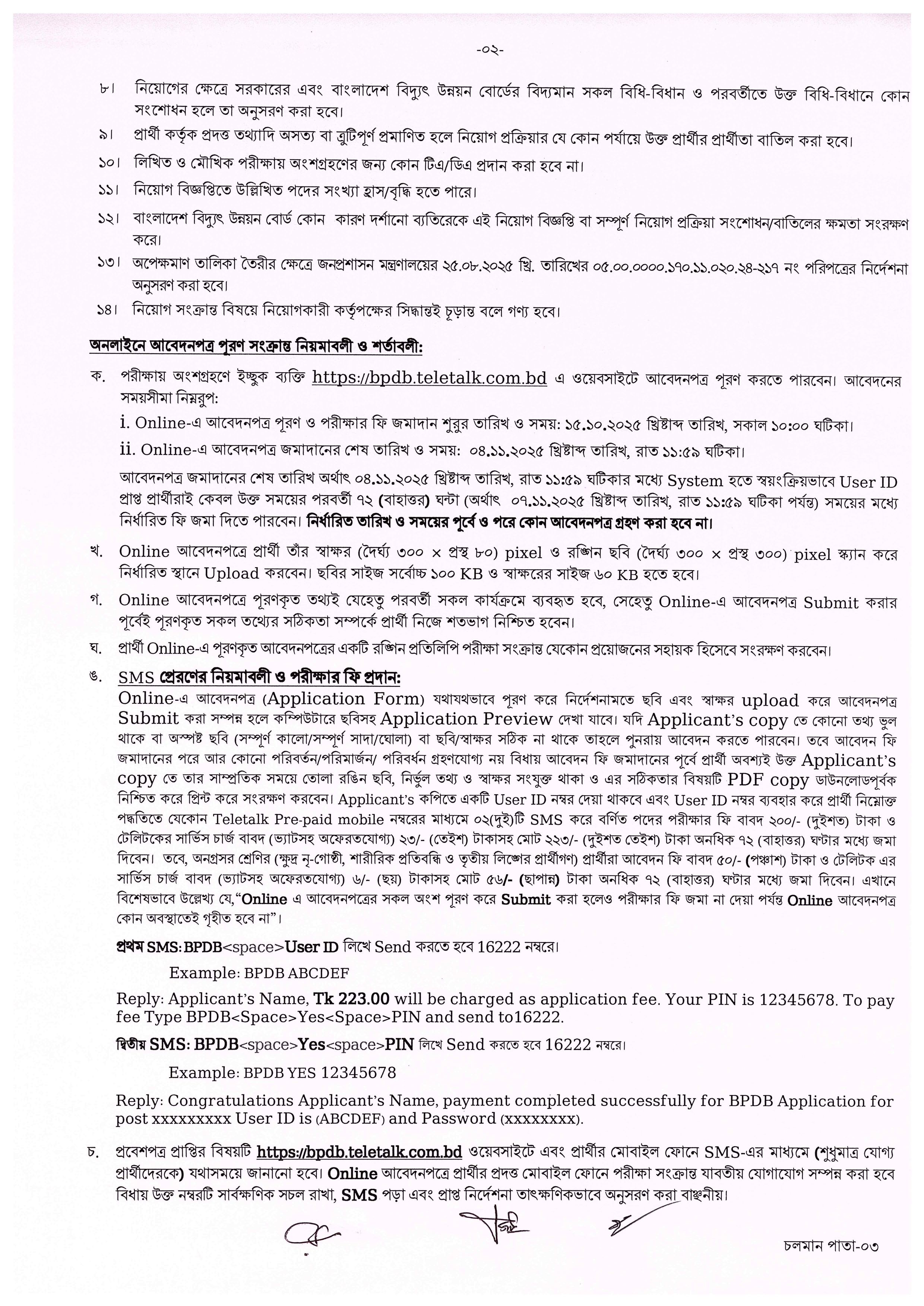 নিয়োগ পরীক্ষার তারিখ, সময় ও স্থান পরবর্তীতে বাংলাদেশ বিদ্যুৎ উন্নয়ন বোর্ডের ওয়েবসাইট এবং প্রার্থীর মোবাইল ফোনে SMS এর মাধ্যমে জানানো হবে।