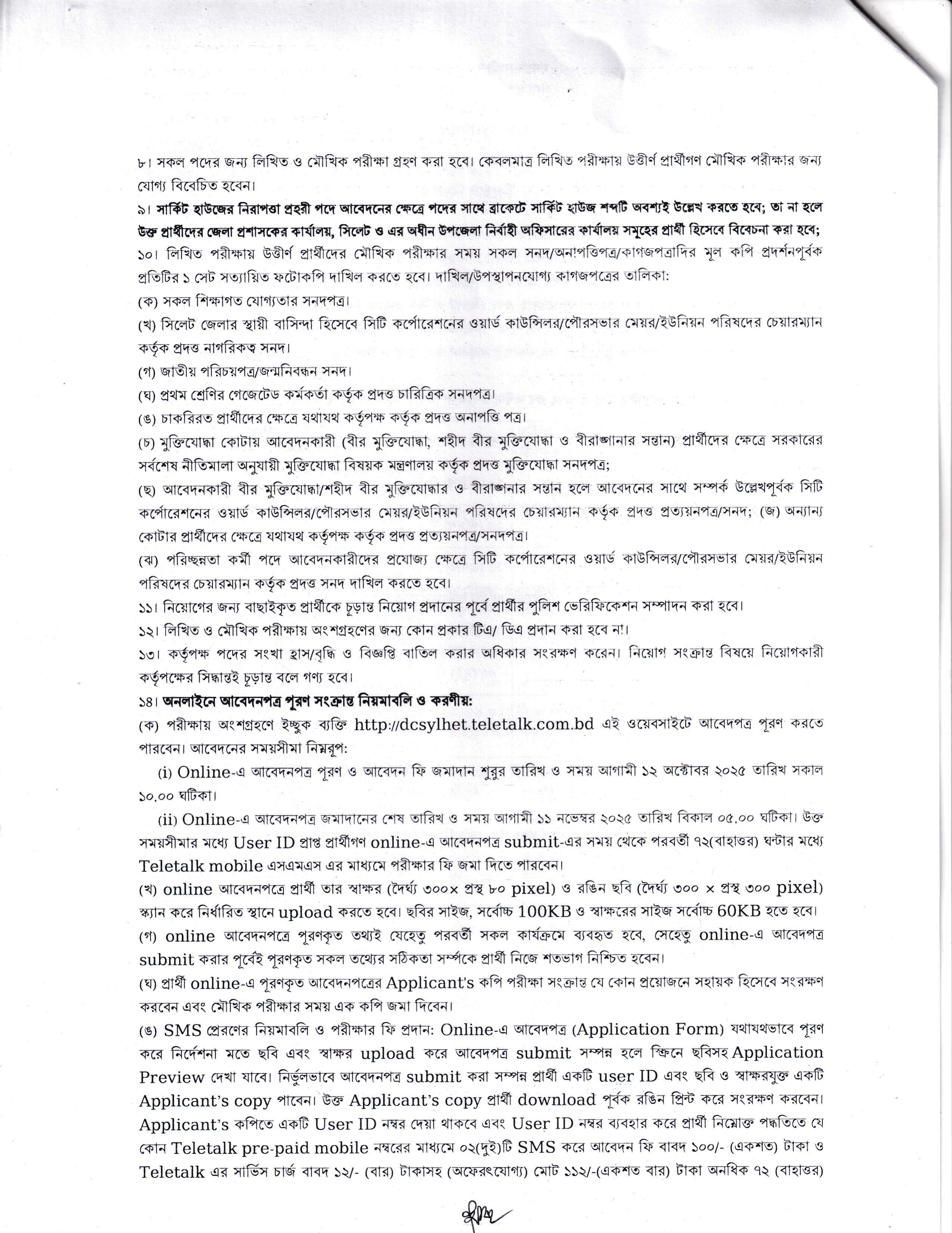 পরীক্ষার তারিখ ও স্থান: লিখিত ও মৌখিক পরীক্ষার তারিখ, সময় ও স্থান প্রবেশপত্র প্রাপ্তির মাধ্যমে এবং জেলা প্রশাসকের কার্যালয়, সিলেট এর ওয়েবসাইটে (dcsylhet.gov.bd) যথাসময়ে জানানো হবে।