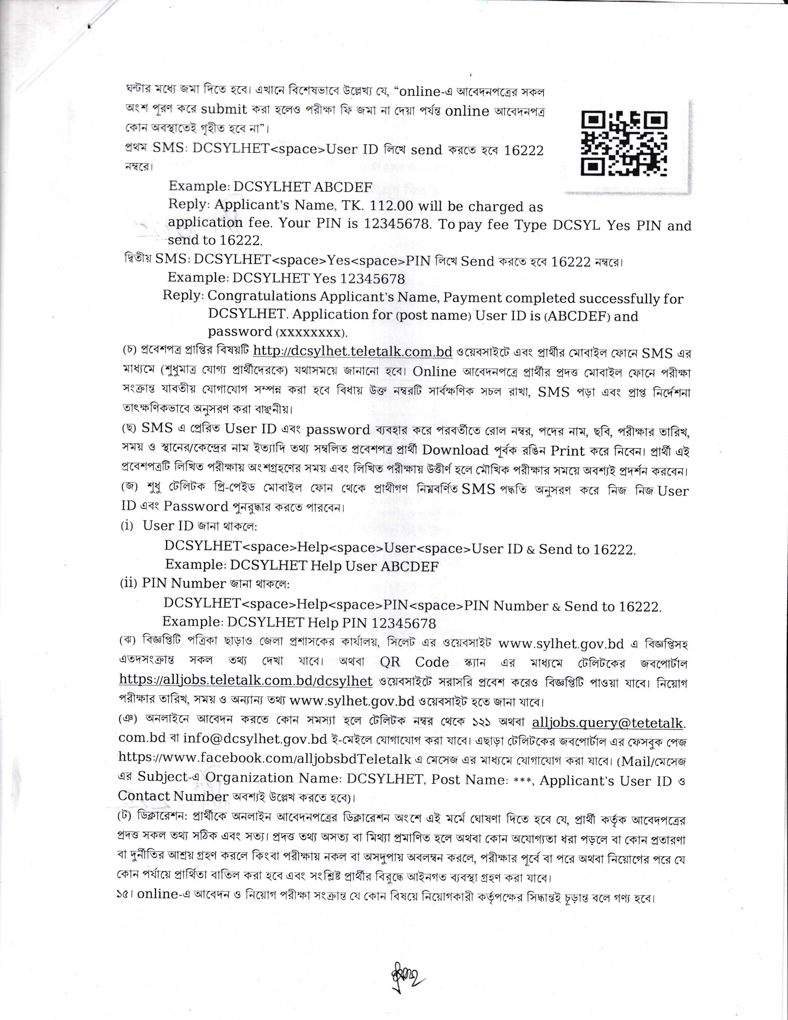 আগ্রহী প্রার্থীদের http://dcsylhet.teletalk.com.bd ওয়েবসাইটের মাধ্যমে অনলাইনে আবেদন করতে হবে। অনলাইন ব্যতীত অন্য কোনো মাধ্যমে আবেদন গ্রহণ করা হবে না।