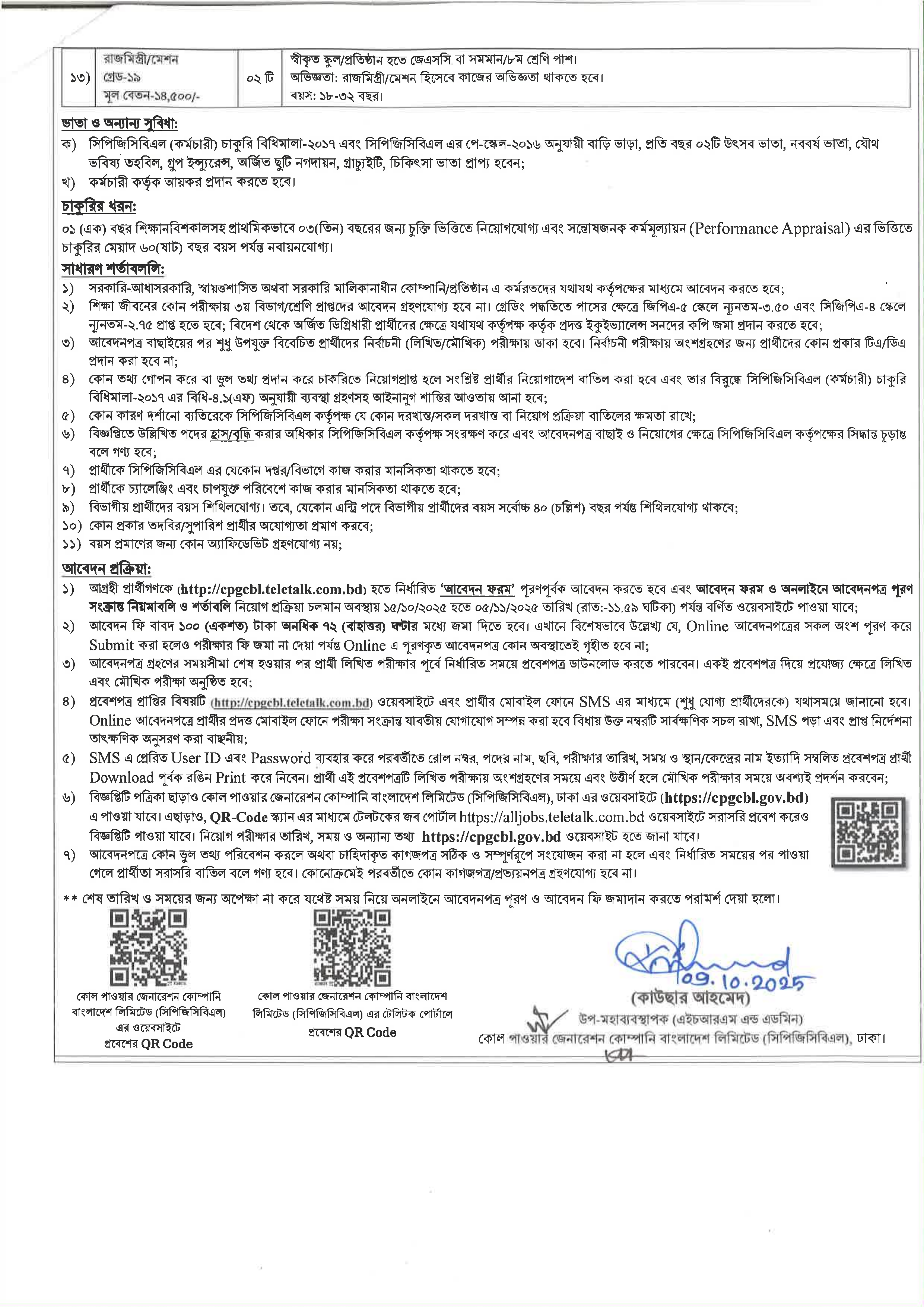 আবেদনের শেষ তারিখ: ০৫ নভেম্বর ২০২৫ (রাত ১১:৫৯ ঘটিকা)।