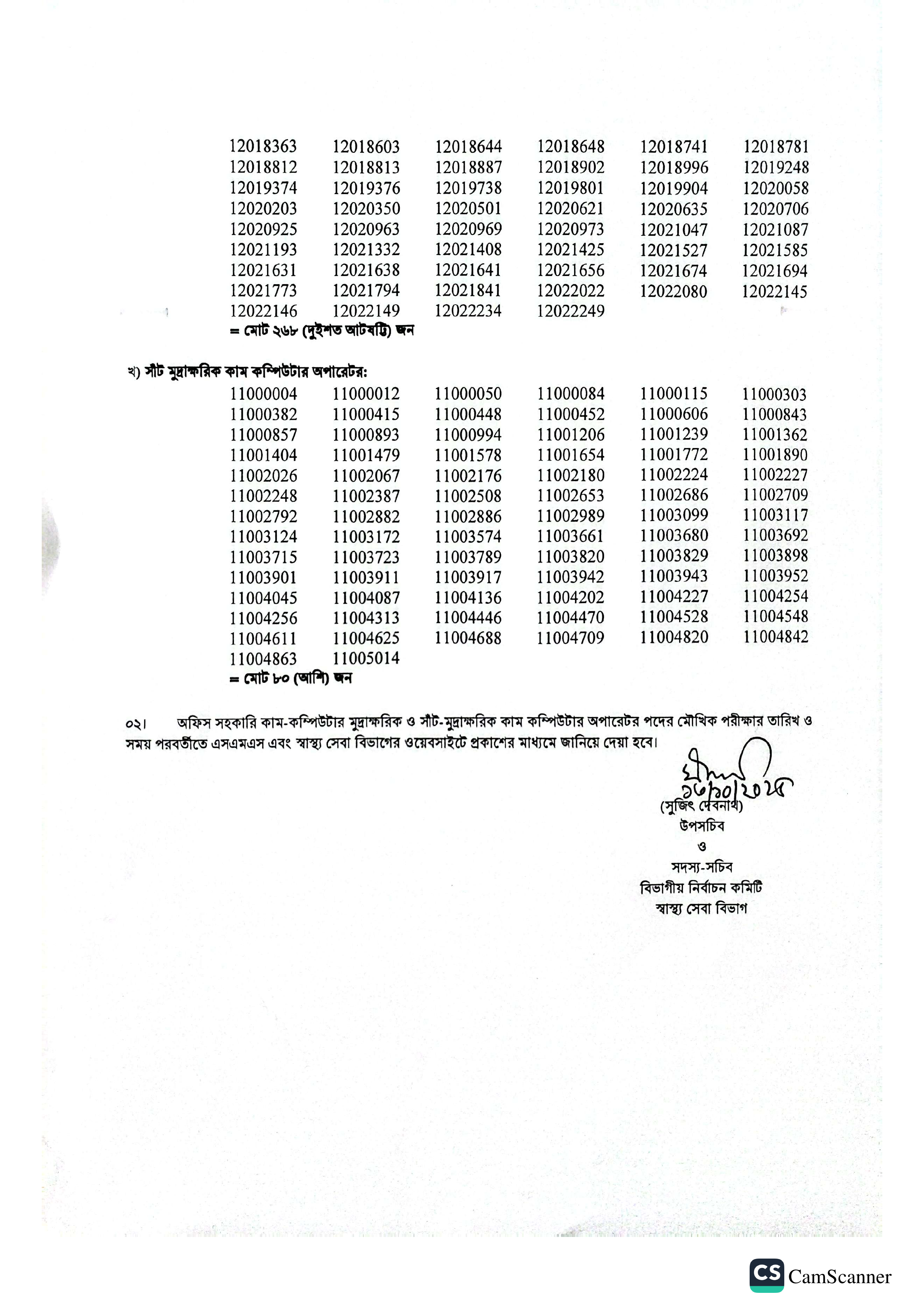 অফিস সহকারী কাম-কম্পিউটার মুদ্রাক্ষরিক পদে ২৬৮ জন এবং সীট মুদ্রাক্ষরিক কাম-কম্পিউটার অপারেটর পদে ৮০ জন প্রার্থী মৌখিক পরীক্ষার জন্য নির্বাচিত হয়েছেন।