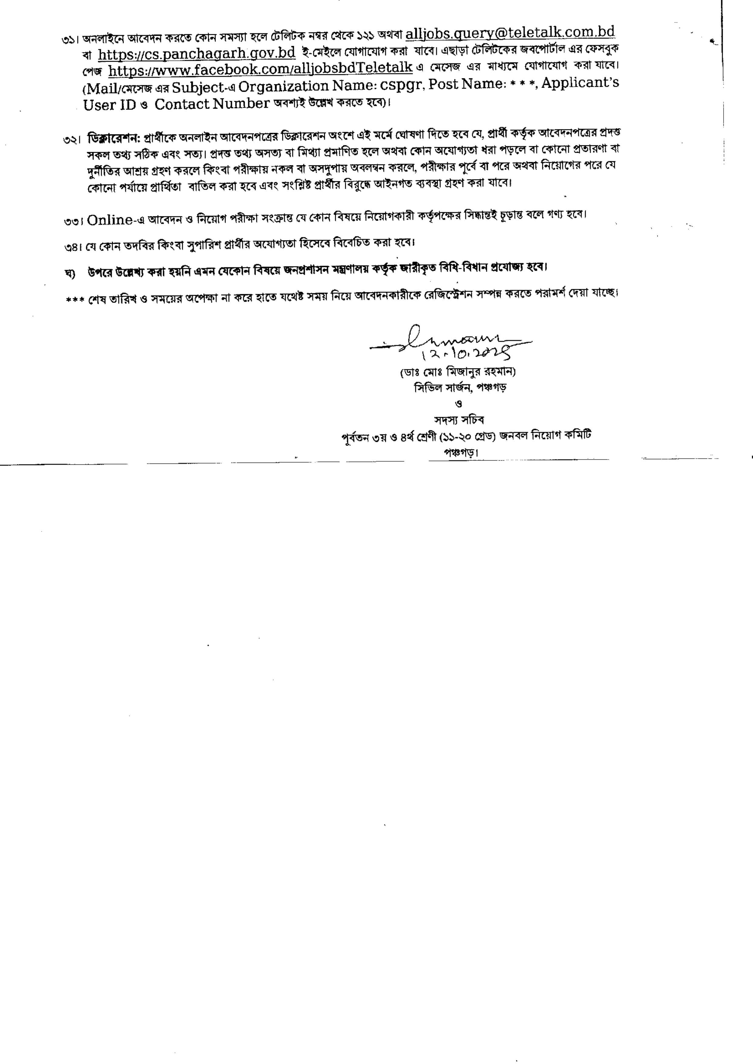 আবেদনের প্রক্রিয়া: আবেদন অনলাইনের মাধ্যমে (http://cs.panchagarh.teletalk.com.bd) করতে হবে। একই ব্যক্তি একাধিক পদে আবেদন করতে পারবেন না।