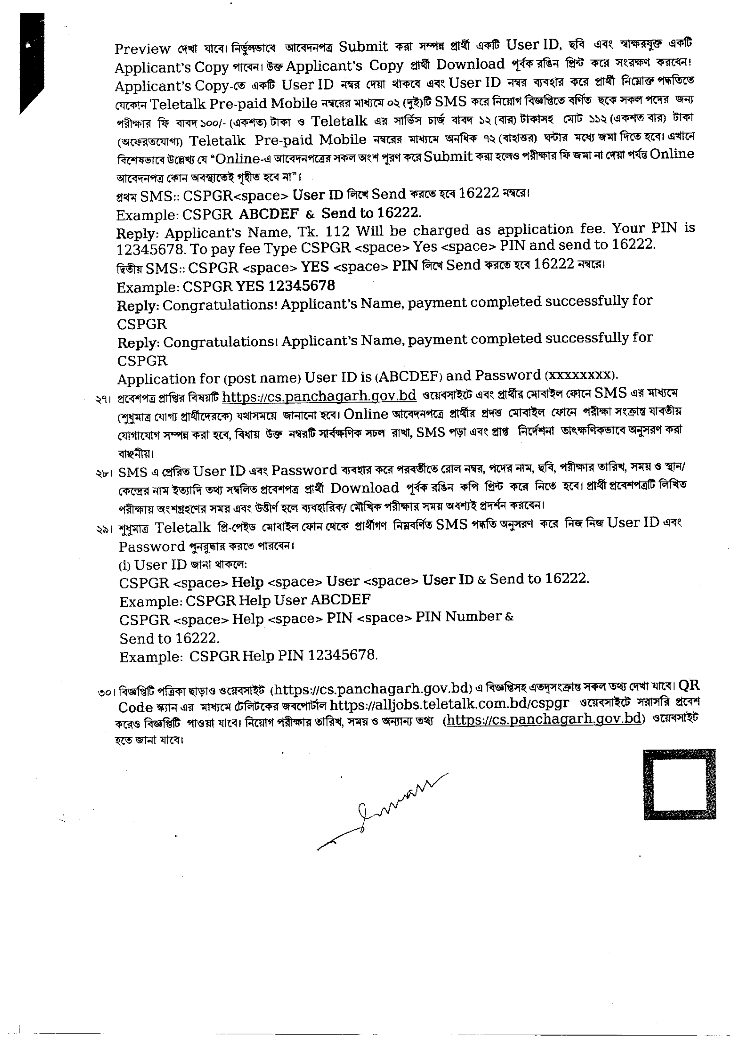 পরীক্ষার তারিখ, সময় ও স্থান: প্রবেশপত্র প্রাপ্তির বিষয়টি http://cs.panchagarh.gov.bd ওয়েবসাইটে এবং প্রার্থীর মোবাইল ফোনে SMS এর মাধ্যমে যথাসময়ে জানানো হবে।