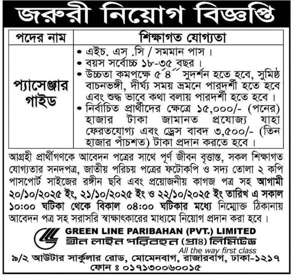 | প্যাসেঞ্জার গাইড | • এ.এইচ. এস.সি / সম্মান পাস। |
