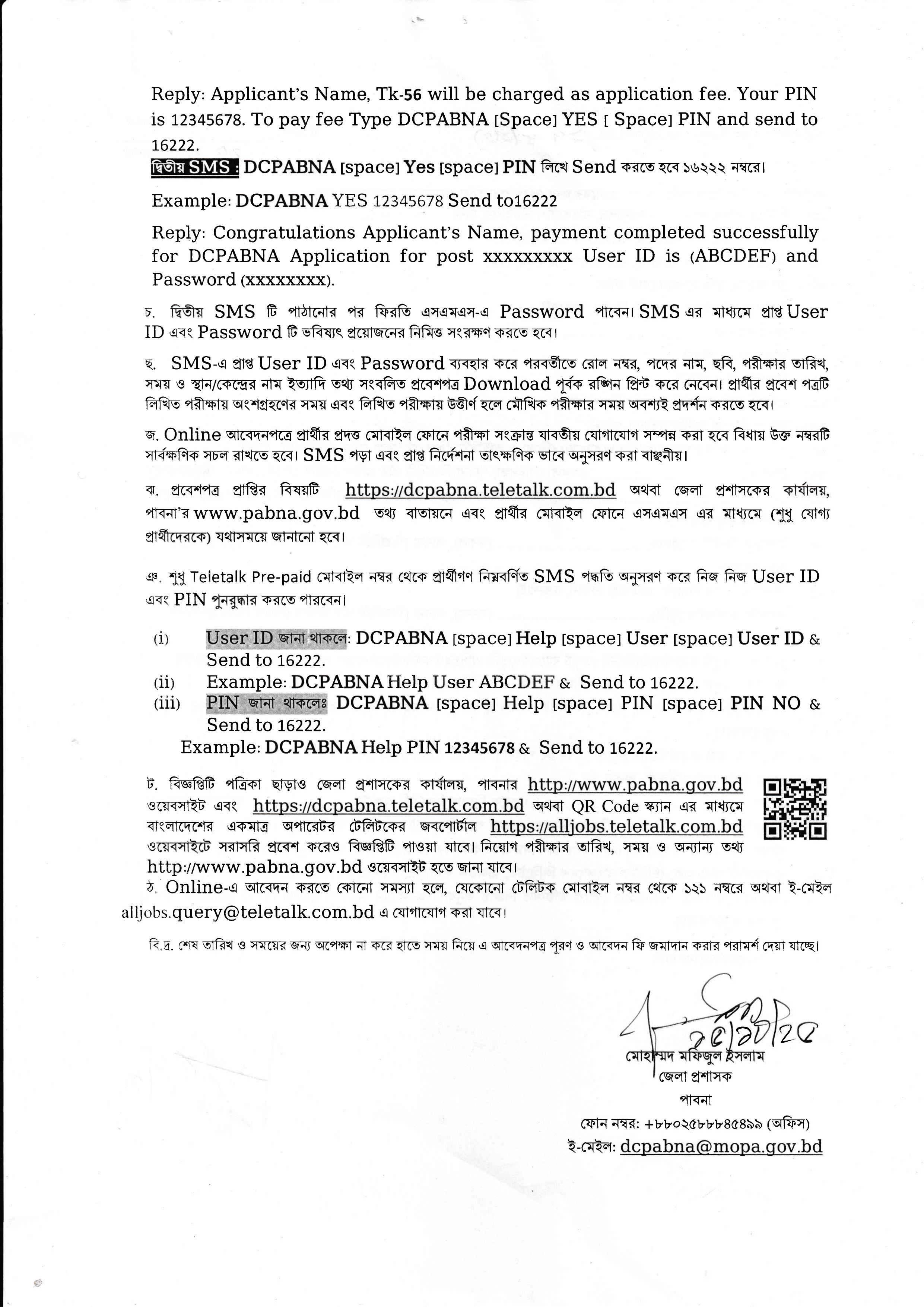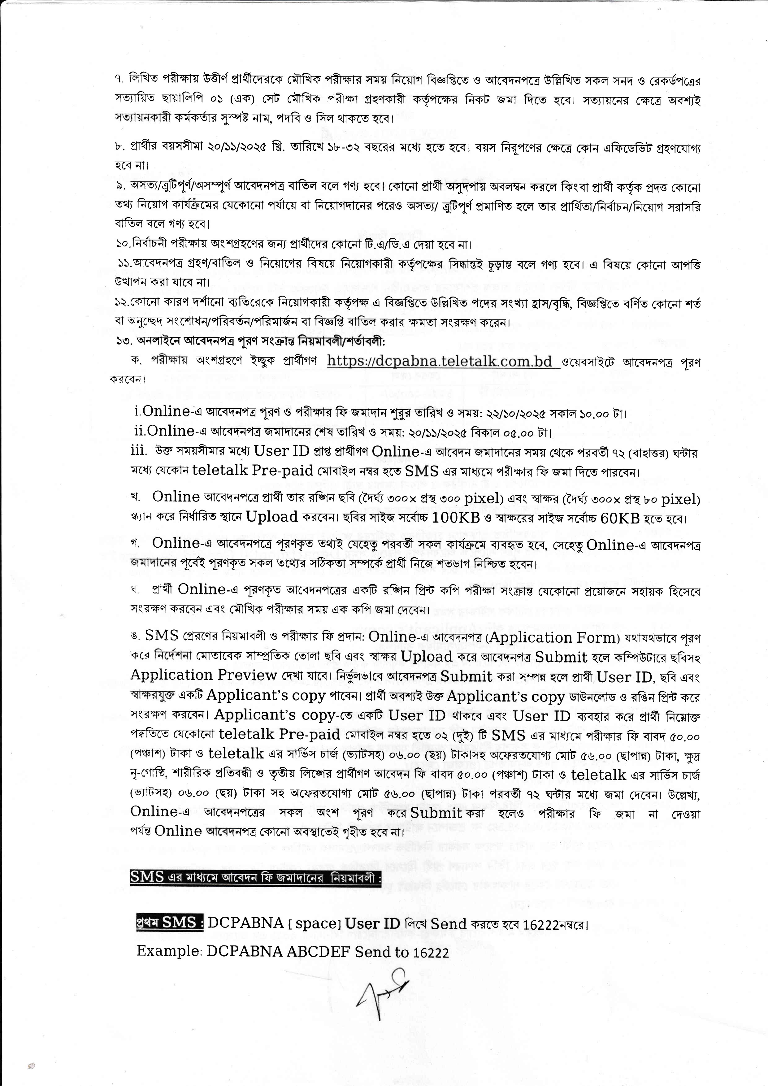 আবেদনের প্রক্রিয়া: আগ্রহী প্রার্থীরা https://dcpabna.teletalk.com.bd/ ওয়েবসাইটে প্রবেশ করে আবেদন করতে পারবেন। অনলাইন ব্যতীত অন্য কোনো আবেদন গ্রহণ করা হবে না।