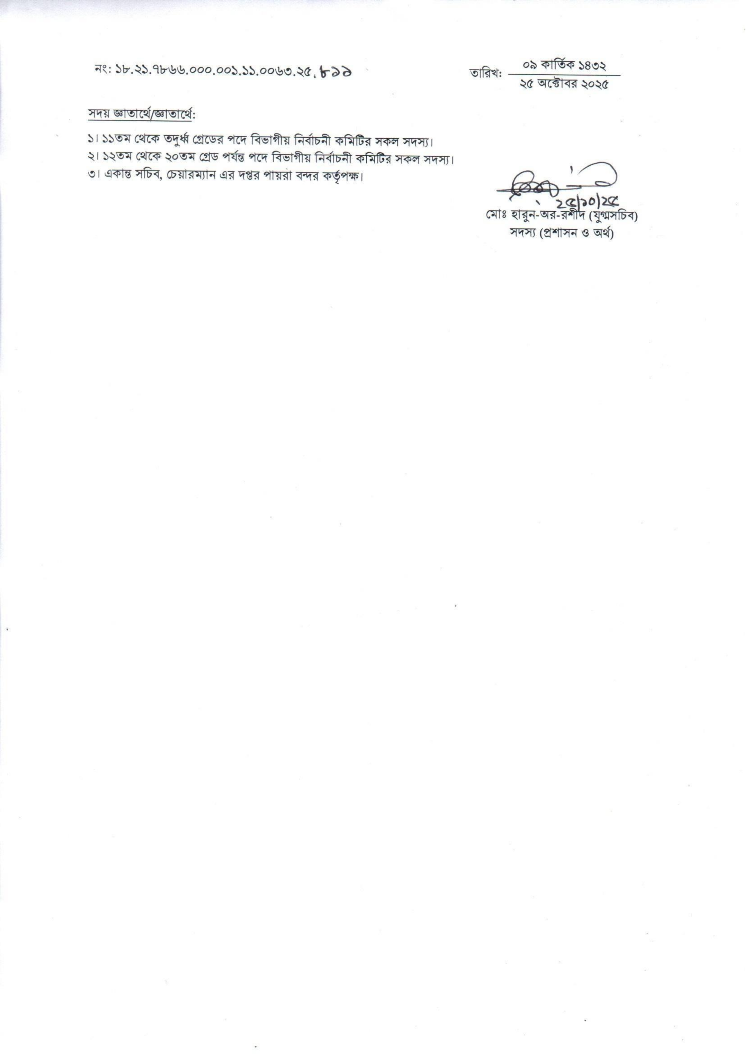 - ২৮ অক্টোবর ২০২৫, সকাল ১০:০০ ঘটিকা: অফিস সহায়ক, লস্কর।