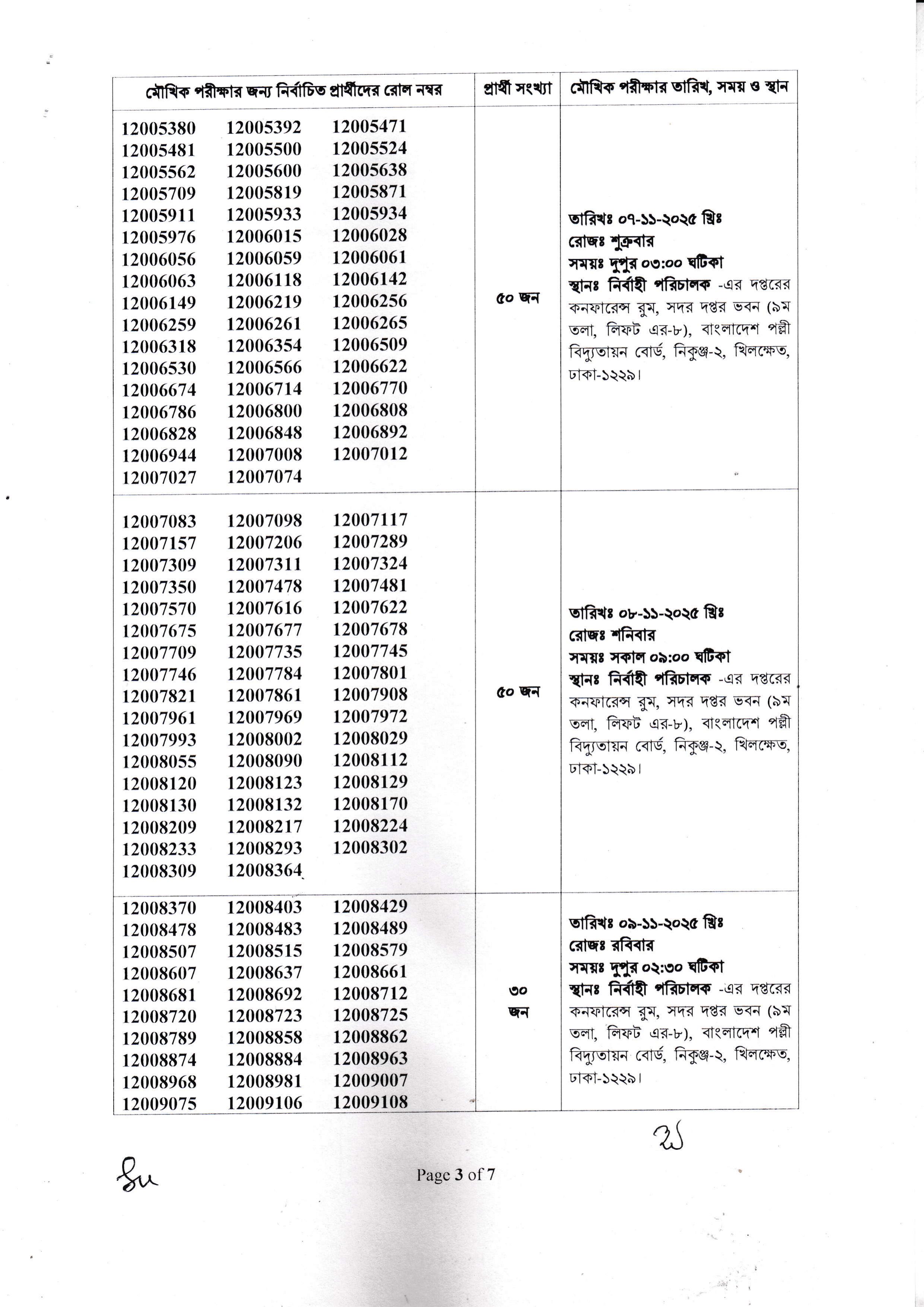 - পরীক্ষার স্থান: নির্বাহী পরিচালক-এর দপ্তরের কনফারেন্স রুম, সদর দপ্তর ভবন (৯ম তলা, লিফট এর-৮), বাংলাদেশ পল্লী বিদ্যুতায়ন বোর্ড, নিকুঞ্জ-২, খিলক্ষেত, ঢাকা-১২২৯।