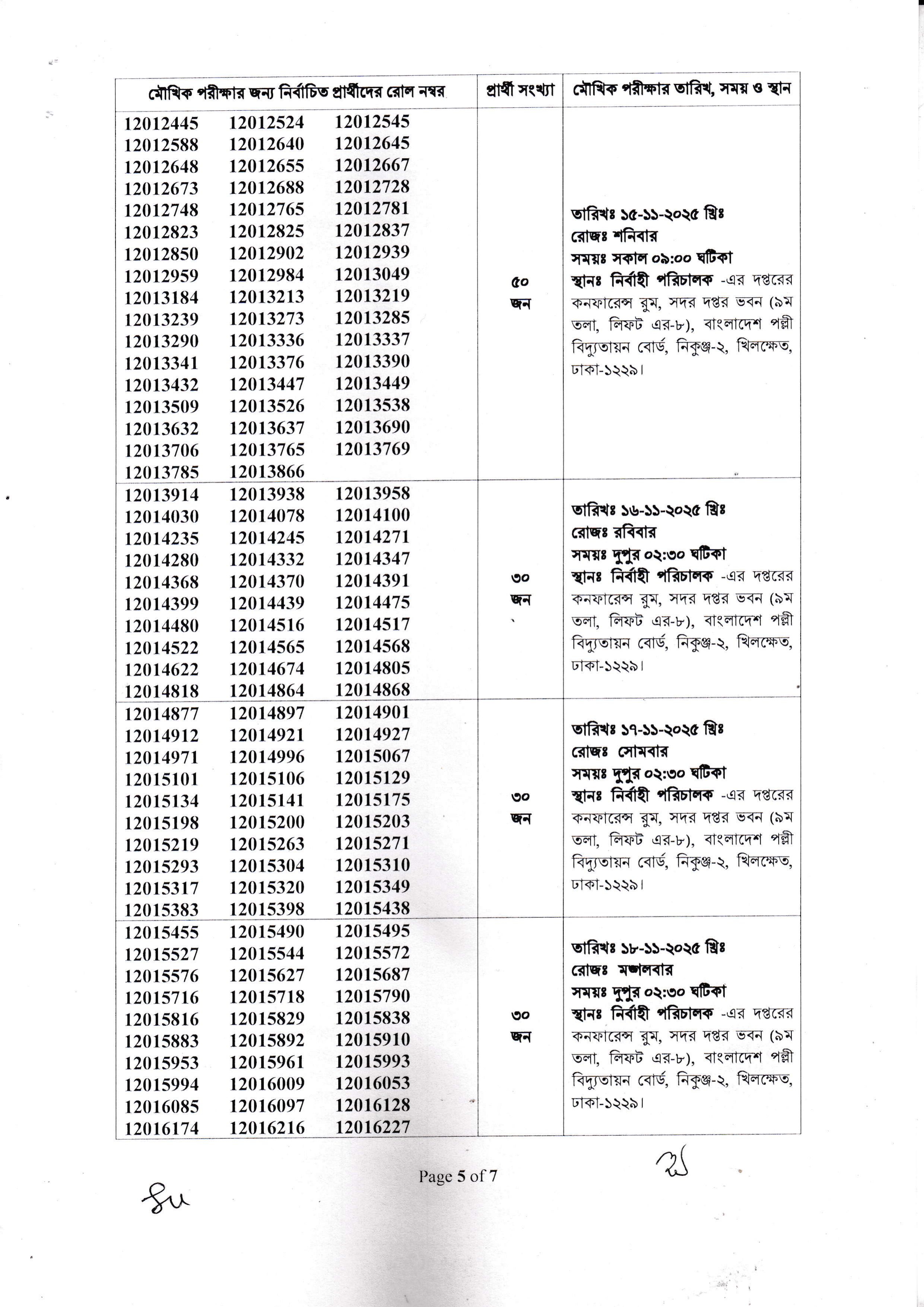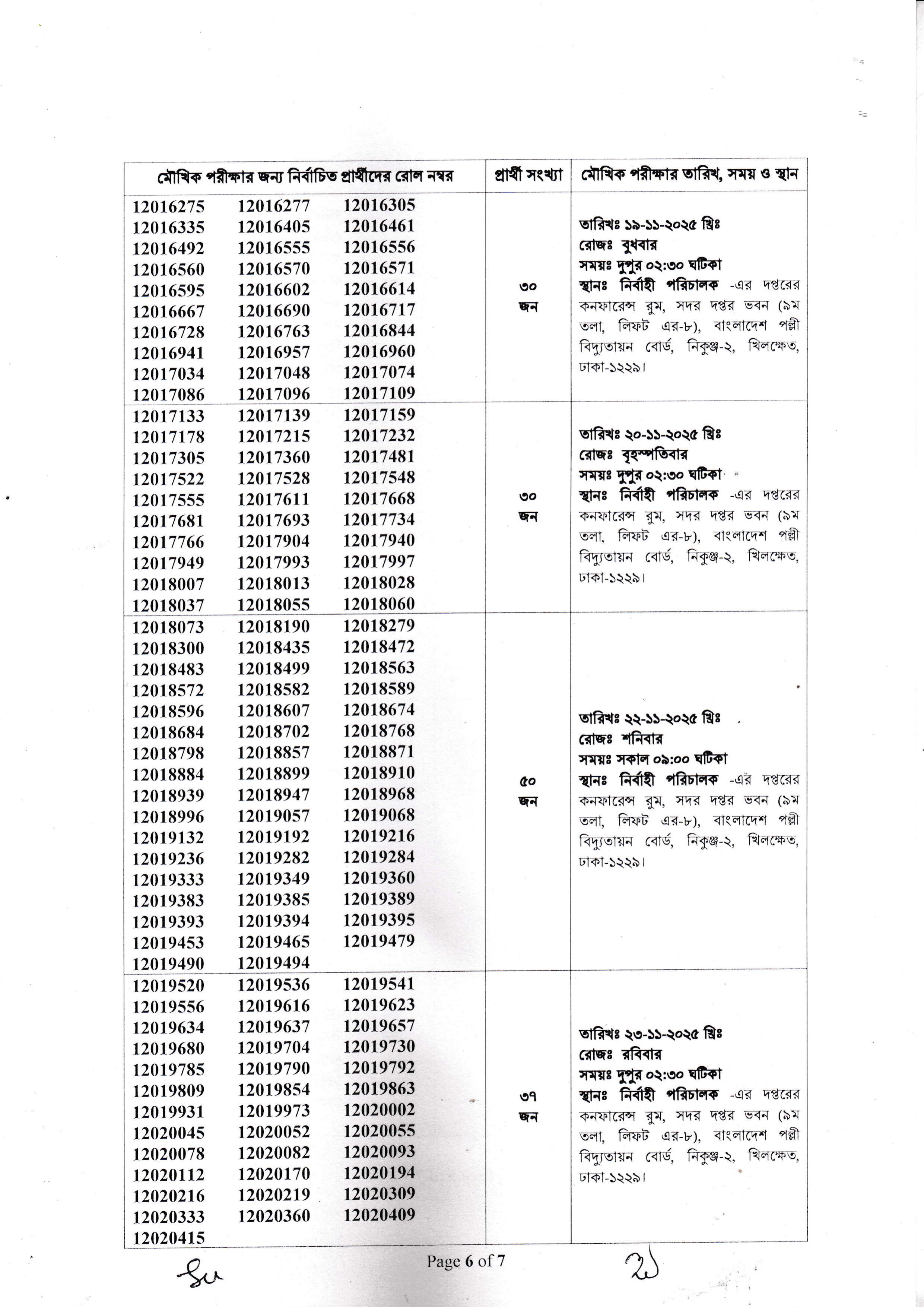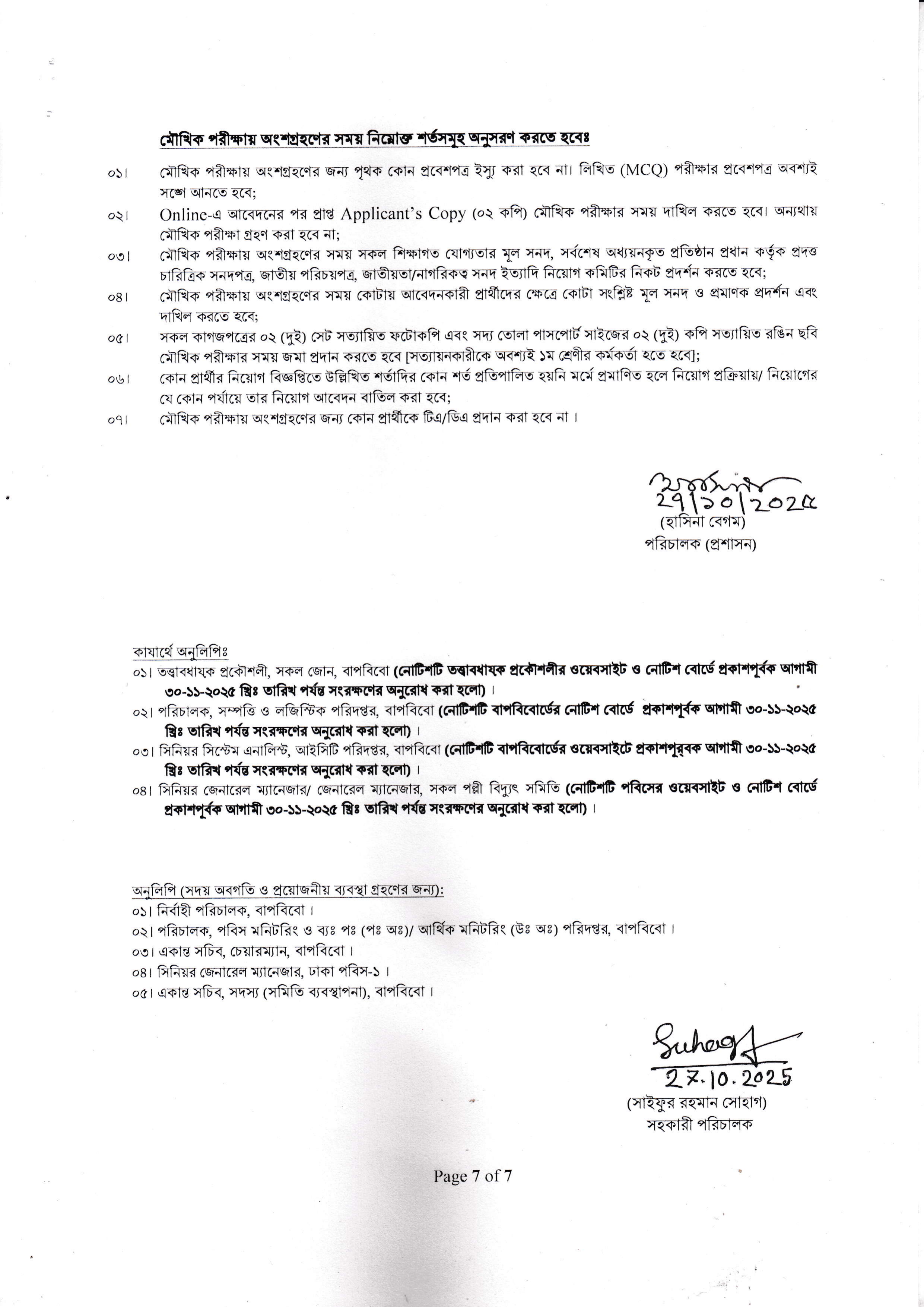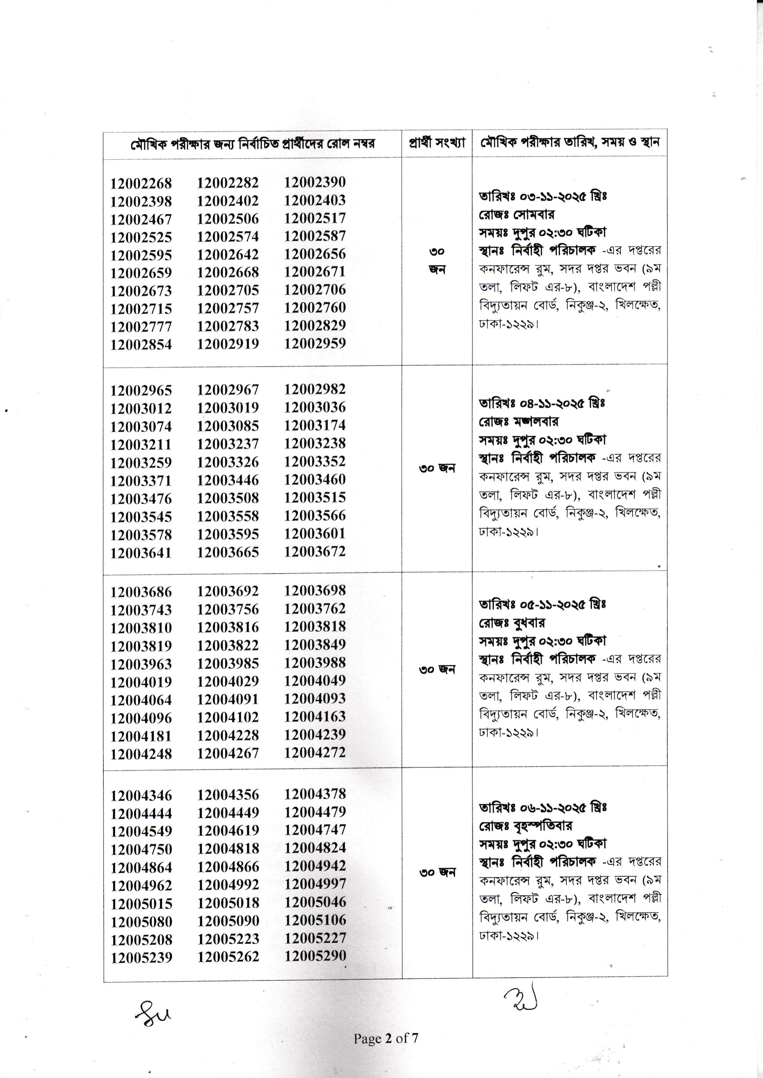 - মৌখিক পরীক্ষার তারিখ: ২৯ অক্টোবর, ২০২৫ খ্রিঃ থেকে ২৩ নভেম্বর, ২০২৫ খ্রিঃ পর্যন্ত বিভিন্ন ধাপে পরীক্ষা অনুষ্ঠিত হবে।