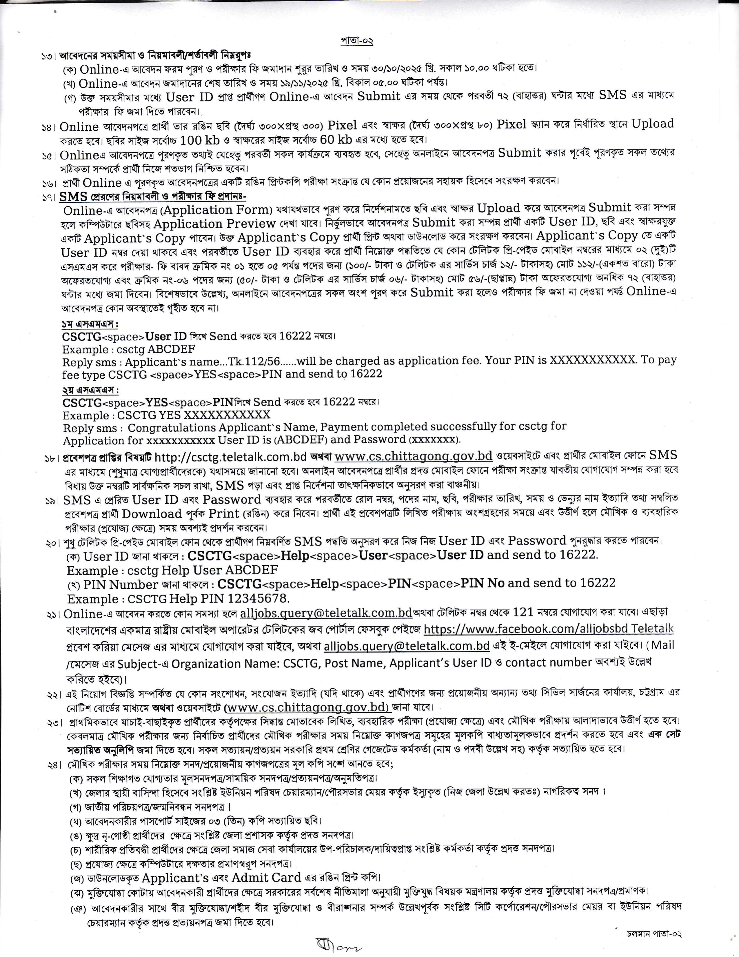 আবেদনের প্রক্রিয়া: আগ্রহী প্রার্থীরা অনলাইনে (http://csctg.teletalk.com.bd/) ওয়েবসাইটের মাধ্যমে আবেদন করতে পারবেন। সরাসরি বা ডাকযোগে কোনো আবেদন গ্রহণ করা হবে না।