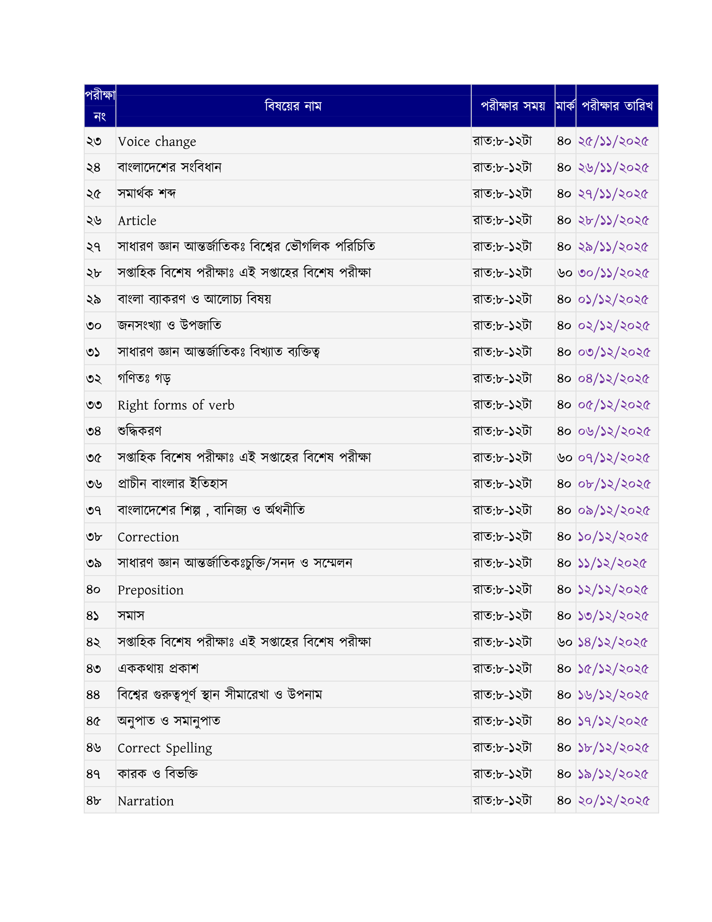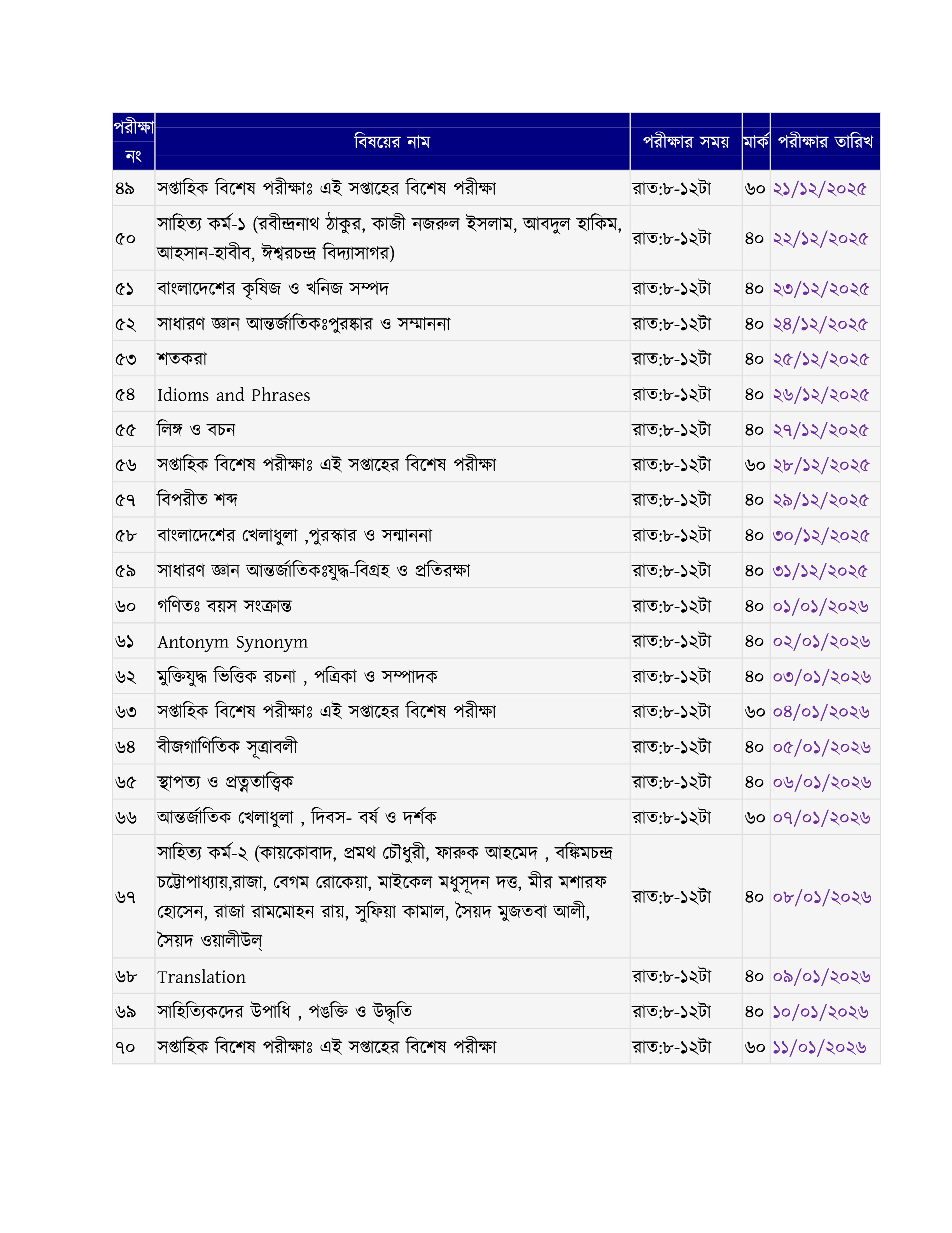 ৪। প্রতিদিন এক অধ্যায় পড়াশোনা করে আপনাকে পরীক্ষা দিতে হবে। মন্ত্রণালয় ও অধিদপ্তরের চাকরির পরীক্ষায় যেমন প্রশ্ন হতে পারে ঠিক সেই রকম প্রশ্ন করে Daily Exam পরীক্ষা নেওয়া হবে।