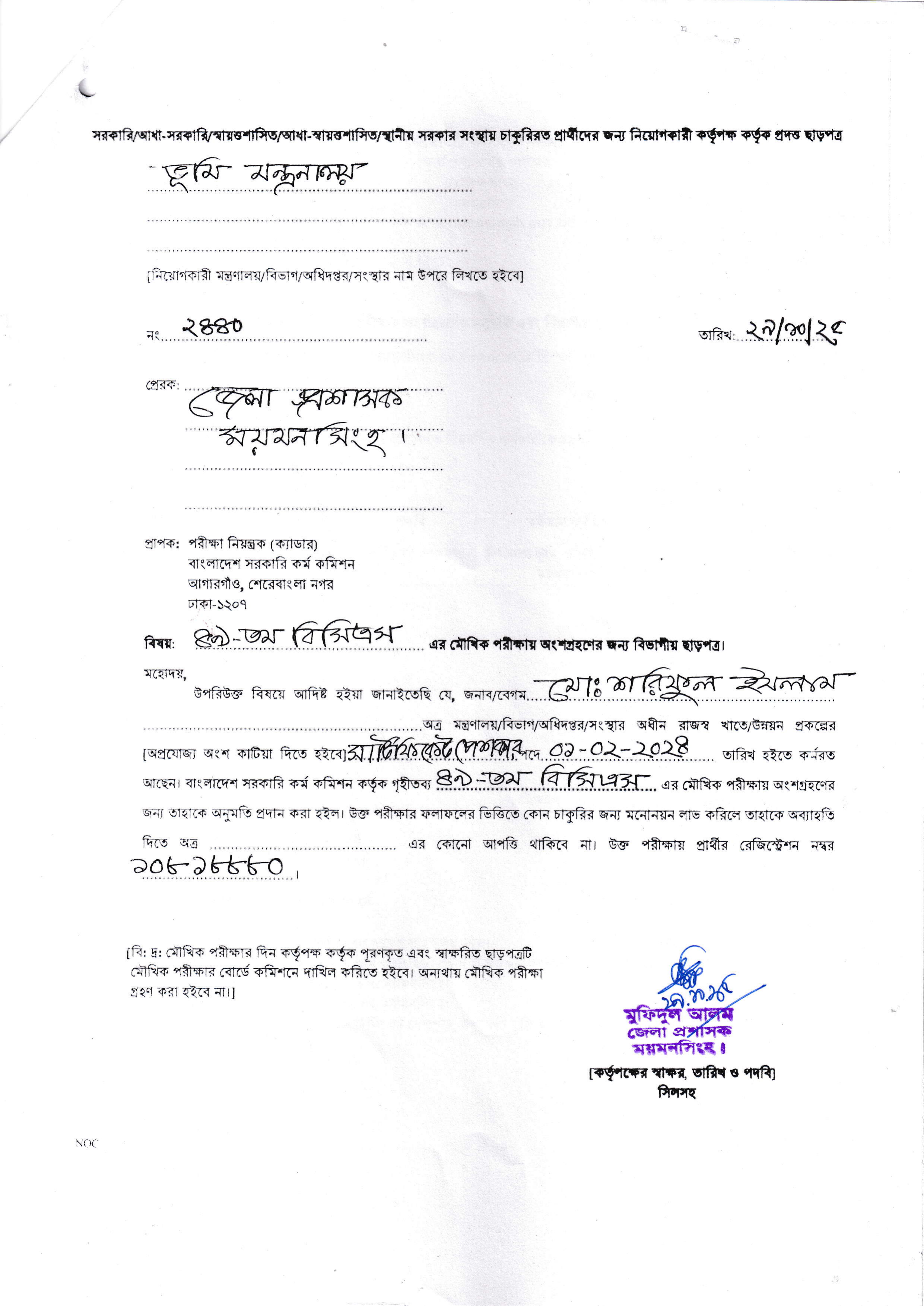 এই অনুমতি পত্রটি মৌখিক পরীক্ষার দিন বাংলাদেশ সরকারি কর্ম কমিশনে দাখিল করতে হবে।