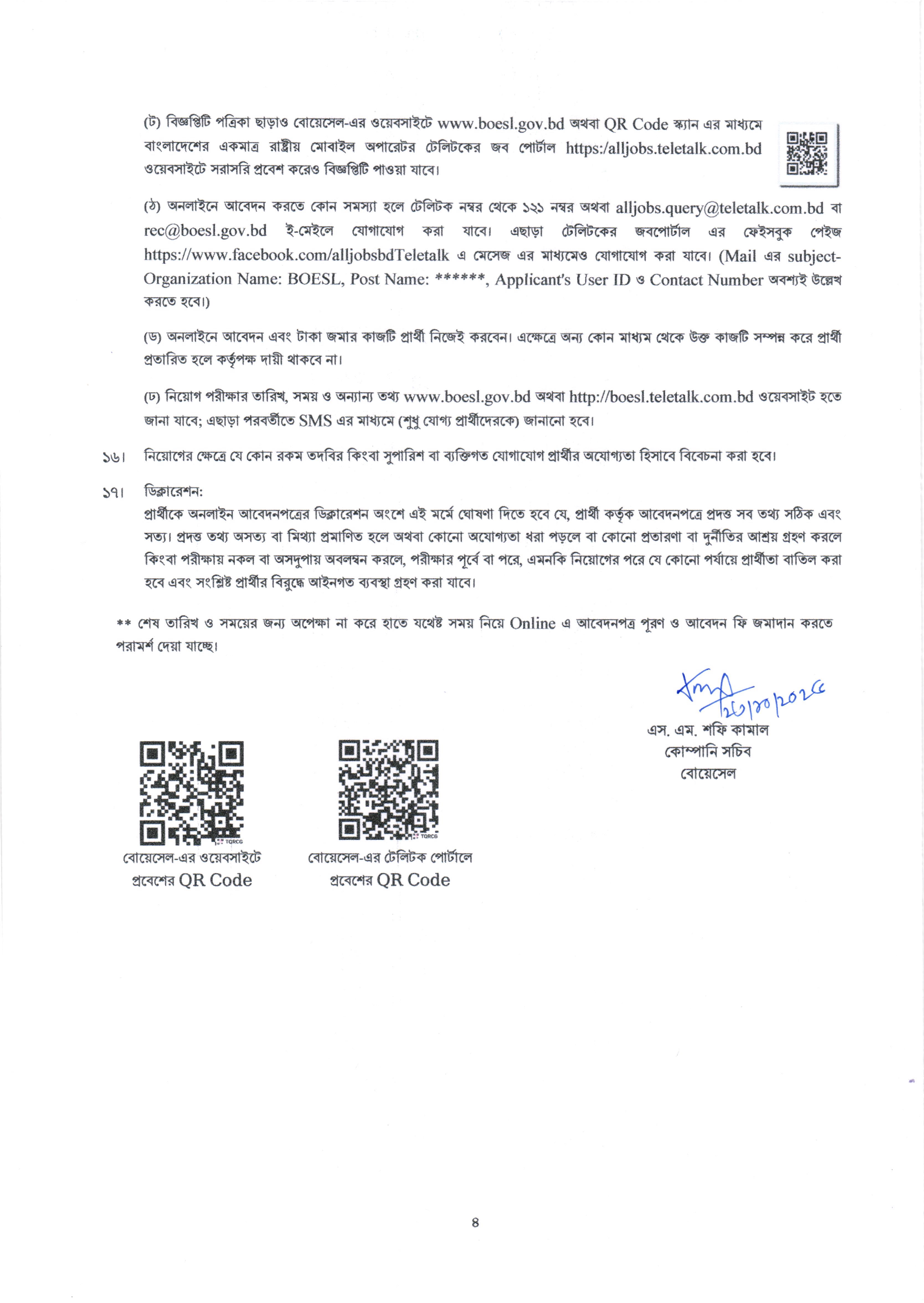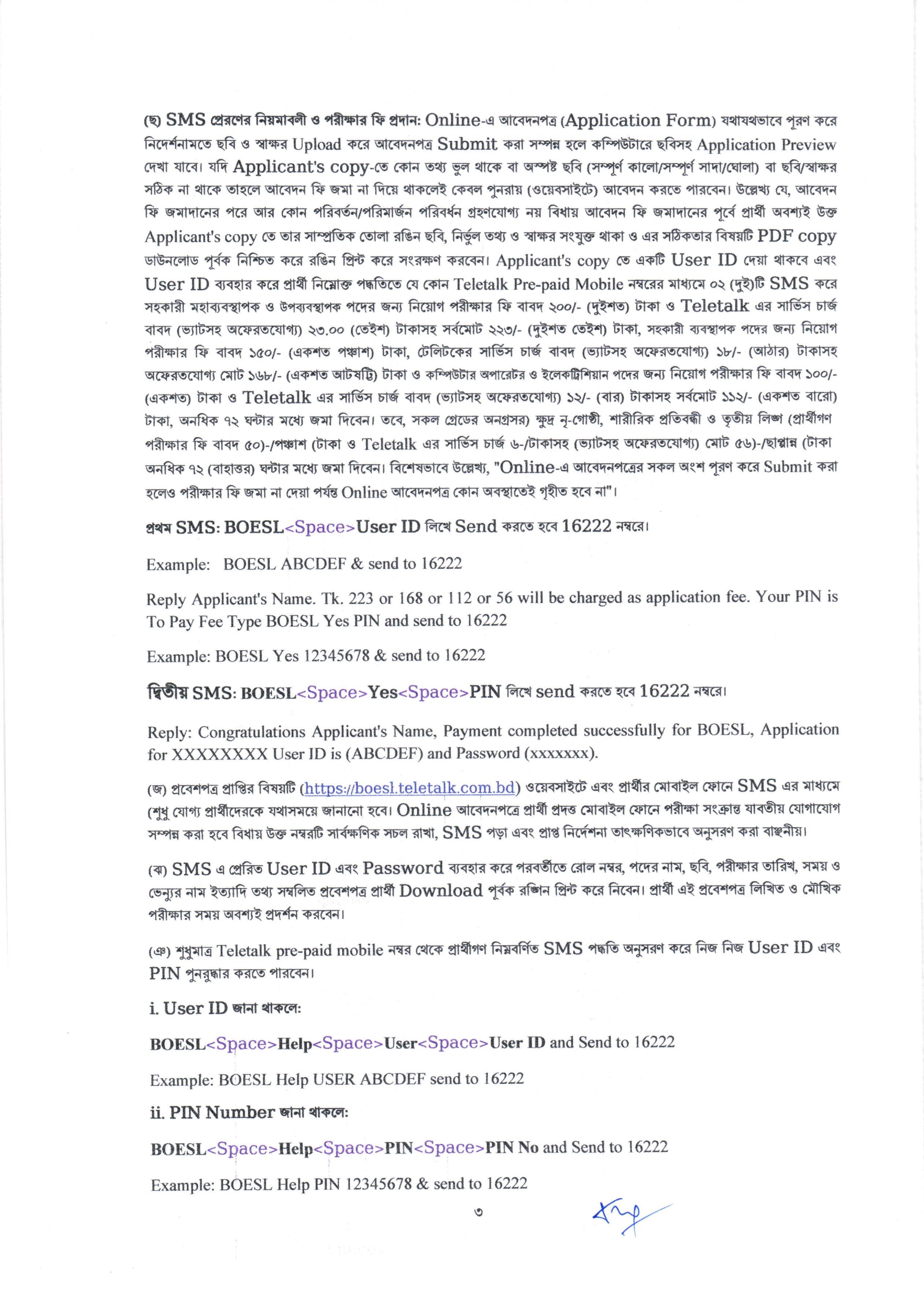 লিখিত, ব্যবহারিক ও মৌখিক পরীক্ষার তারিখ, সময় ও স্থান বোয়েসেল-এর ওয়েবসাইট (www.boesel.gov.bd) এবং টেলিটক পোর্টালে (boesel.teletalk.com.bd) যথাসময়ে প্রকাশ করা হবে। প্রবেশপত্র প্রাপ্তির বিষয়টি SMS এর মাধ্যমে যোগ্য প্রার্থীদের জানানো হবে।