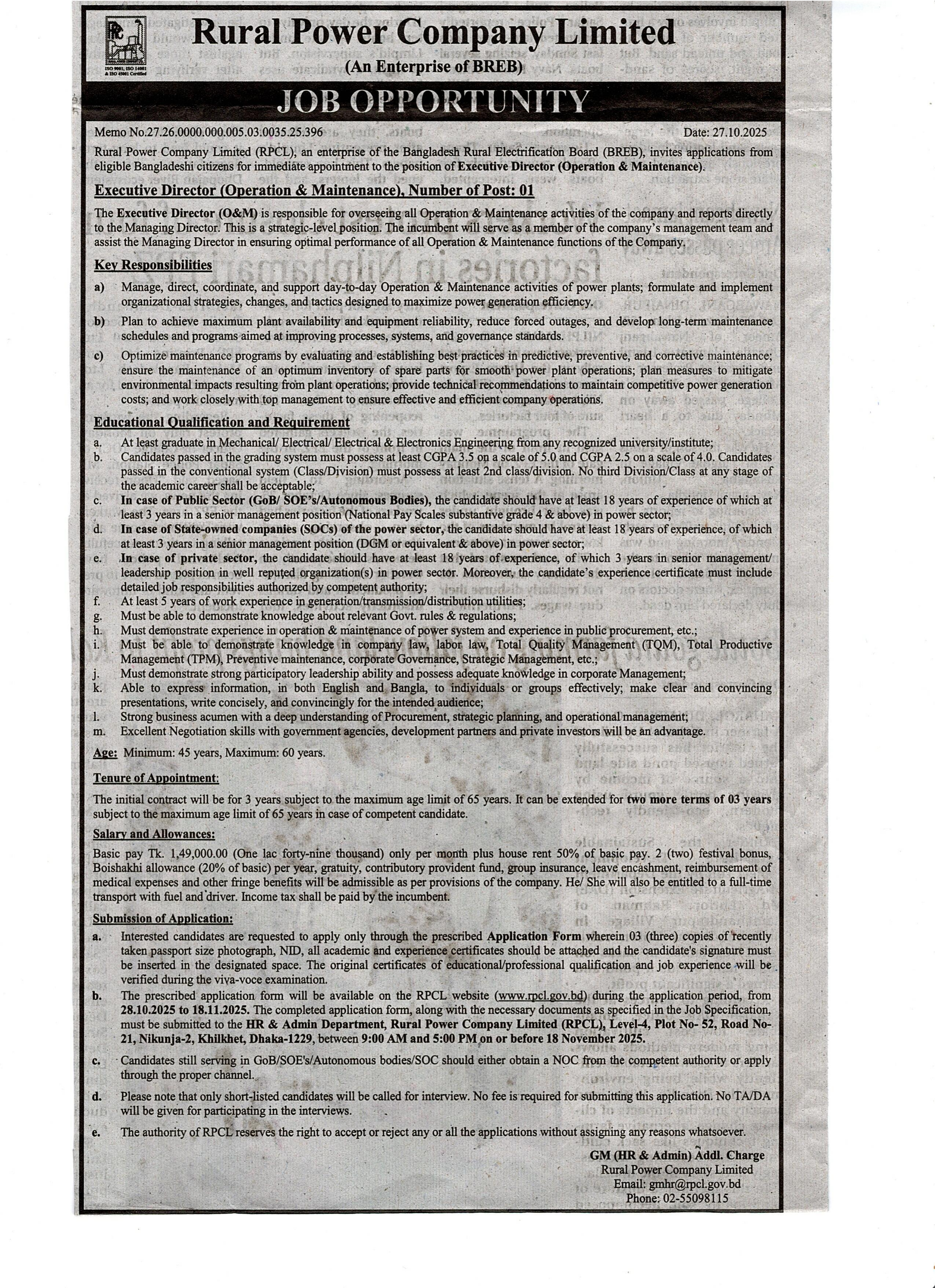 আবেদনের শেষ তারিখ: ১৮ নভেম্বর, ২০২৫ (বিকাল ৫:০০ ঘটিকা পর্যন্ত)