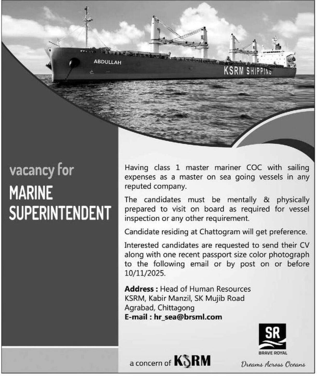 মেরিন সুপারিনটেনডেন্ট পদে নিয়োগ বিজ্ঞপ্তি