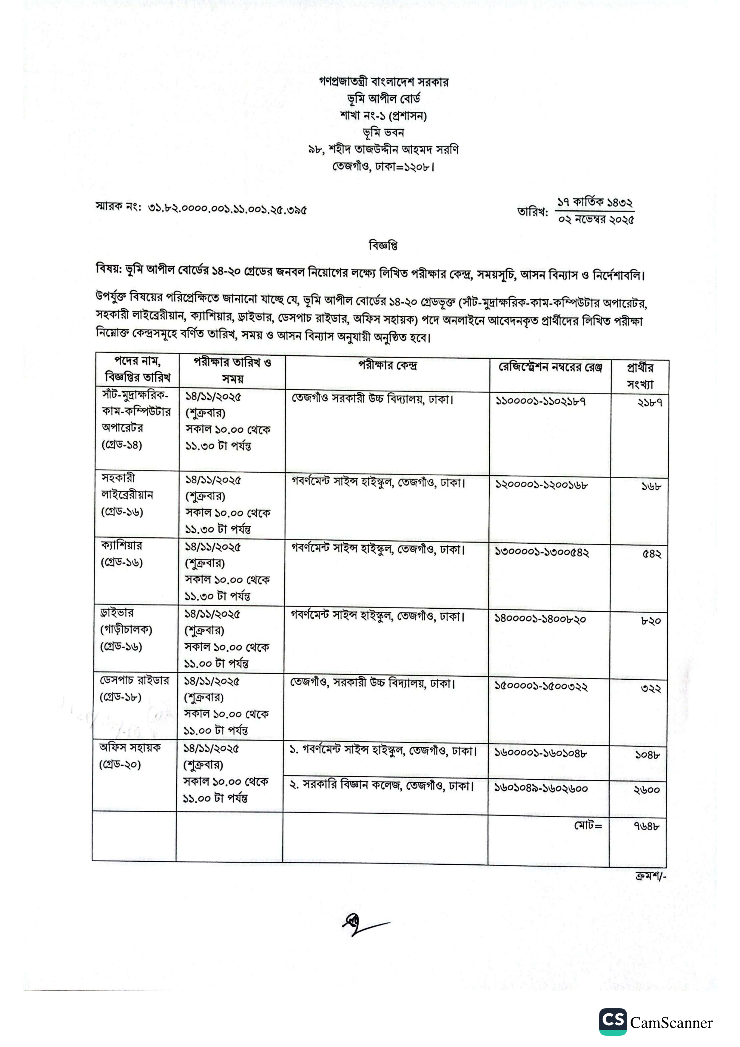 ভূমি আপীল বোর্ডের ১৪-২০ গ্রেডভুক্ত বিভিন্ন পদের লিখিত পরীক্ষার কেন্দ্র, সময়সূচি, আসন বিন্যাস এবং পরীক্ষার্থীদের জন্য গুরুত্বপূর্ণ নির্দেশাবলি প্রকাশ করা হয়েছে।