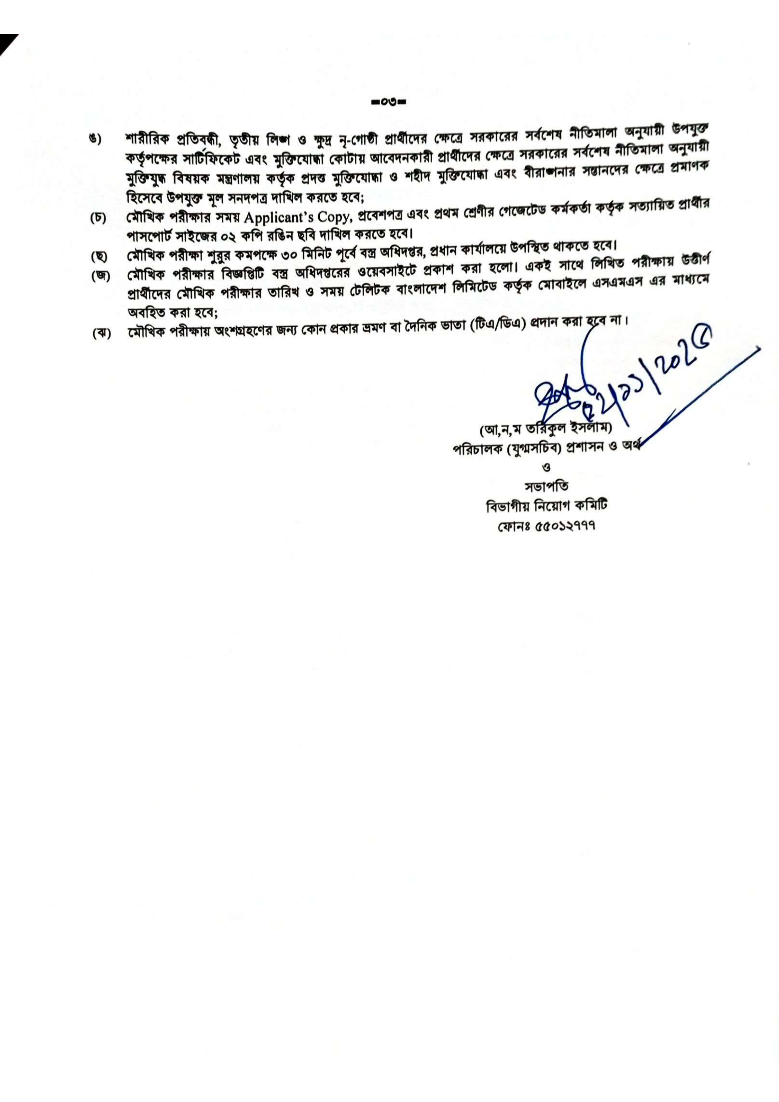 - প্রবেশপত্র এবং প্রথম শ্রেণীর গেজেটেড কর্মকর্তা কর্তৃক সত্যায়িত প্রার্থীর পাসপোর্ট সাইজের ০২ কপি রঙিন ছবি।