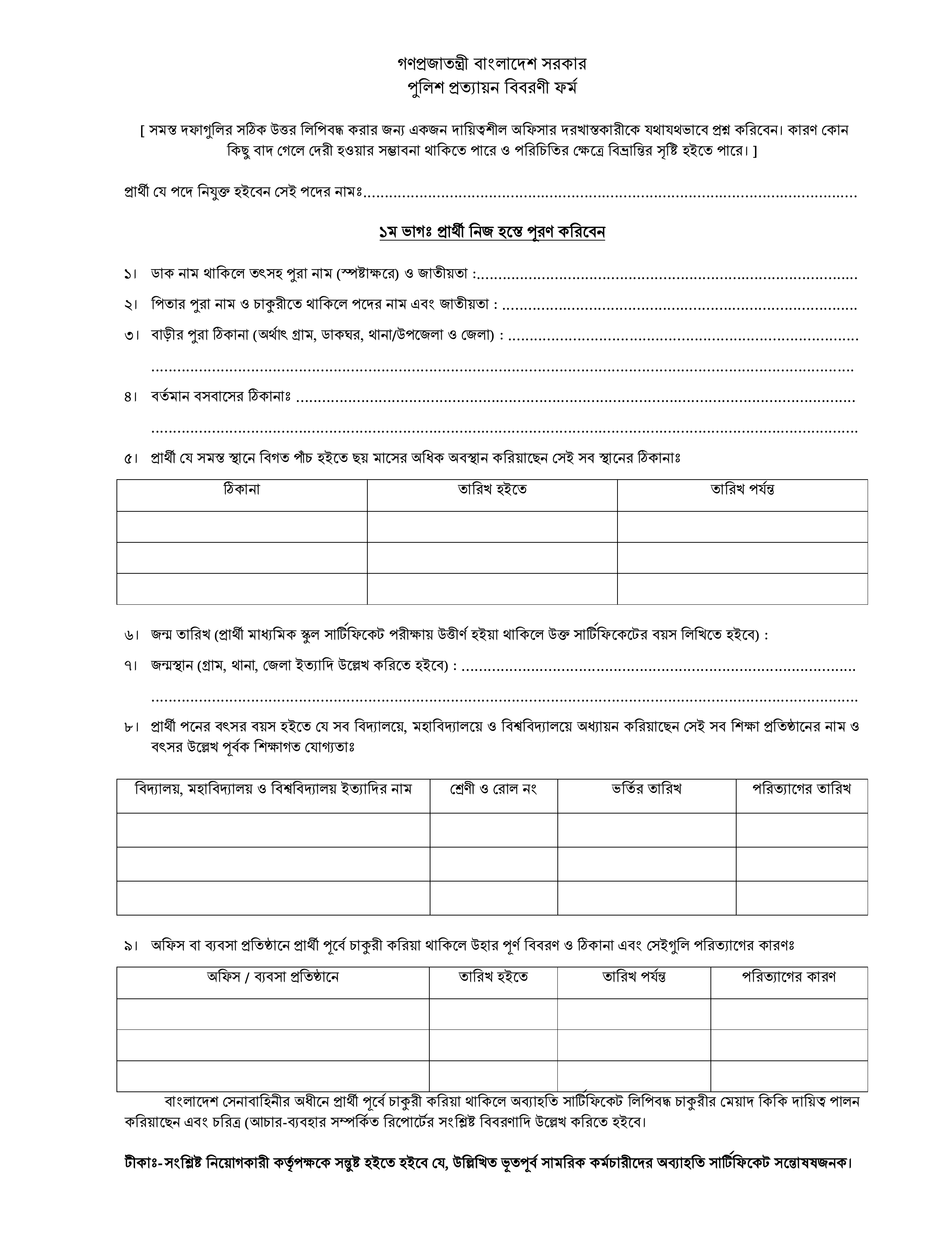 সুপারিশপ্রাপ্ত প্রার্থীদের এ মন্ত্রণালয়ের ওয়েবসাইট থেকে পুলিশ ভেরিফিকেশন ফরম ডাউনলোডপূর্বক তা ০২ (দুই) সেট পূরণ করে আগামী ১৩ নভেম্বর ২০২৫ তারিখ বিকাল ০৪:০০ ঘটিকার মধ্যে বস্ত্র ও পাট মন্ত্রণালয়ের প্রশাসন-১ শাখায় প্রদর্শনপূর্বক জমা প্রদান করতে হবে।