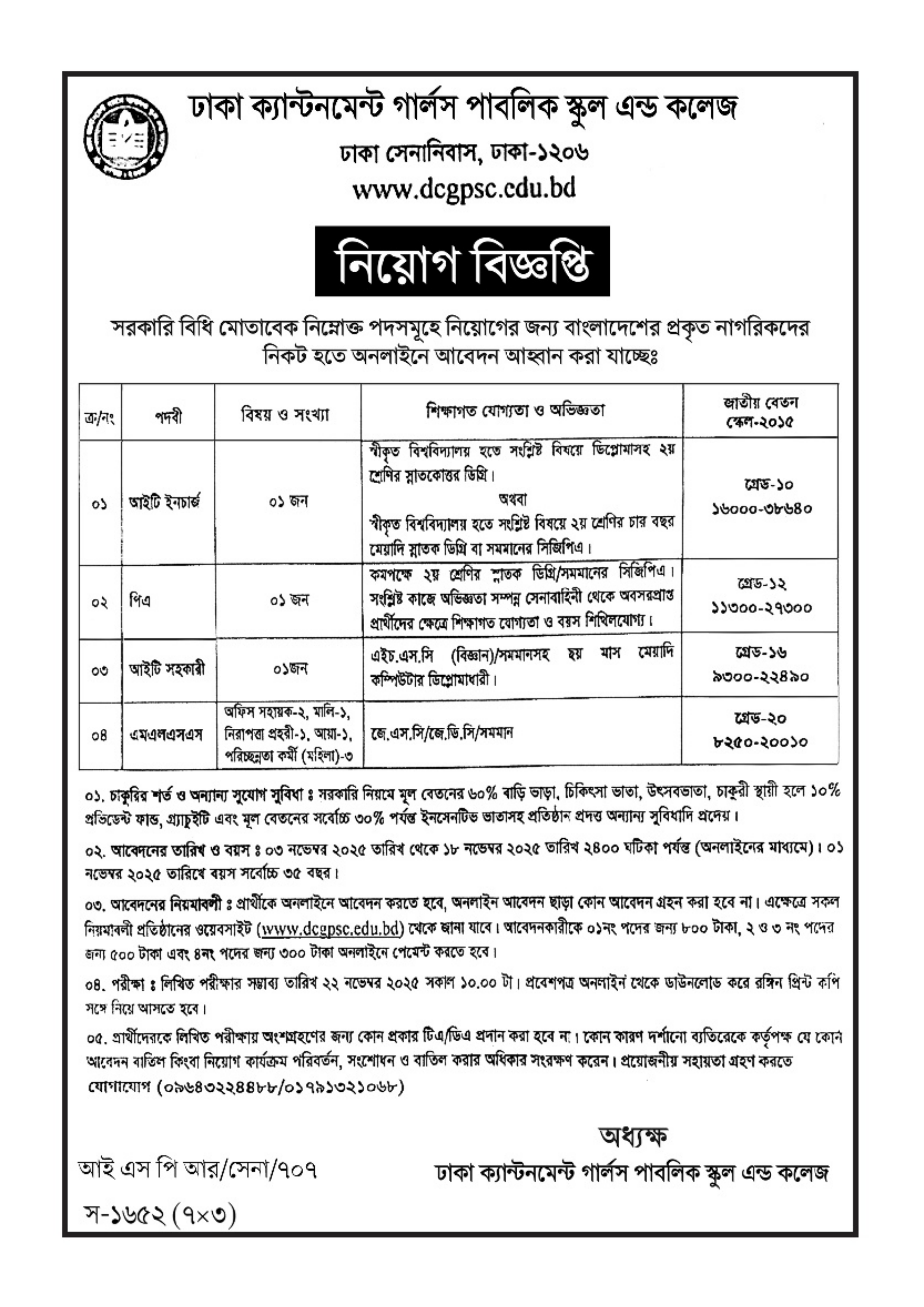 বয়সসীমা: ০১ নভেম্বর ২০২৫ তারিখে প্রার্থীর বয়স সর্বোচ্চ ৩৫ বছর হতে হবে। সেনাবাহিনী থেকে অবসরপ্রাপ্ত প্রার্থীদের ক্ষেত্রে (সহকারী শিক্ষক পদের জন্য) শিক্ষাগত যোগ্যতা ও বয়স শিথিলযোগ্য।