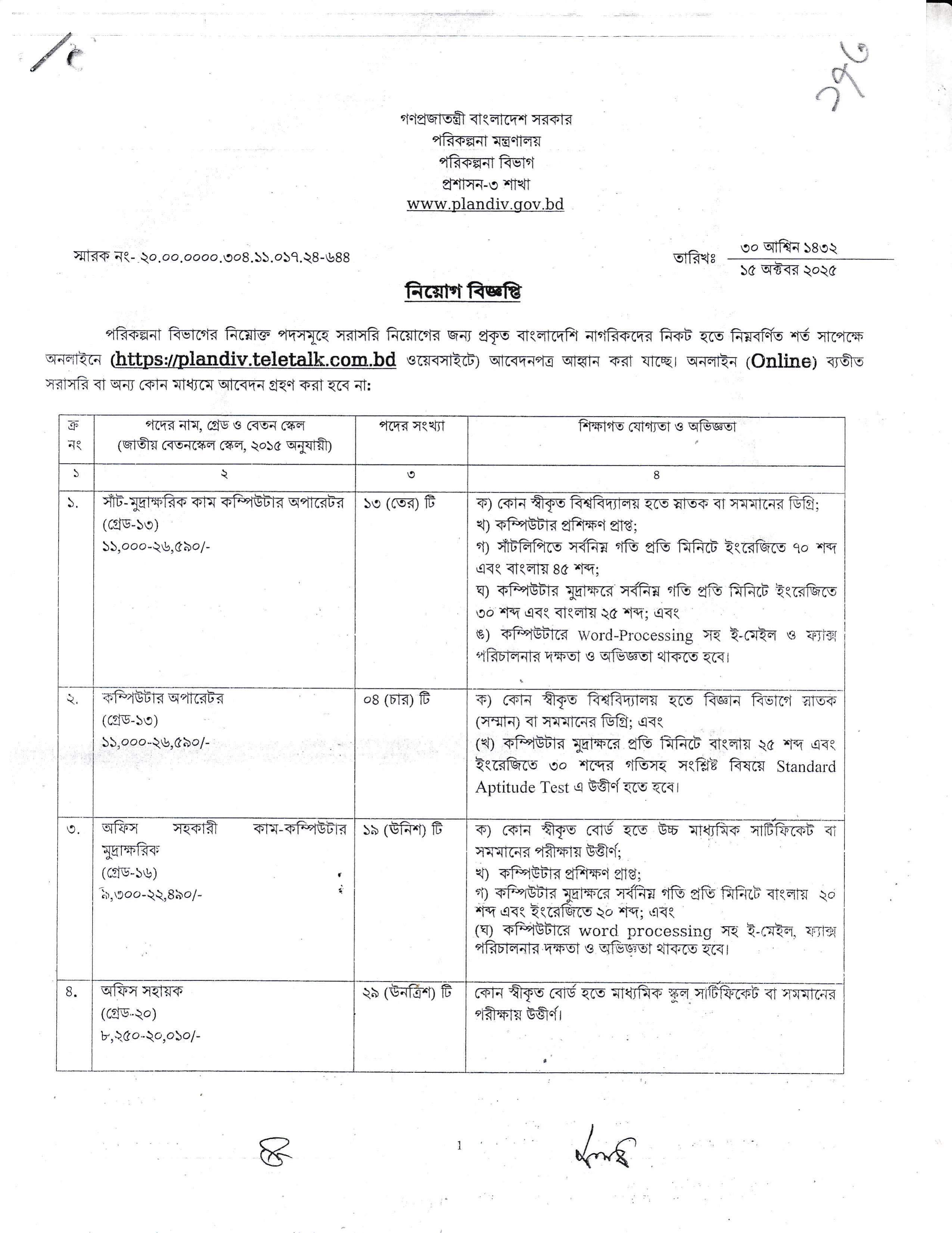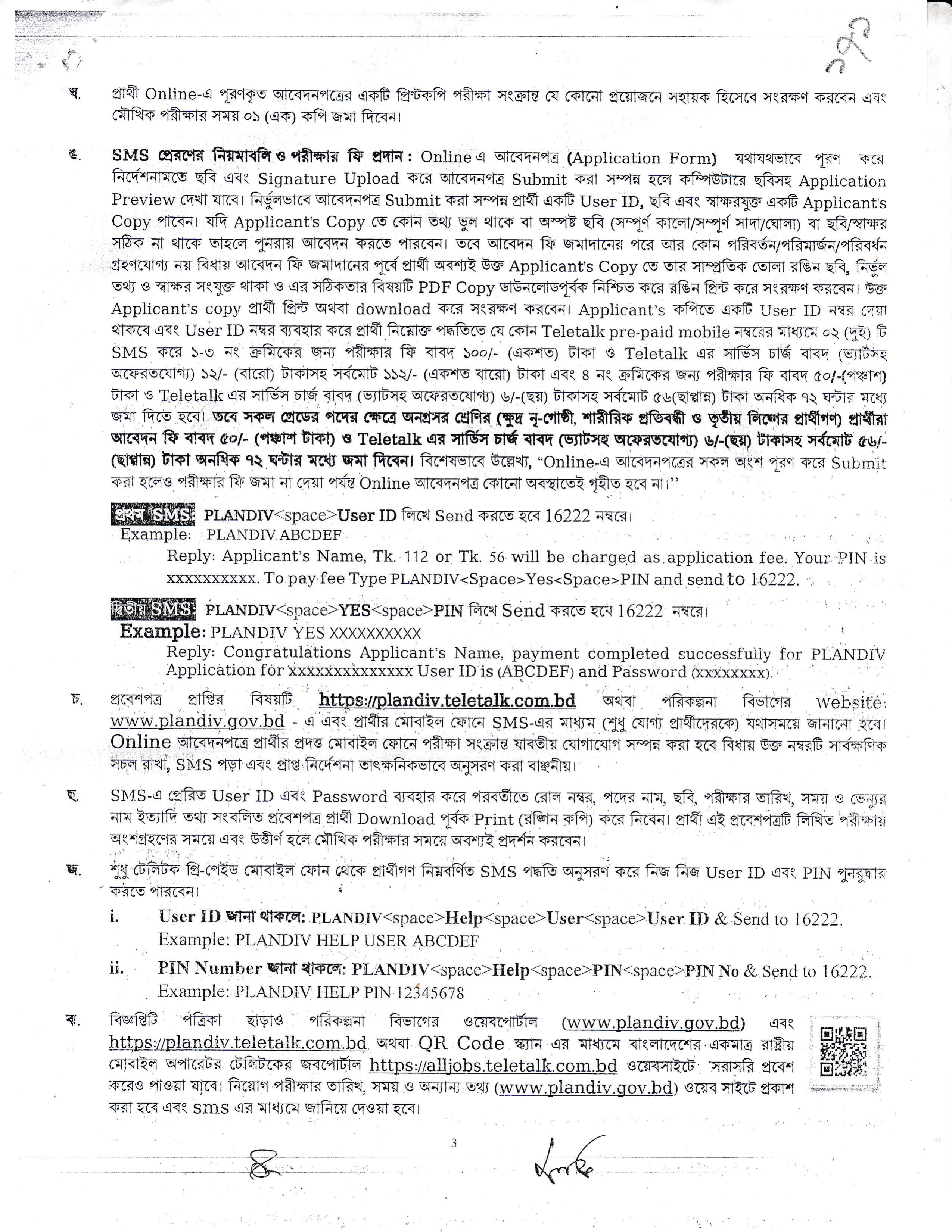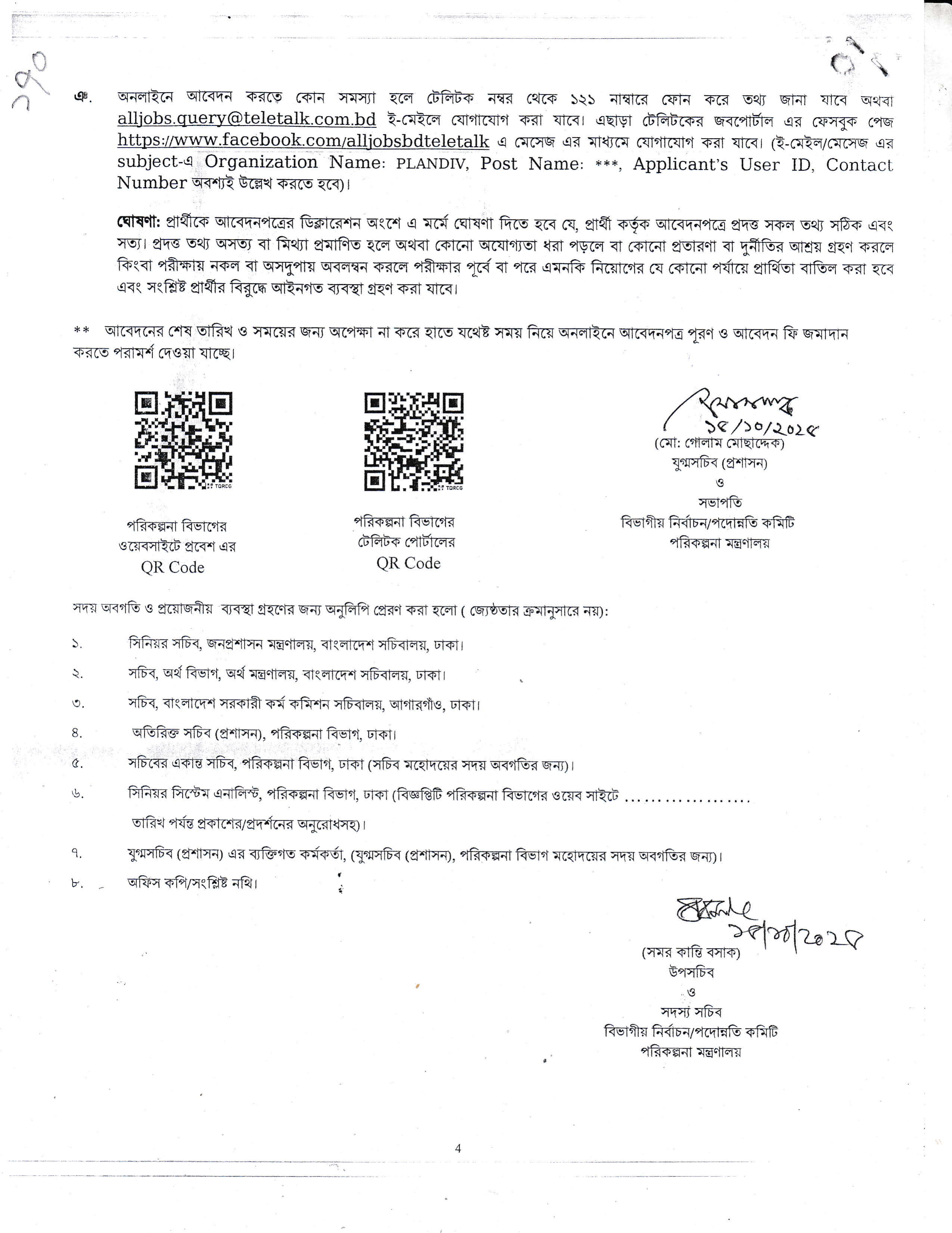 লিখিত, ব্যবহারিক (প্রযোজ্য ক্ষেত্রে) ও মৌখিক পরীক্ষার তারিখ, সময় ও স্থান পরবর্তীতে পরিকল্পনা বিভাগের ওয়েবসাইট এবং প্রার্থীর মোবাইল ফোনে SMS এর মাধ্যমে জানানো হবে।