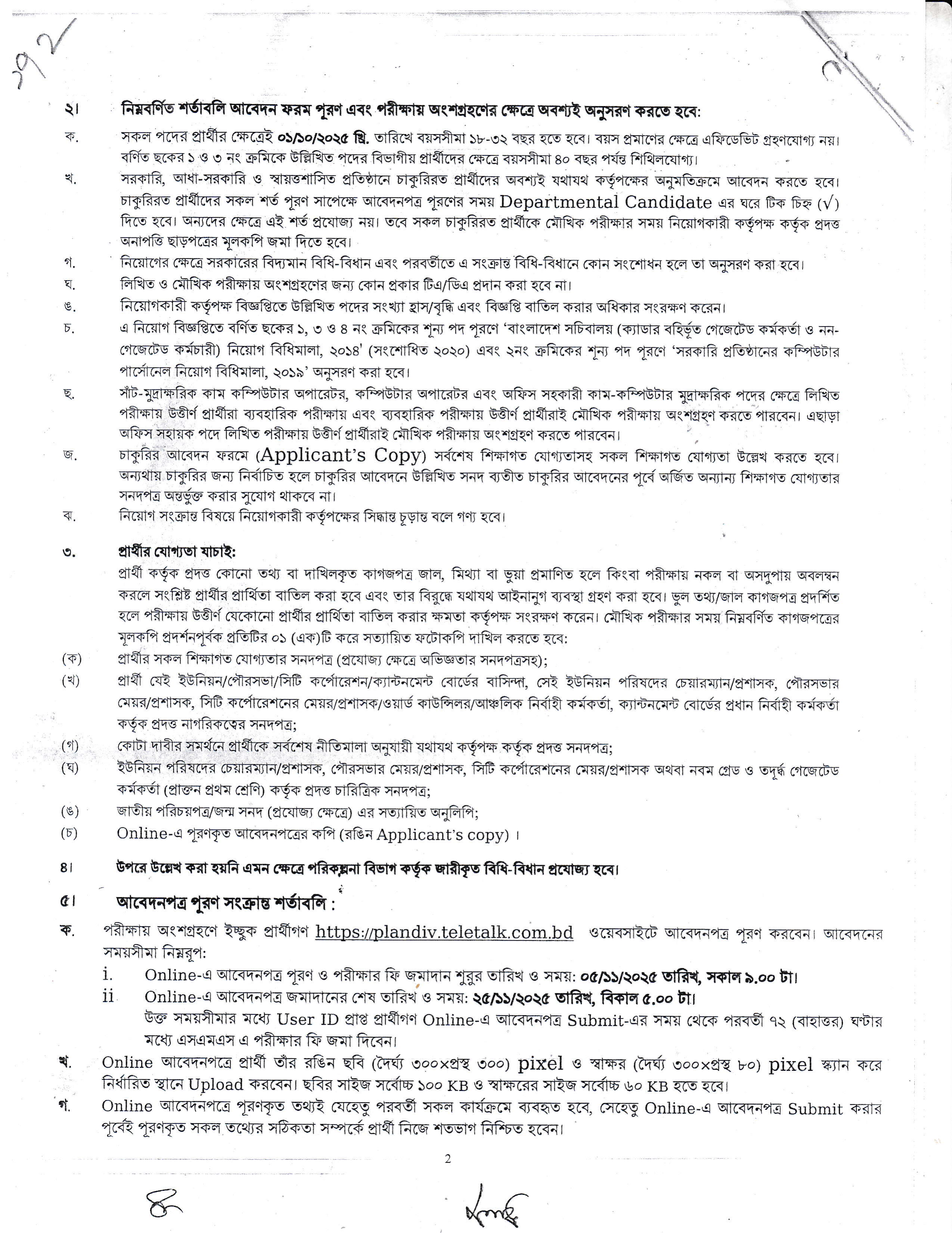 আবেদনপত্র জমাদানের শেষ তারিখ ও সময়: ২৫/১১/২০২৫ তারিখ, বিকাল ৫.০০ টা