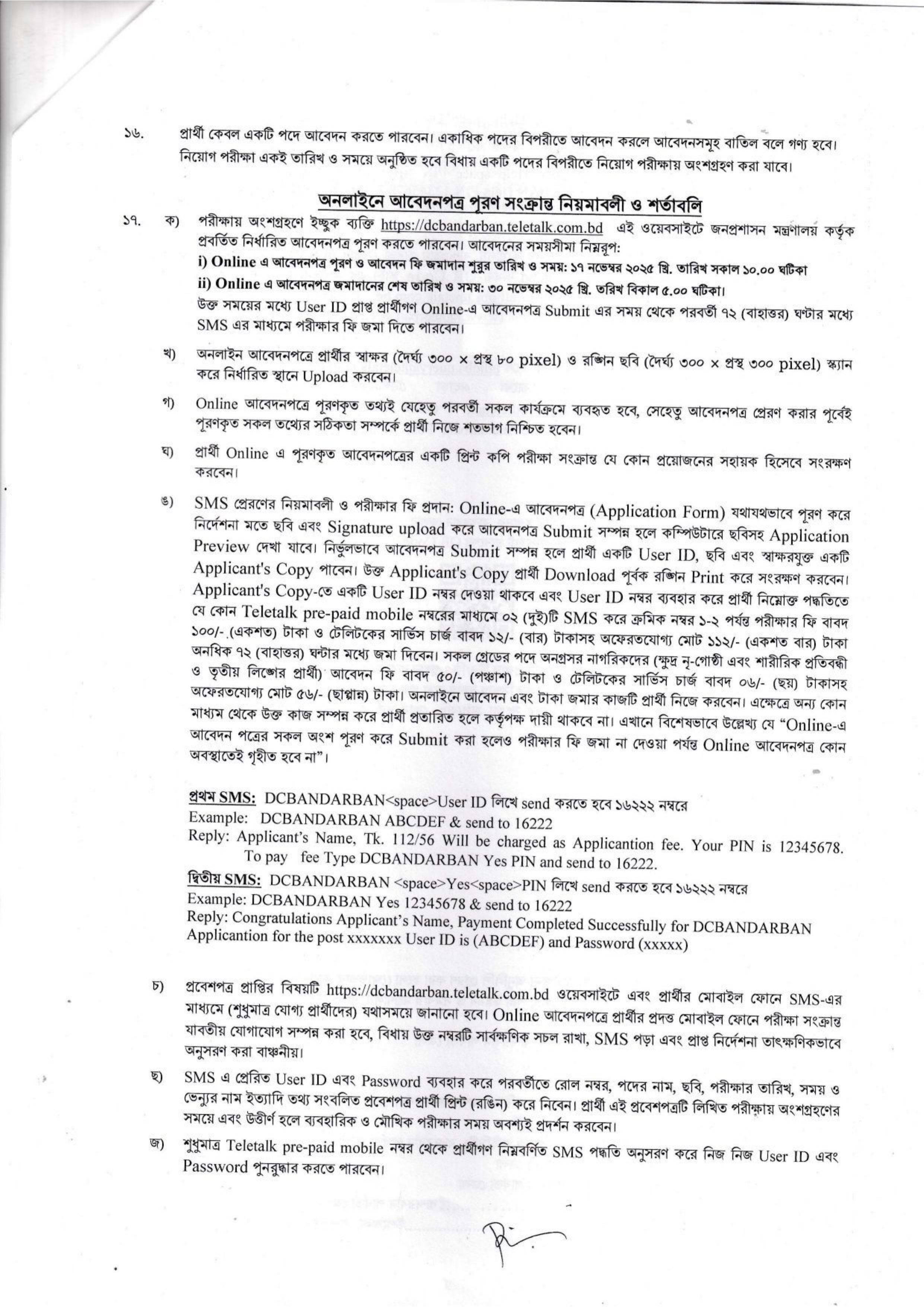 - আবেদনপত্র জমা দেওয়ার ৭২ ঘণ্টার মধ্যে টেলিটক প্রিপেইড মোবাইল ব্যবহার করে এই ফি জমা দিতে হবে।