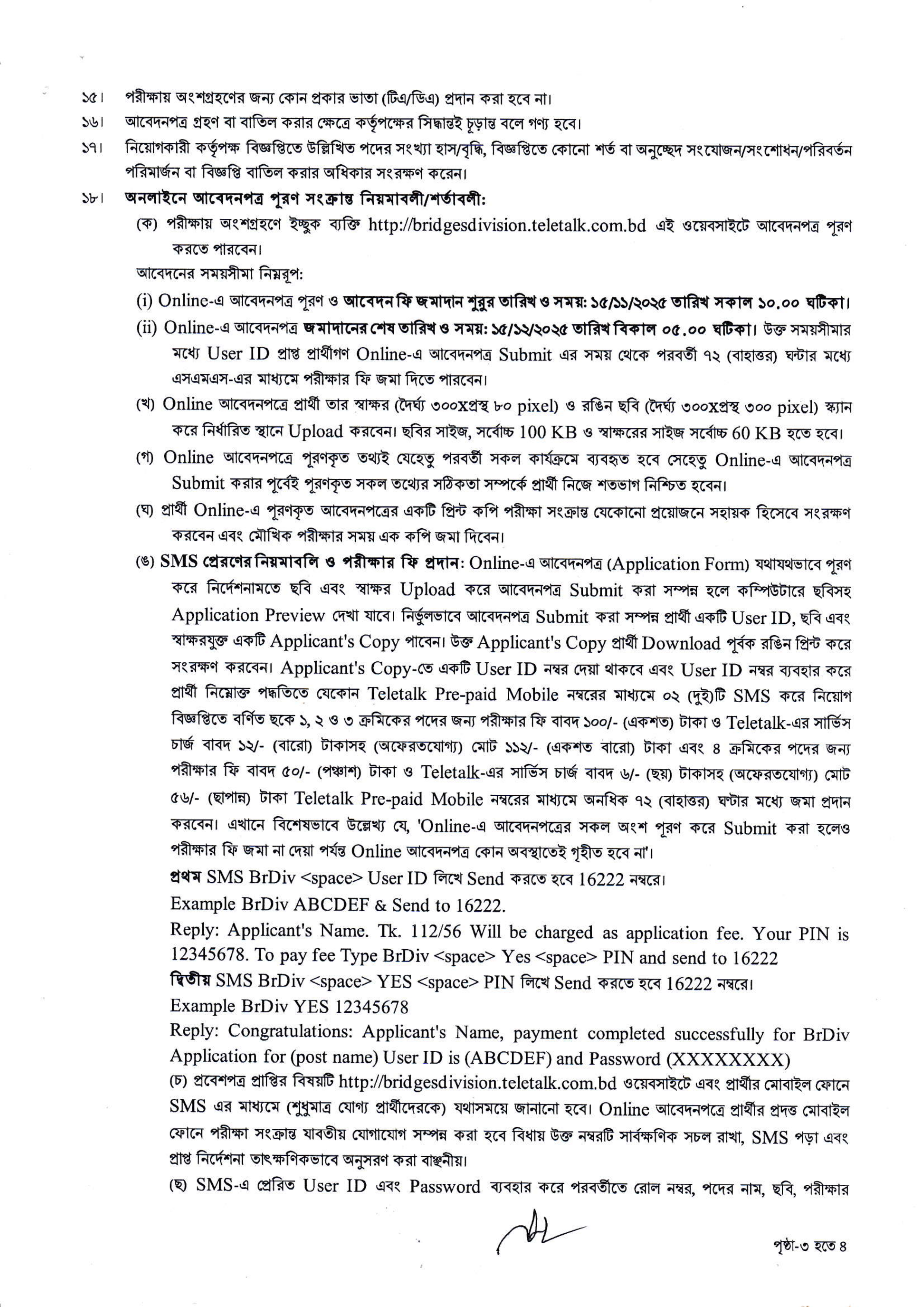 আগ্রহী ও যোগ্য প্রার্থীরা অনলাইনে (http://bridgesdivision.teletalk.com.bd/ ওয়েবসাইটে) আবেদন করতে পারবেন। অনলাইন ব্যতীত অন্য কোনো মাধ্যমে (যেমন: সরাসরি বা ডাকযোগে) আবেদন গ্রহণ করা হবে না।