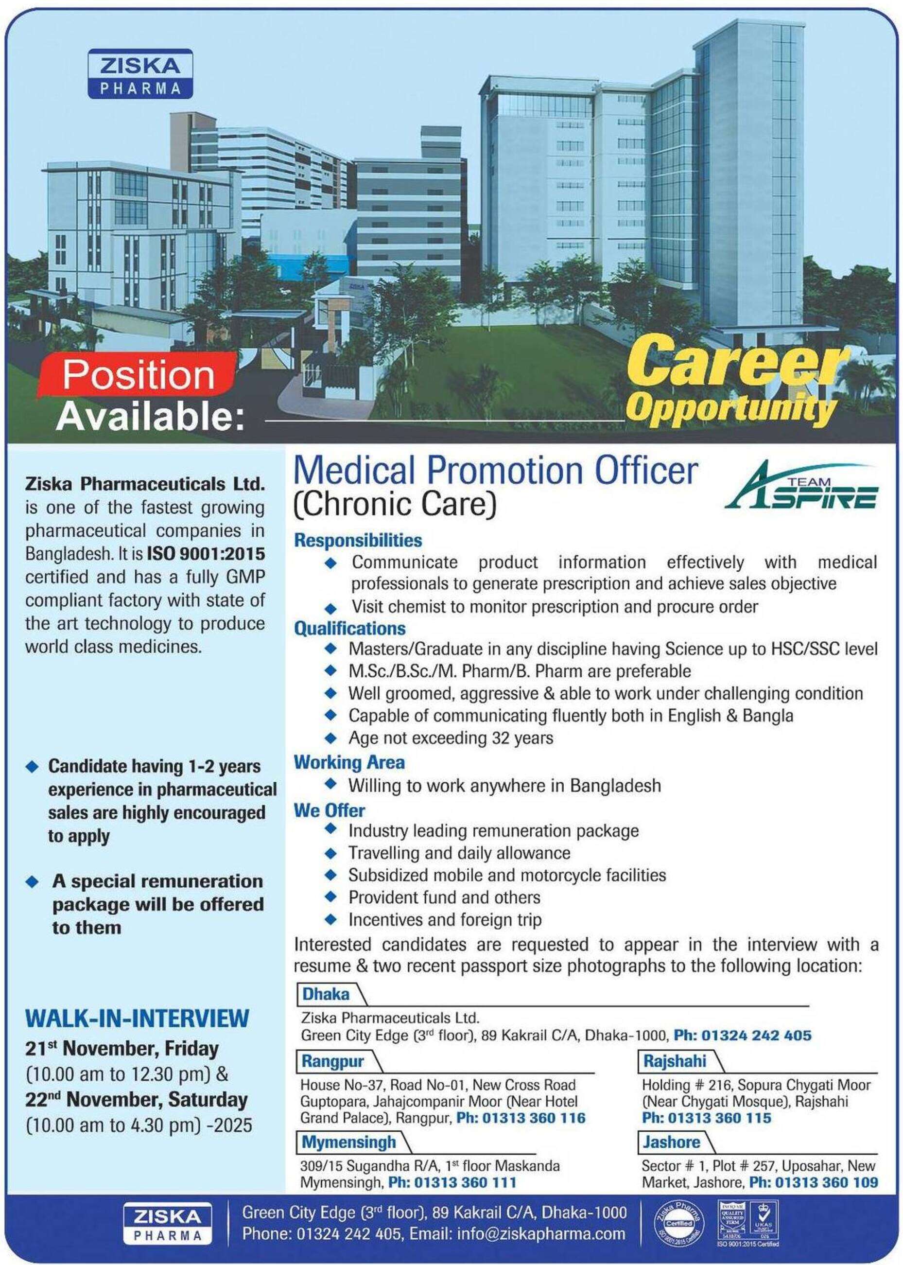 সরাসরি সাক্ষাৎকারে ZISKA PHARMA-তে চাকরির সুবর্ণ সুযোগ