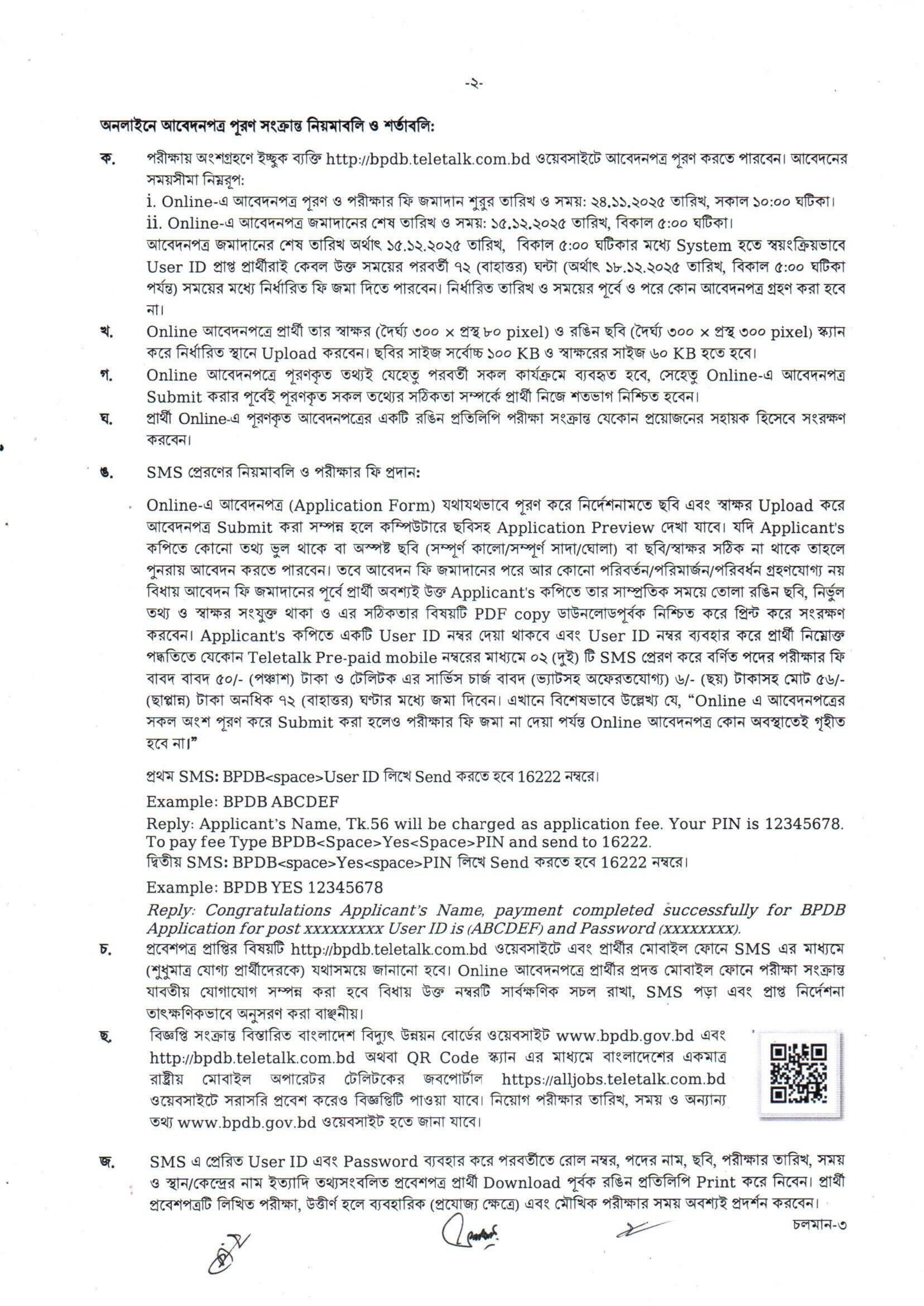 - নিয়োগ পরীক্ষার তারিখ, সময় ও অন্যান্য তথ্য পরবর্তীতে বাংলাদেশ বিদ্যুৎ উন্নয়ন বোর্ডের ওয়েবসাইট www.bpdb.gov.bd এবং টেলিটকের জবপোর্টাল alljobs.teletalk.com.bd ওয়েবসাইটে জানানো হবে।