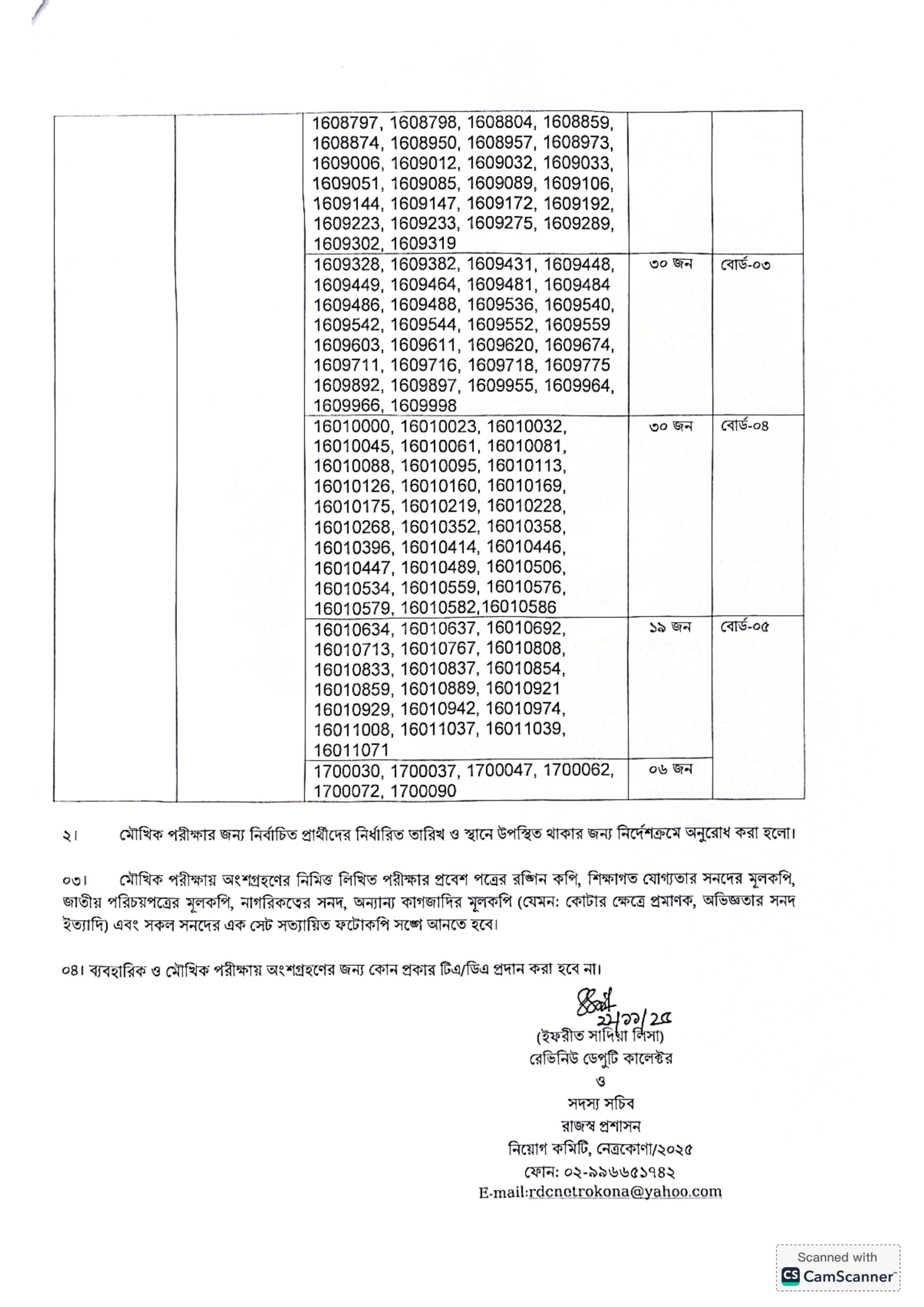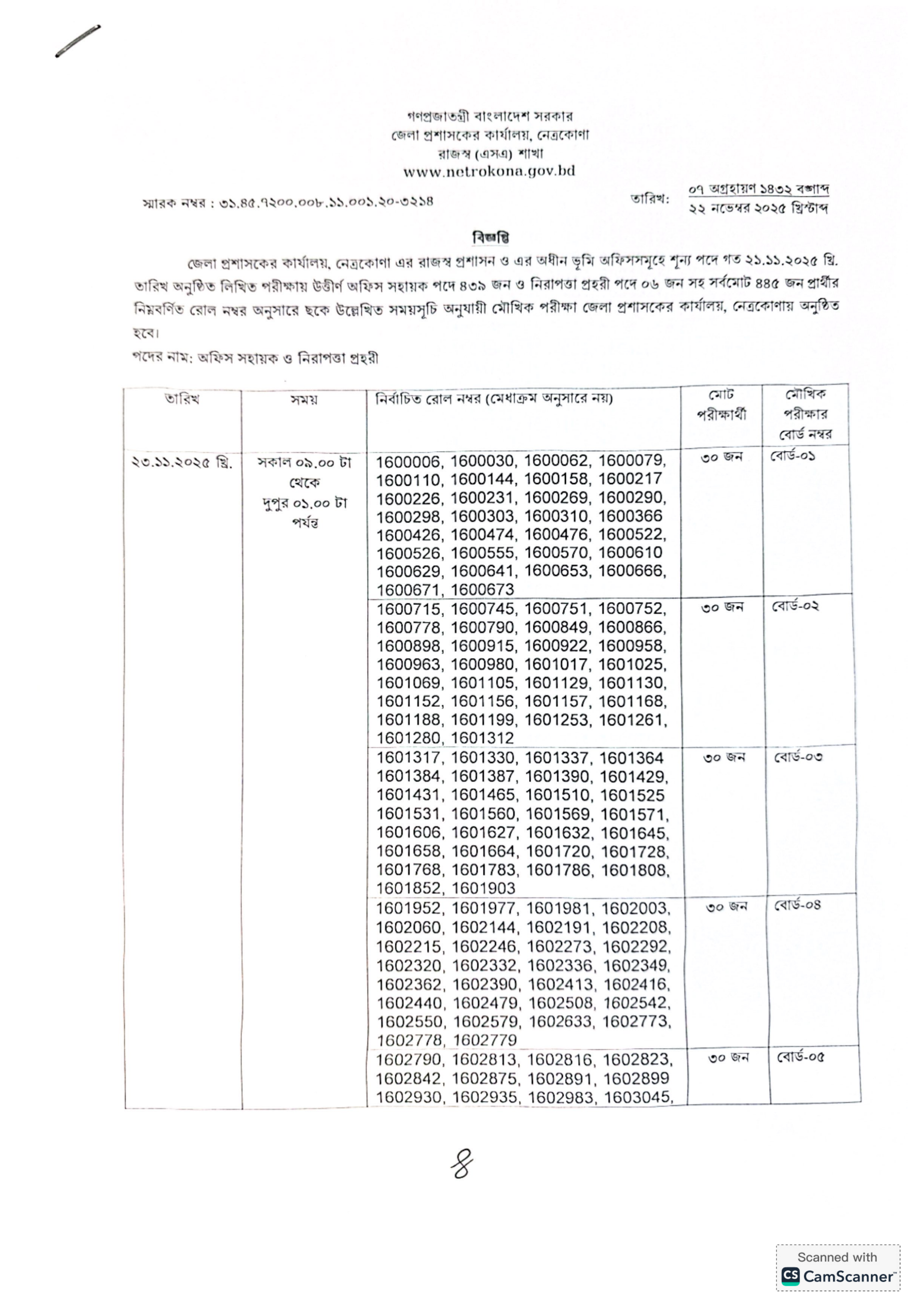 মৌখিক পরীক্ষা ২৩ নভেম্বর ২০২৫ খ্রিষ্টাব্দ ও ২৪ নভেম্বর ২০২৫ খ্রিষ্টাব্দ তারিখে জেলা প্রশাসকের কার্যালয়, নেত্রকোণা-তে অনুষ্ঠিত হবে।