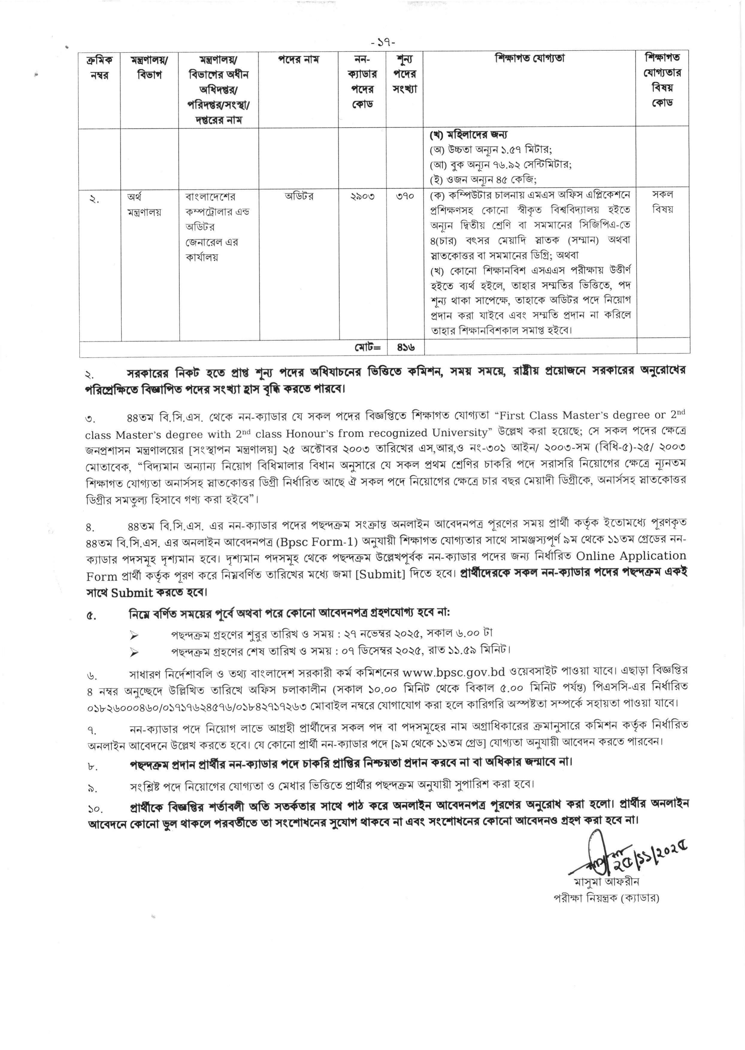 আবেদনের শুরুর তারিখ: ২৭ নভেম্বর ২০২৫, সকাল ৬.০০ টা