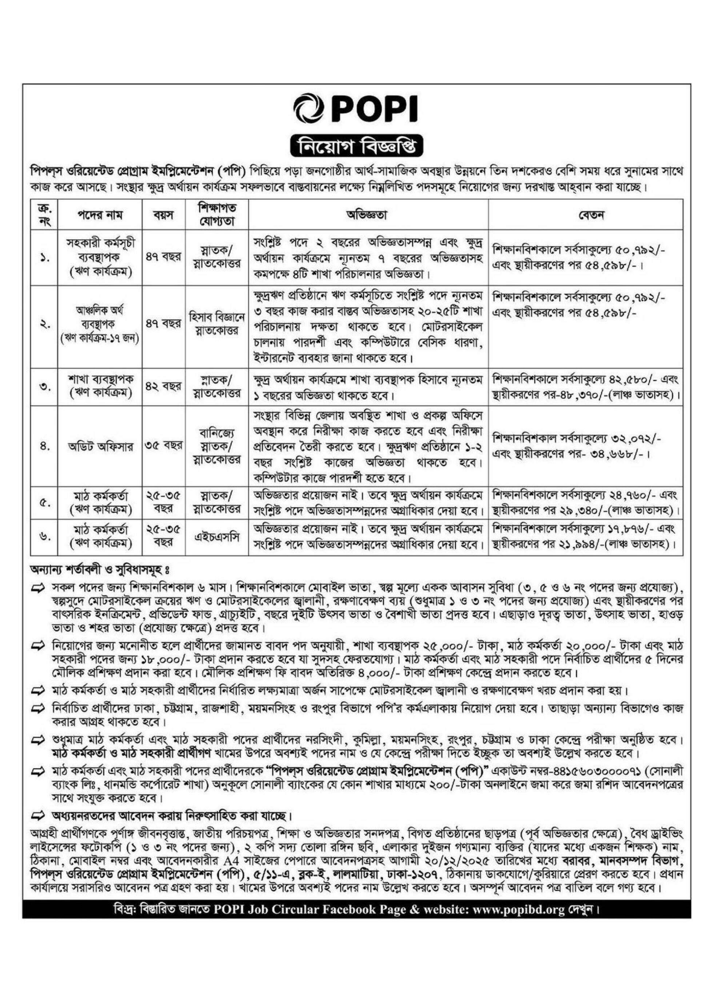 - আবেদনপত্র সরাসরি মানবসম্পদ বিভাগ, পিপল্স ওরিয়েন্টেড প্রোগ্রাম ইমপ্লিমেন্টেশন (পপি), ৫/১১-এ, ব্লক-ই, লালমাটিয়া, ঢাকা-১২০৭ ঠিকানায় পাঠাতে হবে।