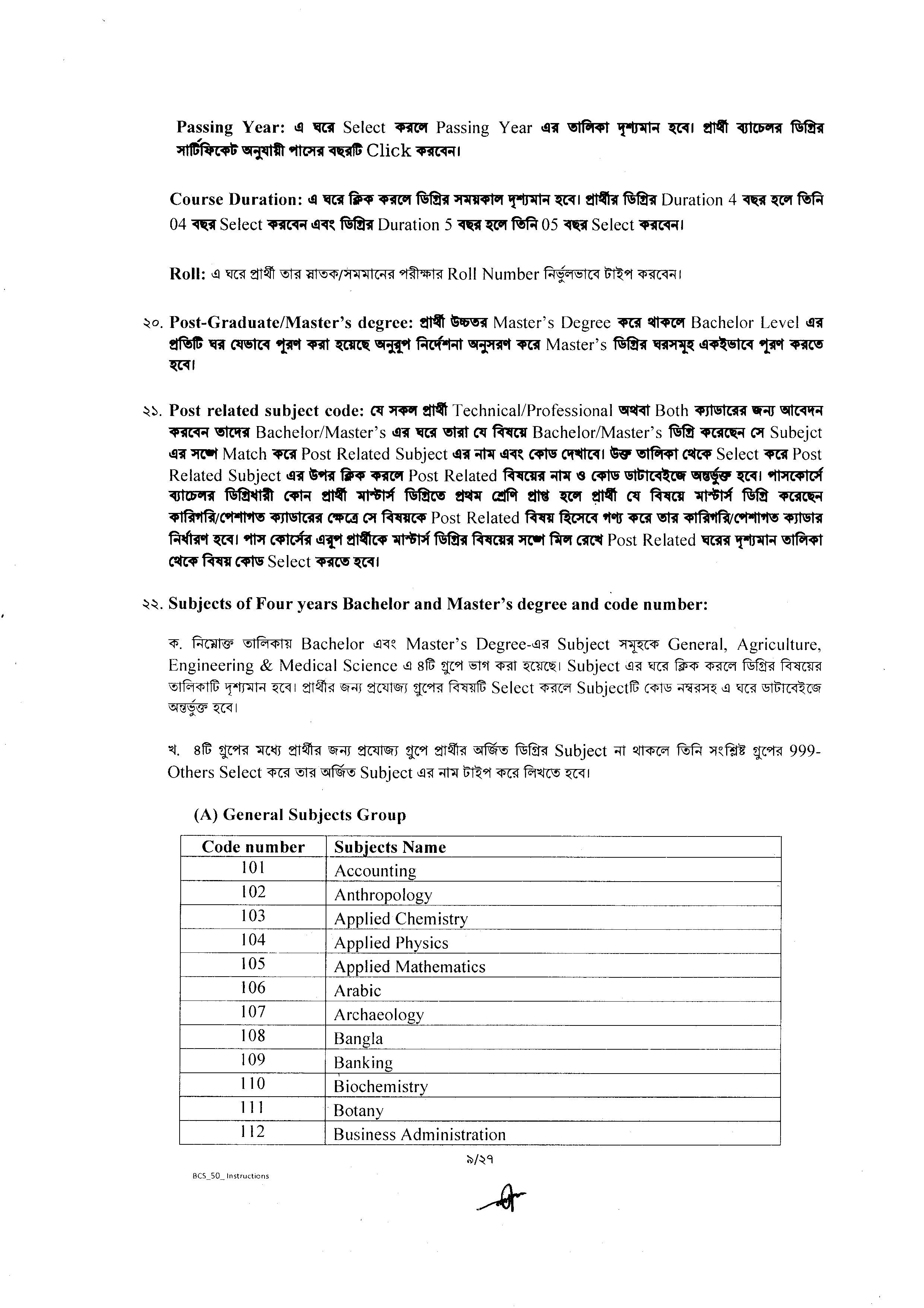 আবেদনপত্রে ব্যক্তিগত তথ্য, শিক্ষাগত যোগ্যতা এবং ক্যাডার/নন-ক্যাডার পছন্দক্রম পূরণ করতে হবে। আবেদনকারীর ব্যক্তিগত তথ্য (নাম, পিতার নাম, মাতার নাম, লিঙ্গ ইত্যাদি) সংশ্লিষ্ট শিক্ষা বোর্ড/সমপর্যায়ের প্রতিষ্ঠানের ডাটাবেইজে সংরক্ষিত এস.এস.সি. বা সমমান পর্যায়ের তথ্যের সাথে স্বয়ংক্রিয়ভাবে যাচাই করা হবে এবং এই তথ্য পরিবর্তন করার সুযোগ থাকবে না। আবেদনকারীরা তাদের পছন্দ অনুযায়ী পরীক্ষা কেন্দ্র নির্বাচন করতে পারবেন এবং প্রিলিমিনারি টেস্টের জন্য বাংলা বা ইংরেজি ভার্সন বেছে নিতে পারবেন। একবার আবেদনপত্র জমা দেওয়া হলে ক্যাডার অপশন আর পরিবর্তন করা যাবে না।