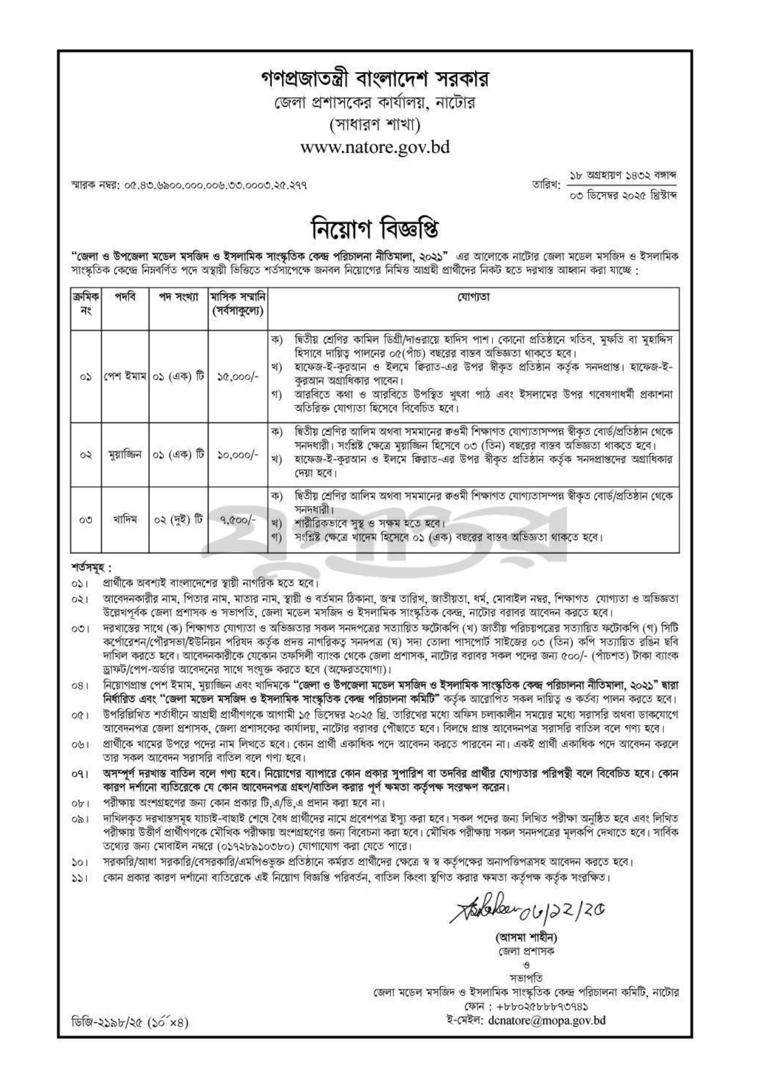 নাটোর জেলা মডেল মসজিদ ও ইসলামিক সাংস্কৃতিক কেন্দ্র এর জন্য ৪টি পদে জনবল নিয়োগের বিজ্ঞপ্তি প্রকাশিত হয়েছে। আগ্রহী প্রার্থীরা আবেদন করতে পারবেন।