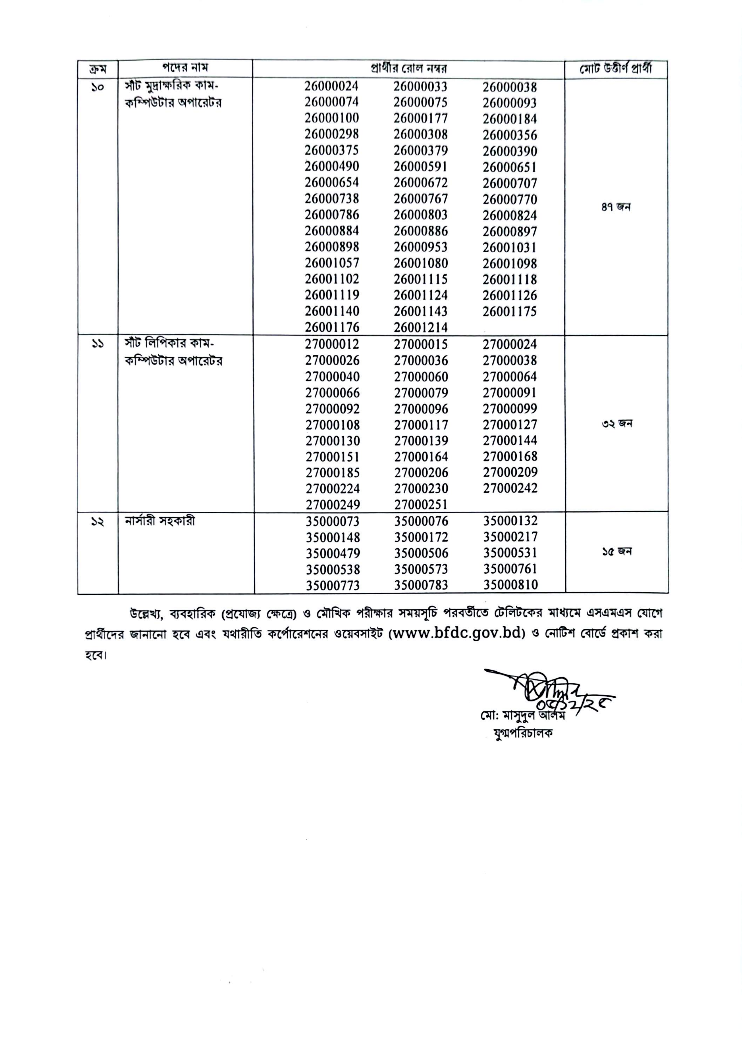 লিখিত পরীক্ষায় উত্তীর্ণ পদের মধ্যে উল্লেখযোগ্য হলো ব্যবস্থাপক (২০ জন), ৩য় প্রকৌশলী (০৫ জন) এবং সহকারী মার্কেটিং অফিসার (০৫ জন) সহ অন্যান্য পদের প্রার্থীরা।