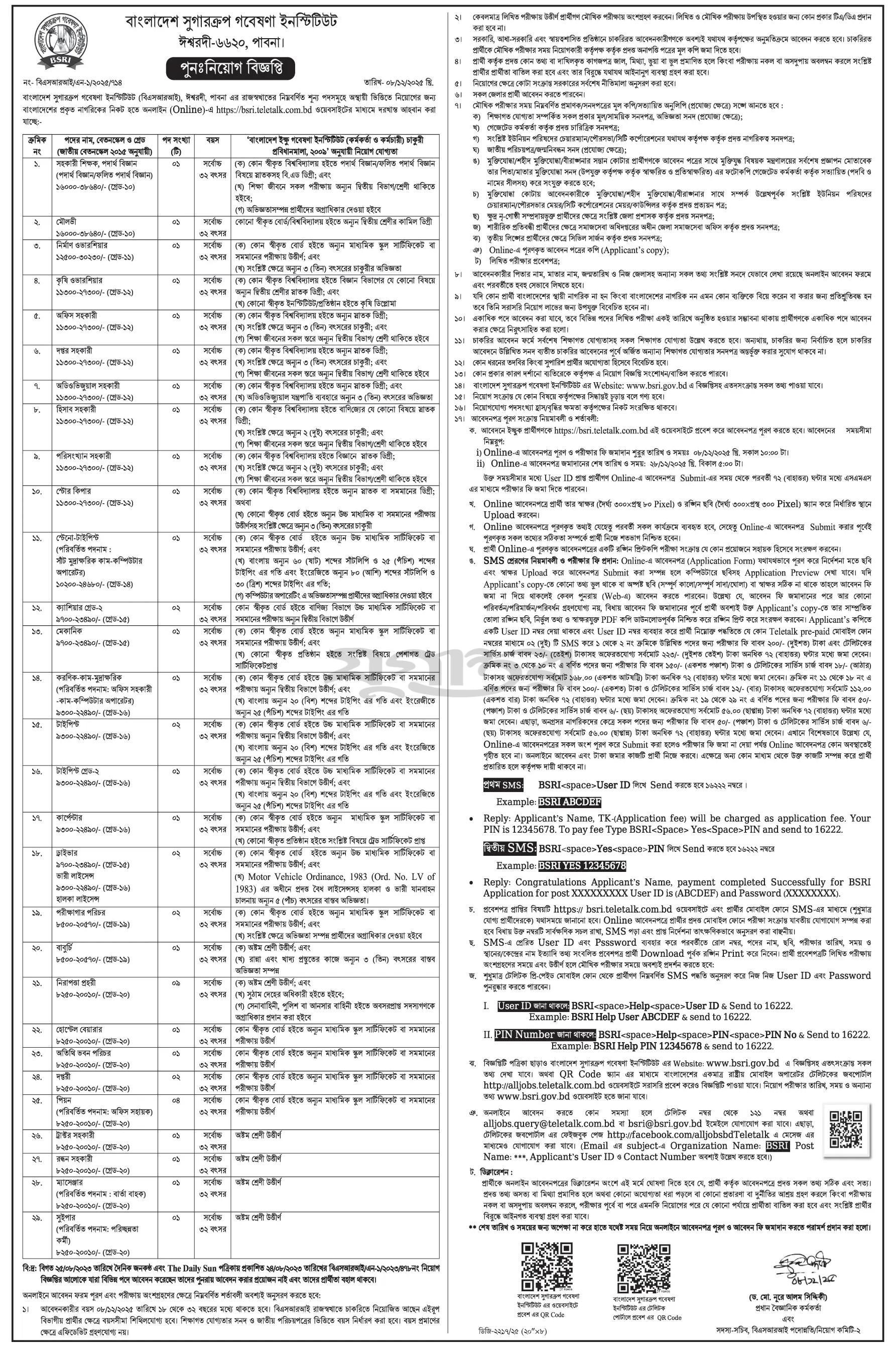আগ্রহী প্রার্থীরা (http://bsri.teletalk.com.bd) ওয়েবসাইট থেকে আবেদনপত্র পূরণ করে আগামী ২৮-১২-২০২৫ তারিখ পর্যন্ত জমা দিতে পারবেন ।