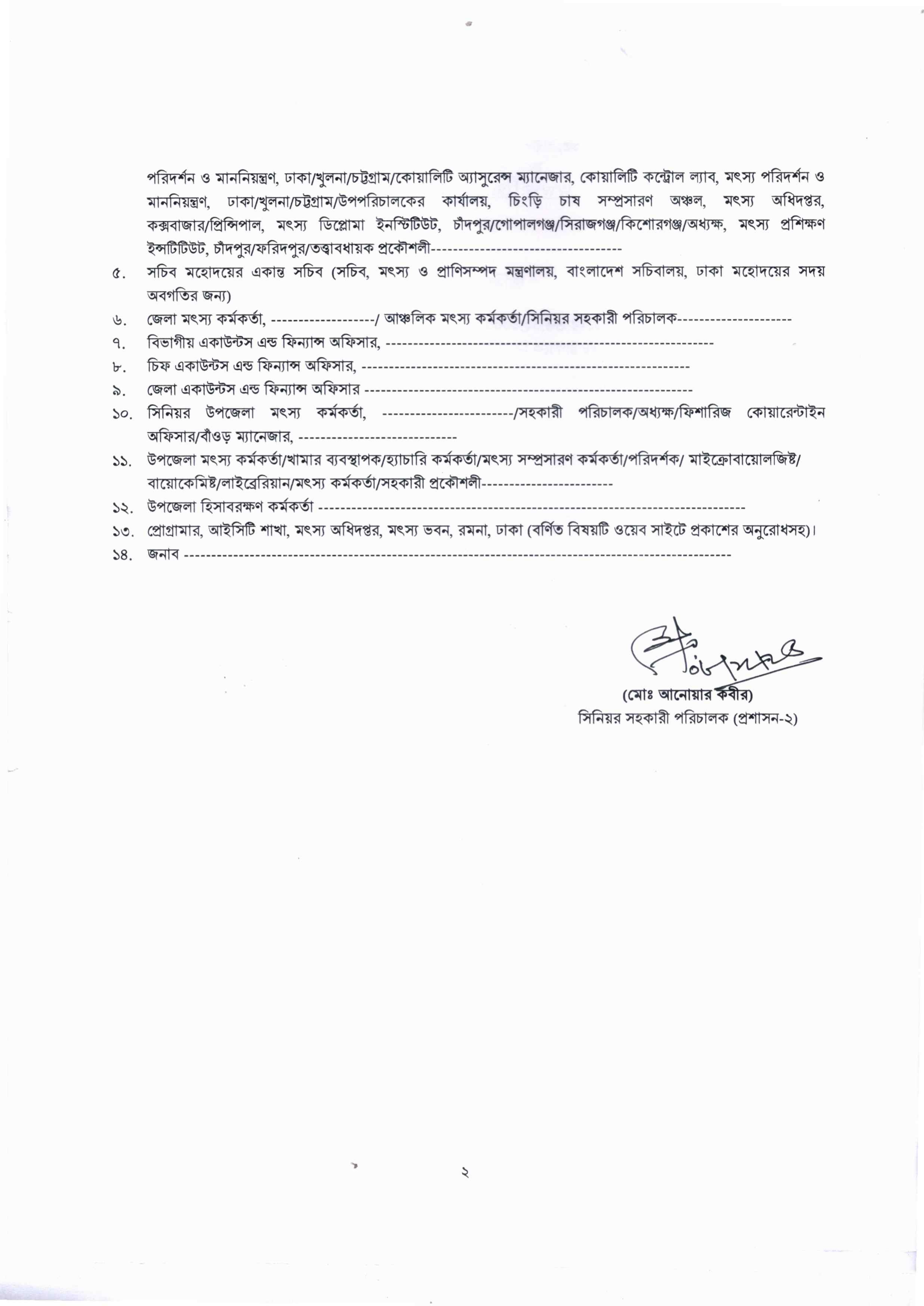 মৎস্য অধিদপ্তর কর্তৃক "নক্সাকার" পদে নিয়োগপ্রাপ্ত কর্মচারীদের পদায়ন আদেশ জারি করা হয়েছে।