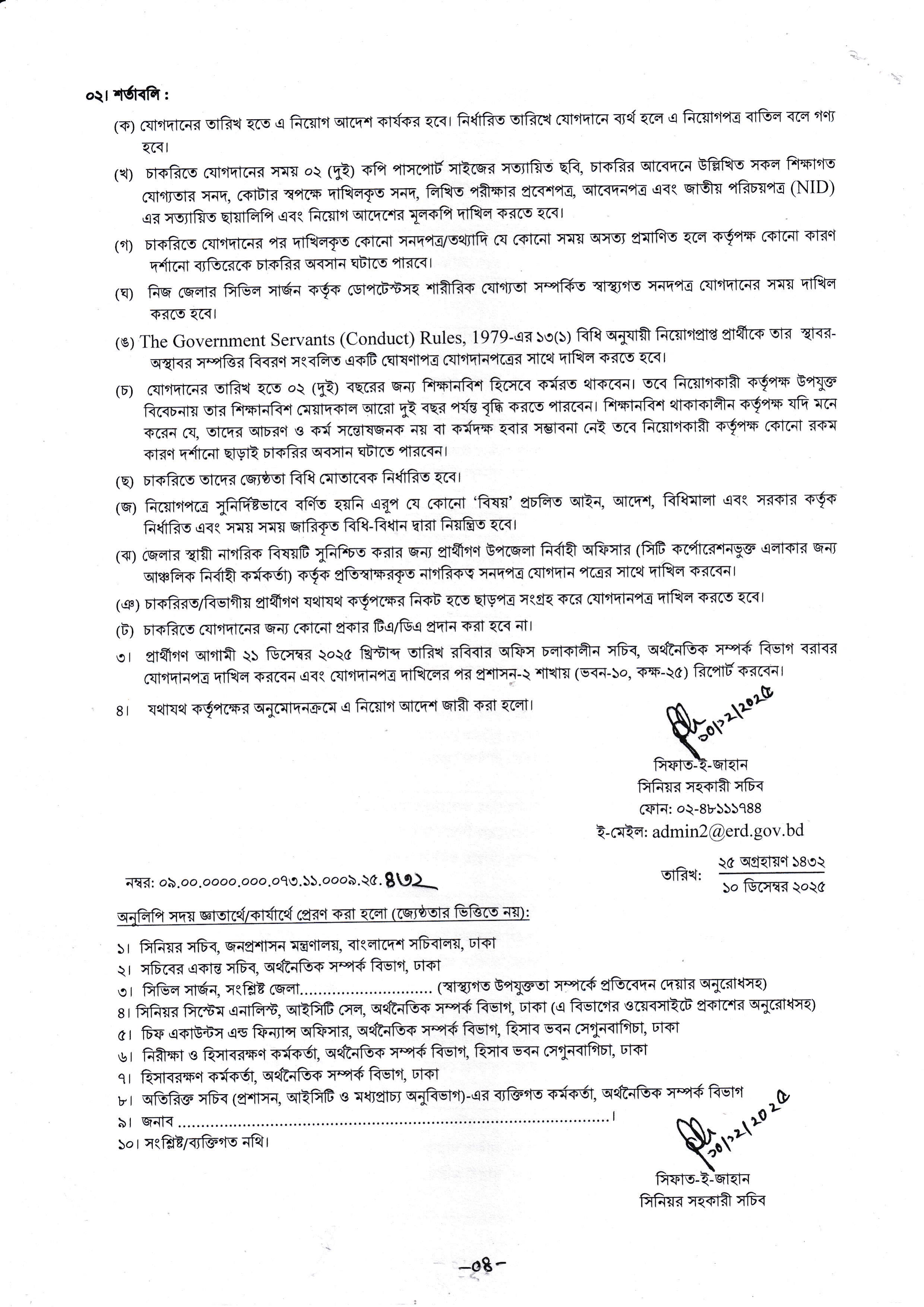 নিয়োগপ্রাপ্ত প্রার্থীদের ২১ ডিসেম্বর ২০২৫ খ্রিস্টাব্দ তারিখ রবিবার অফিস চলাকালীন সচিব, অর্থনৈতিক সম্পর্ক বিভাগ বরাবর যোগদানপত্র দাখিল করতে হবে এবং যোগদানপত্র দাখিলের পর প্রশাসন-২ শাখায় (ভবন-১০, কক্ষ-২৫) রিপোর্ট করতে হবে।