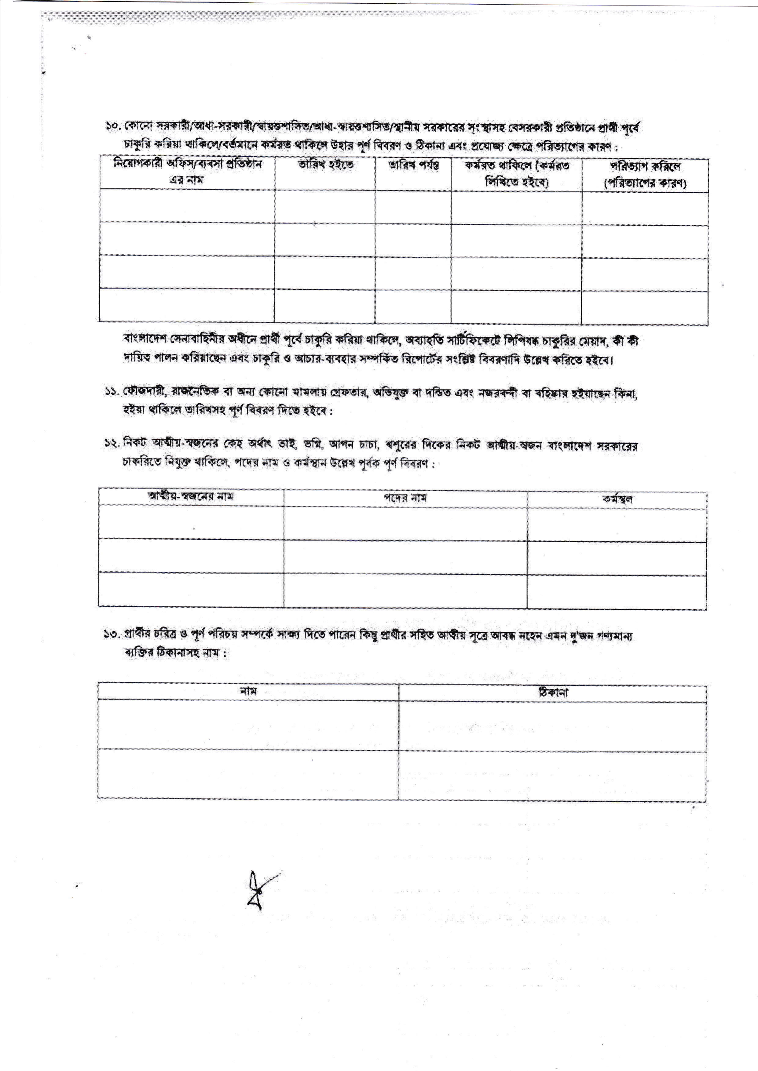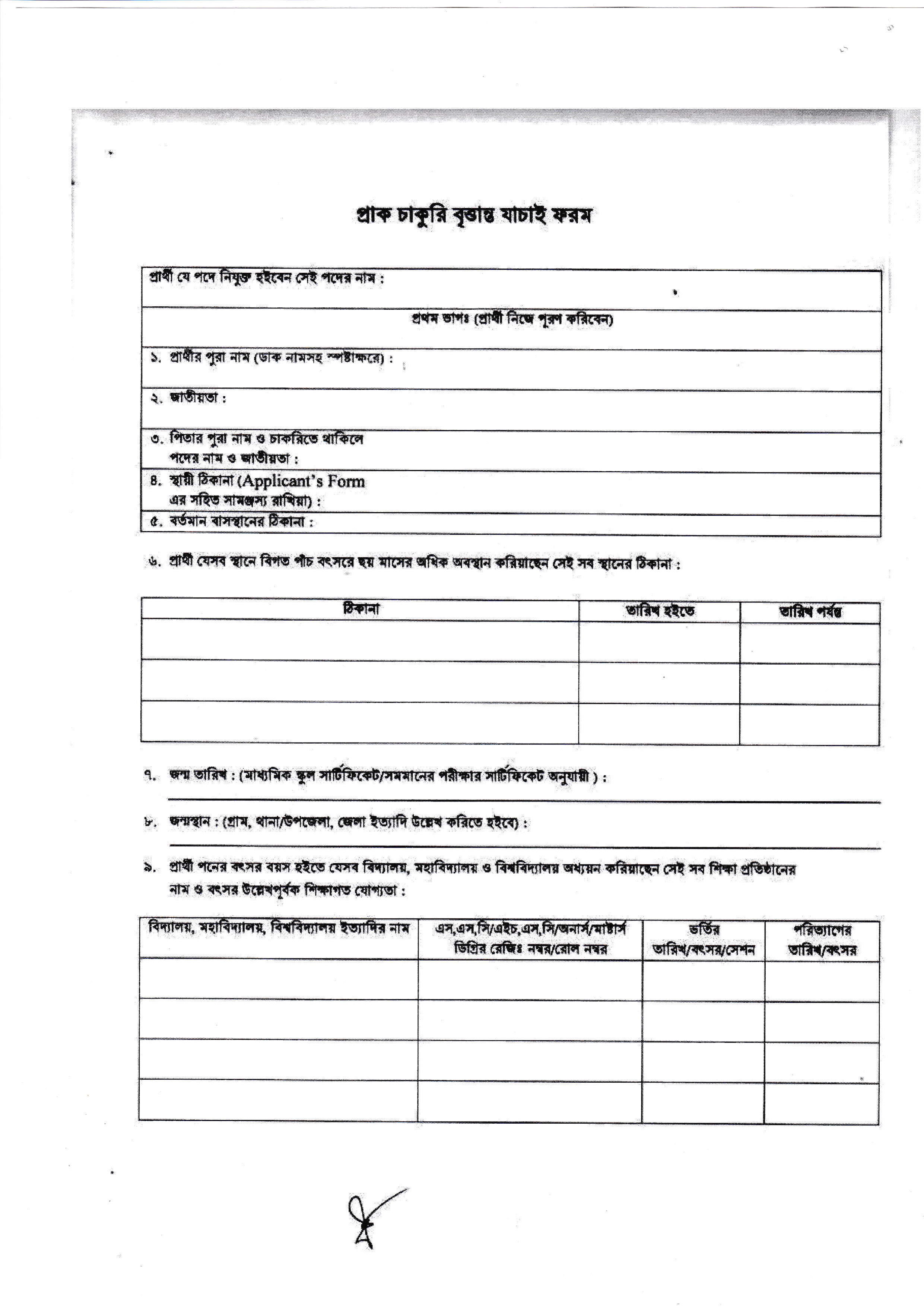 - সরকারি, আধা-সরকারি বা স্বায়ত্তশাসিত প্রতিষ্ঠানে পূর্ববর্তী চাকরির বিবরণ (যদি থাকে)।